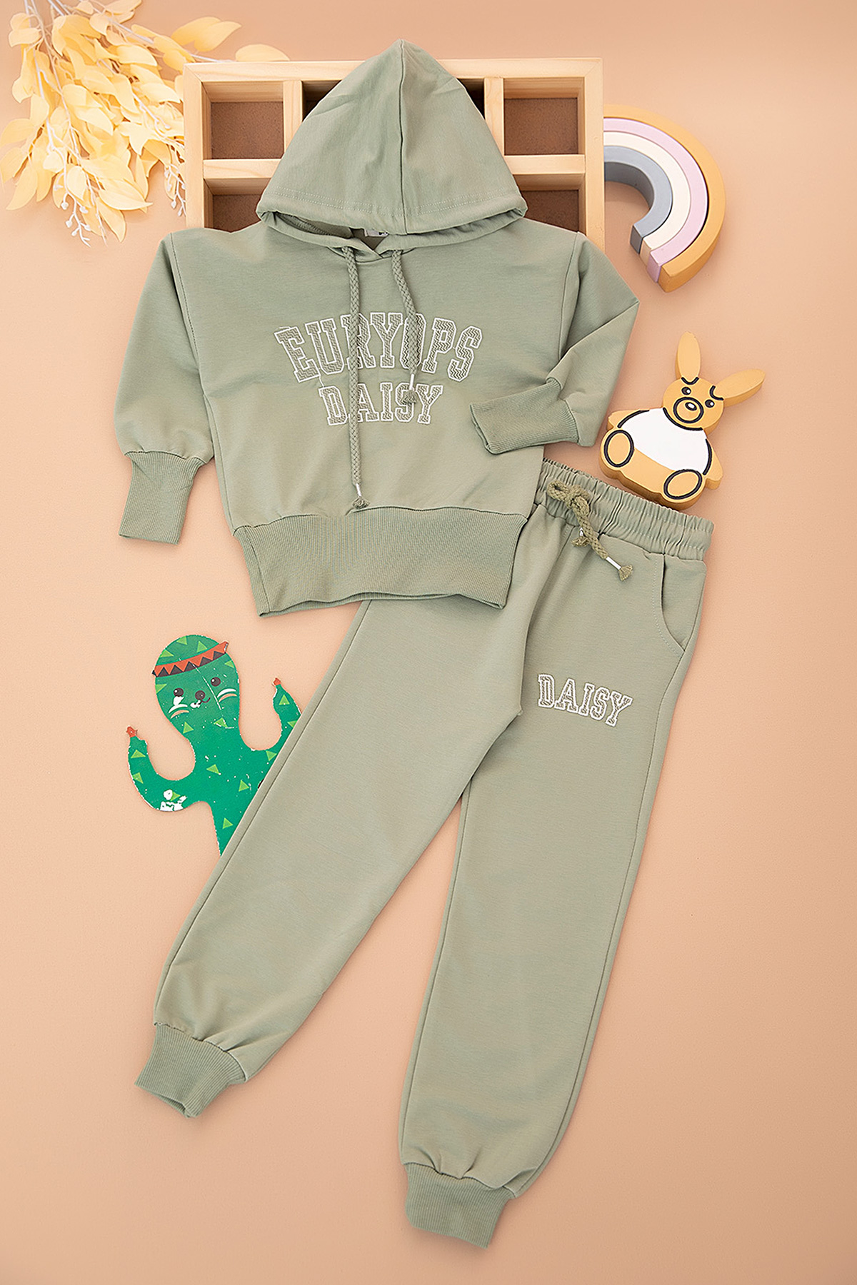 Kız Çocuk Euryops Daisy Baskılı Kapşonlu Takım - 6934 (5-8 Yaş)