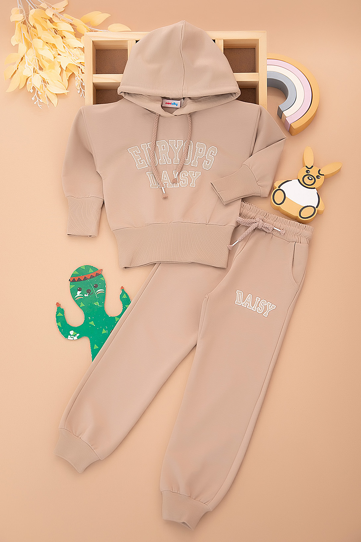 Kız Çocuk Euryops Daisy Baskılı Kapşonlu Takım - 7934 (9-12 Yaş)