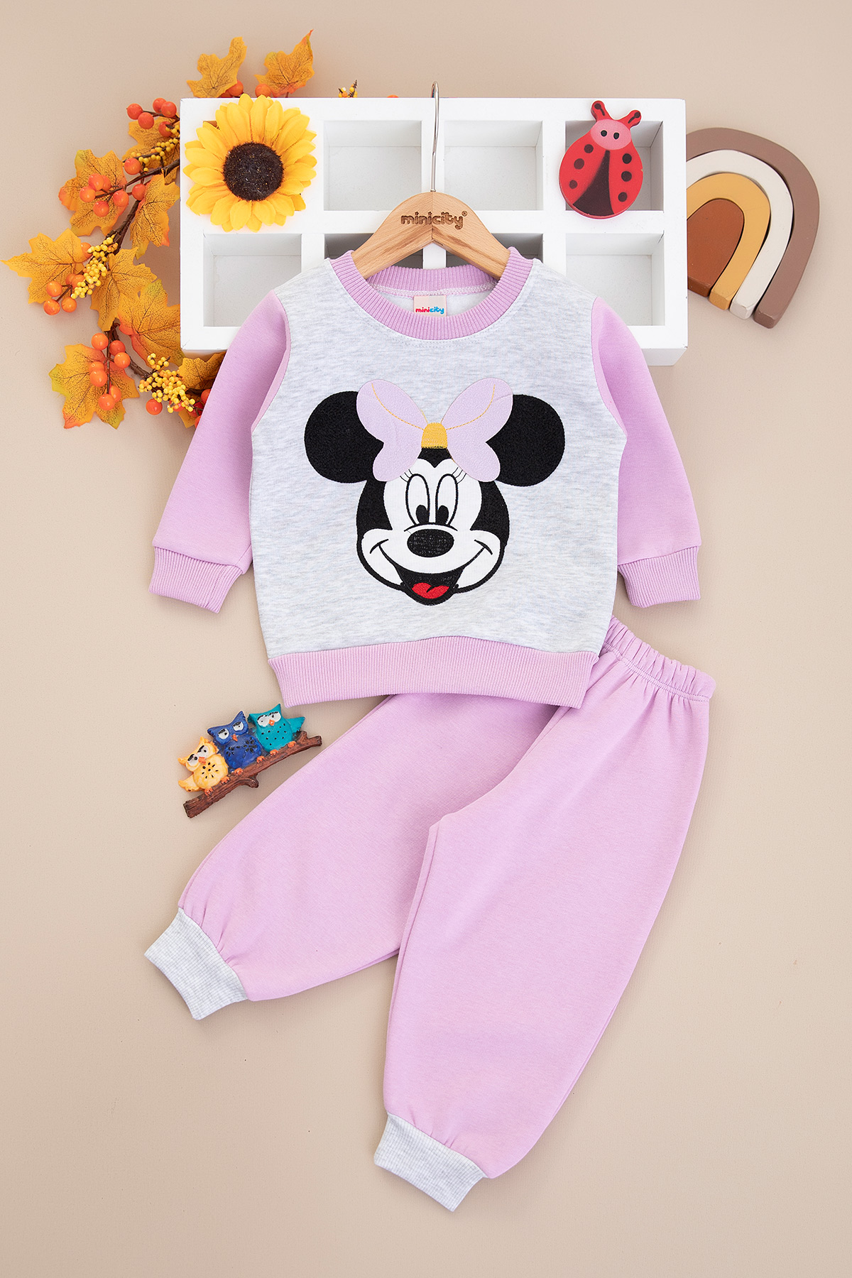 Kız Çocuk Fare Nakışlı Üçip Takım - 2102 (1-3 Yaş)
