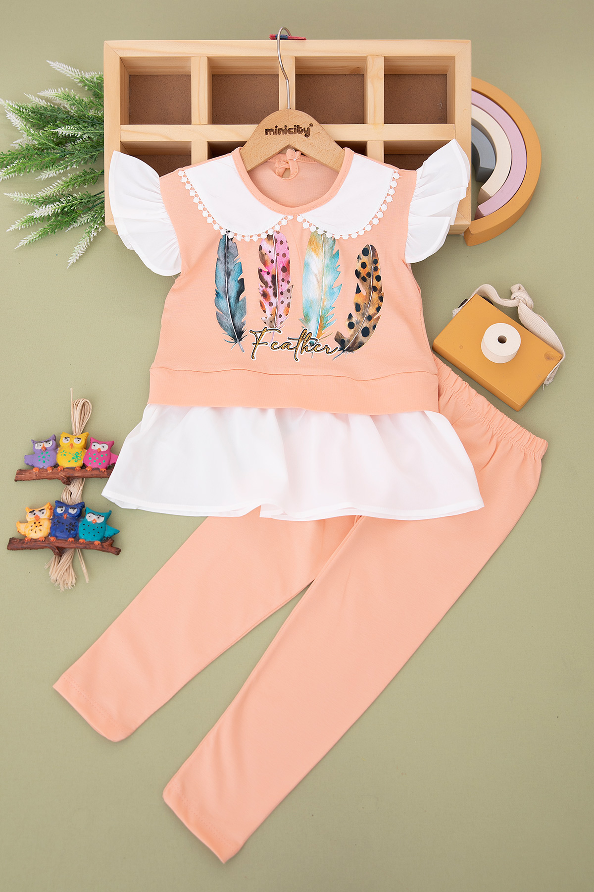 Kız Çocuk Feather Baskılı Taytlı Takım (3-7 Yaş)
