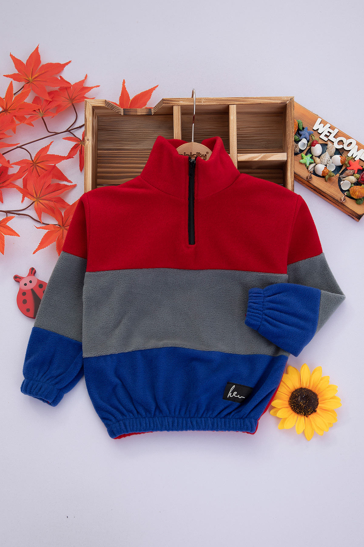 Kız Çocuk Fermuarlı Garnili Polar Sweat - 4490 (3-12 Yaş)