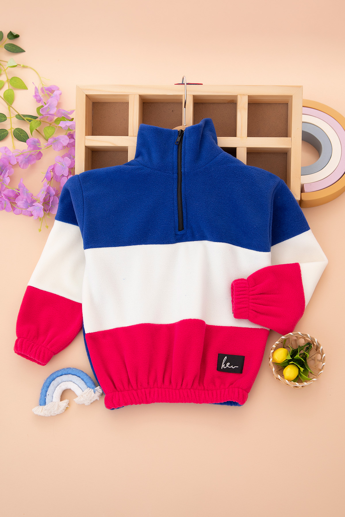 Kız Çocuk Fermuarlı Garnili Polar Sweat - 4490 (3-12 Yaş)