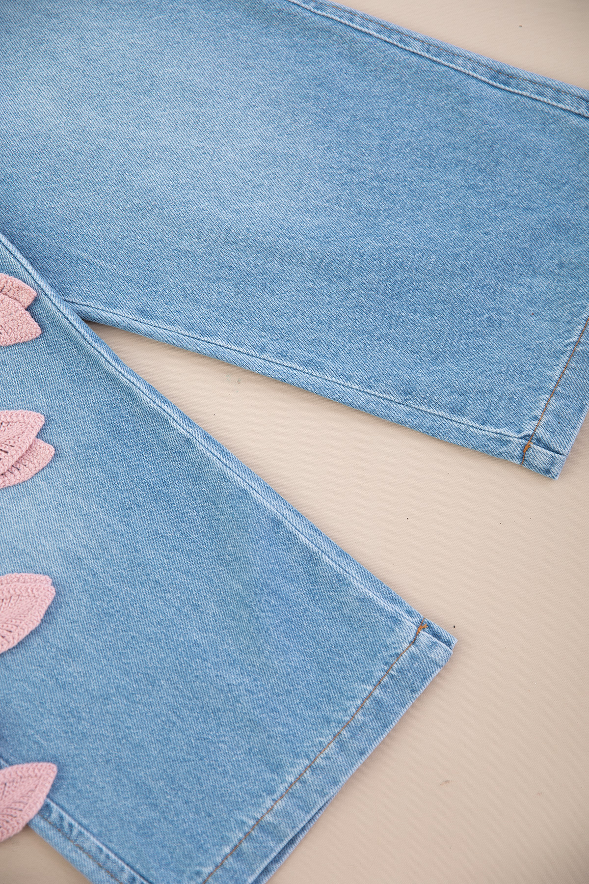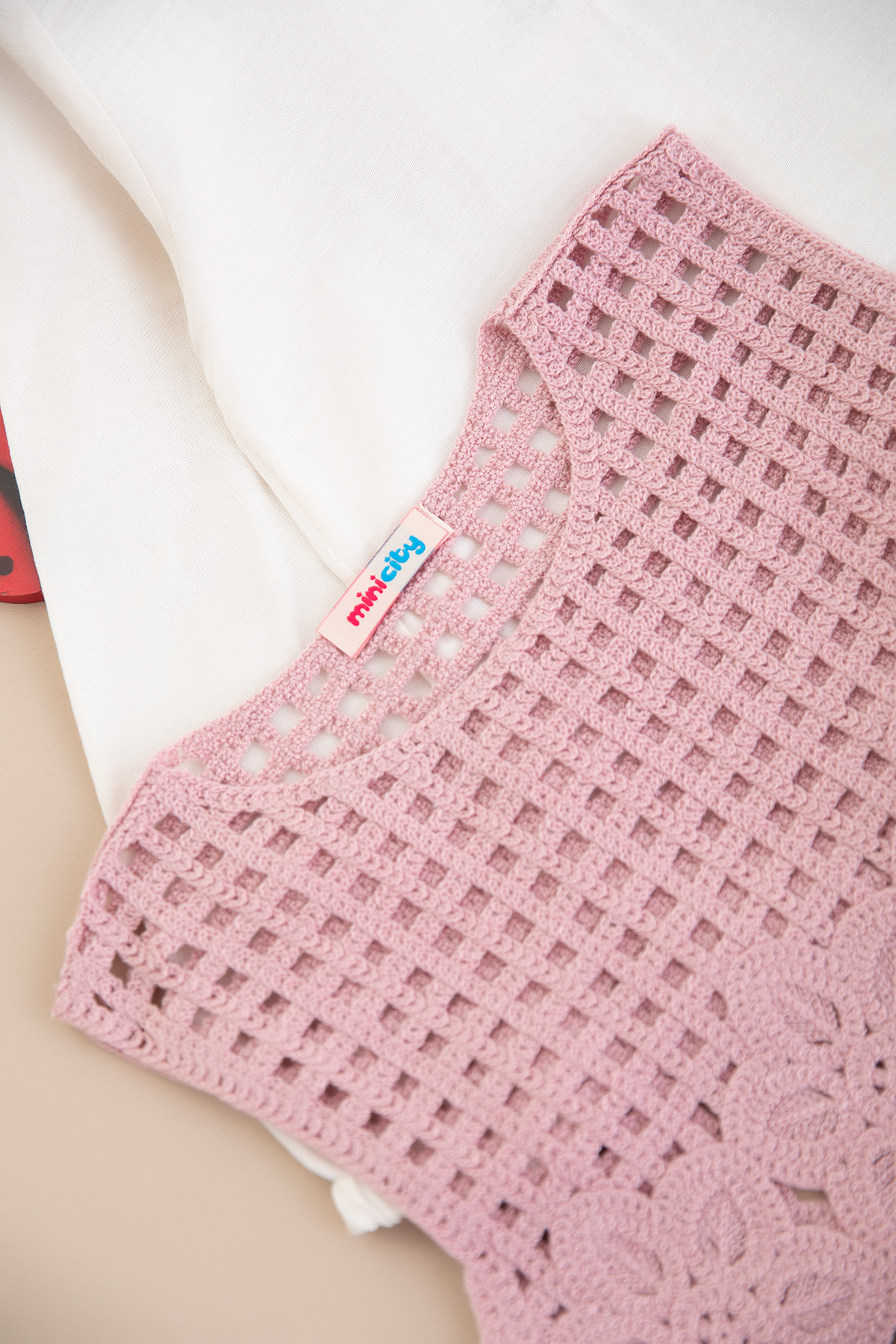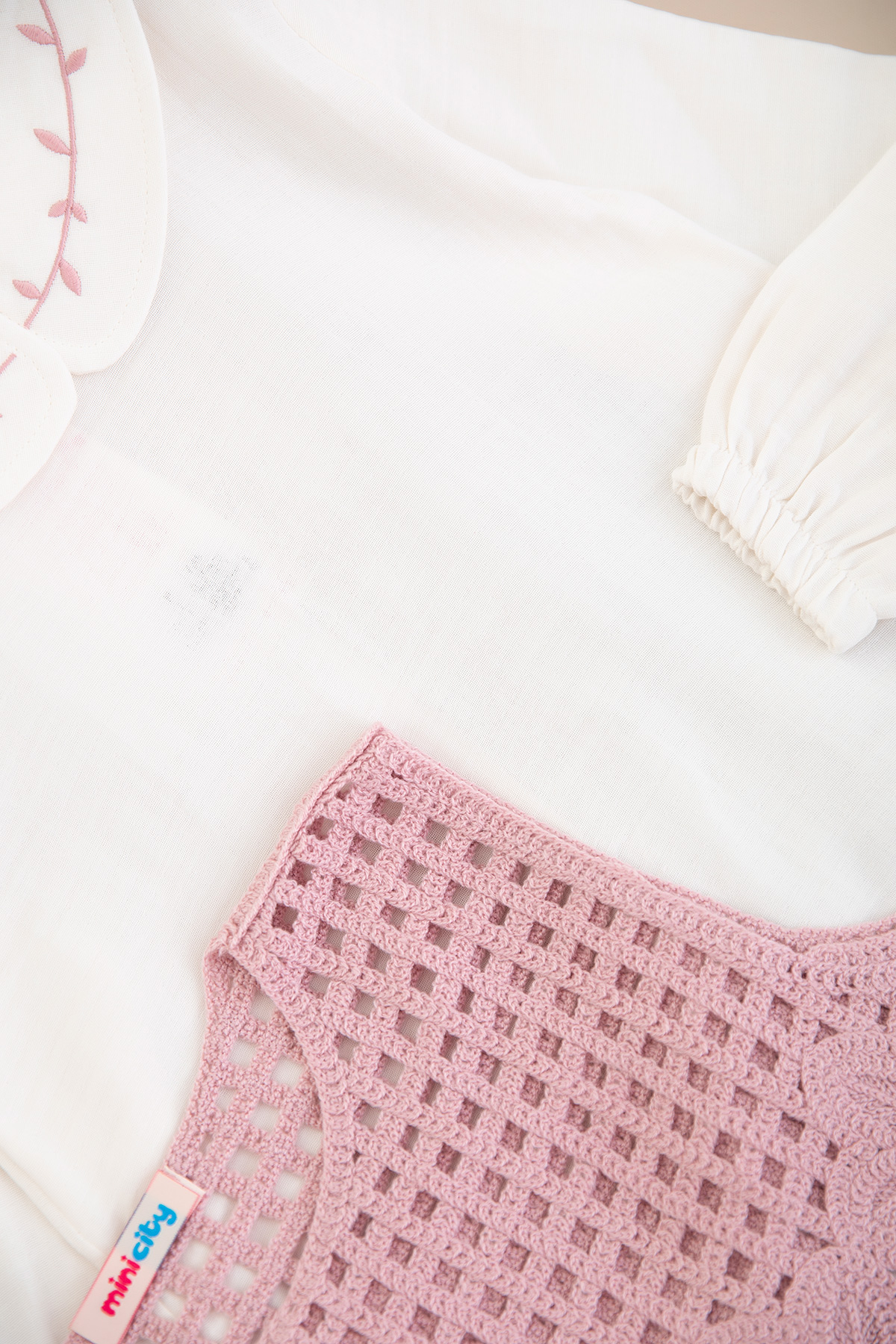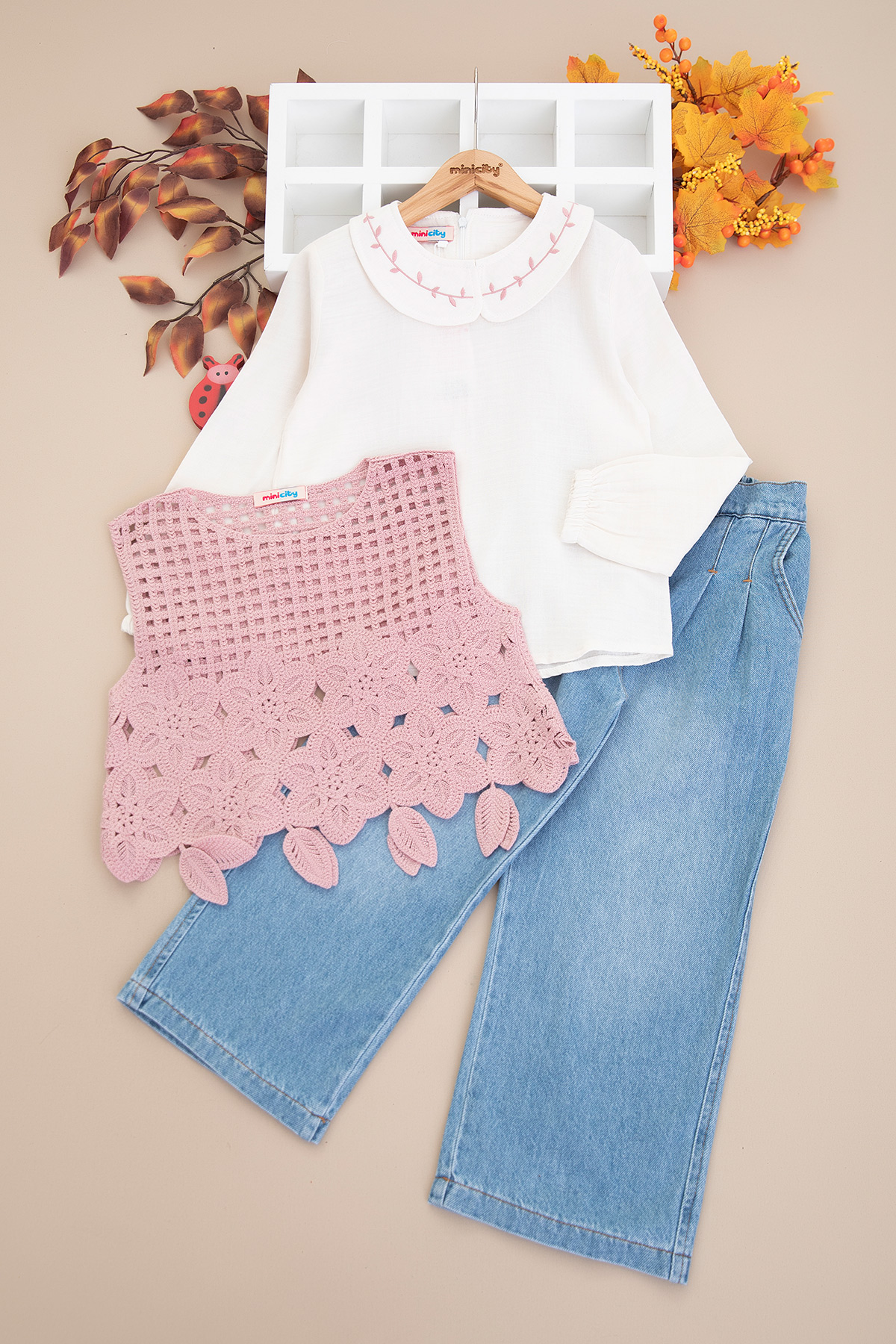 Kız Çocuk File Çiçek Süveterli Takım - 1739 (7-10 Yaş)