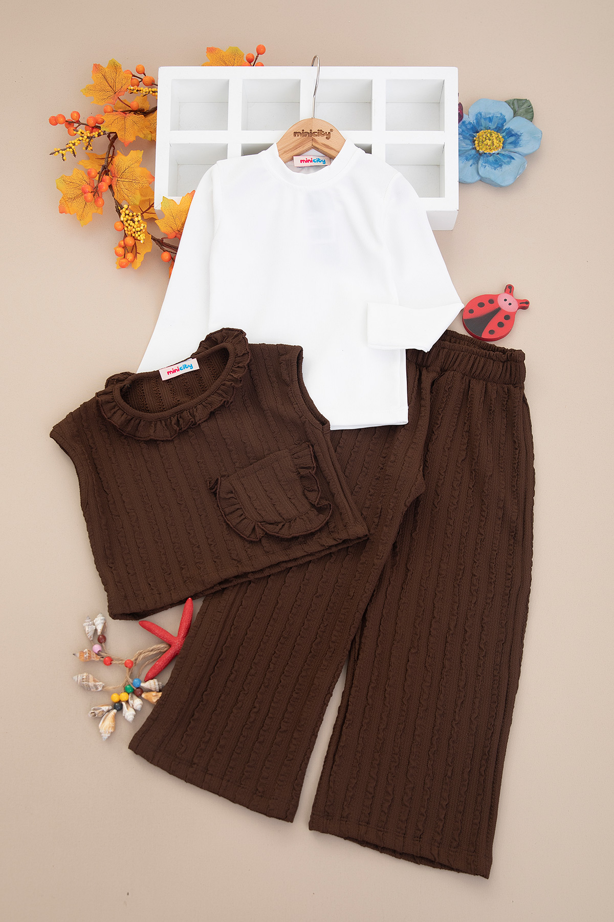 Kız Çocuk Fırfır Cep Detaylı Takım - 5094 (3-10 Yaş)