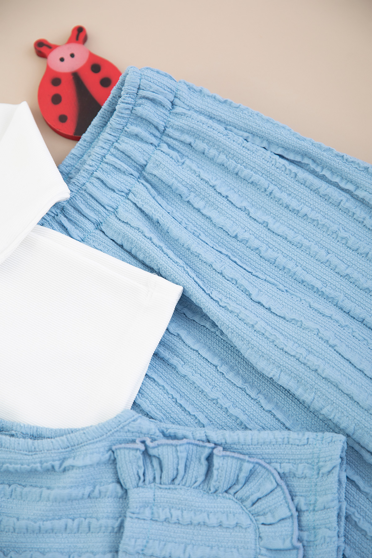 Kız Çocuk Fırfır Cep Detaylı Takım - 5094 (3-10 Yaş)