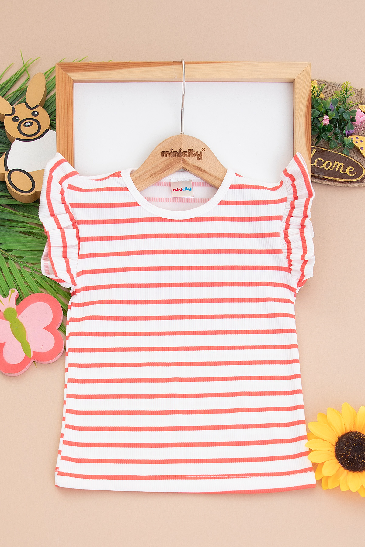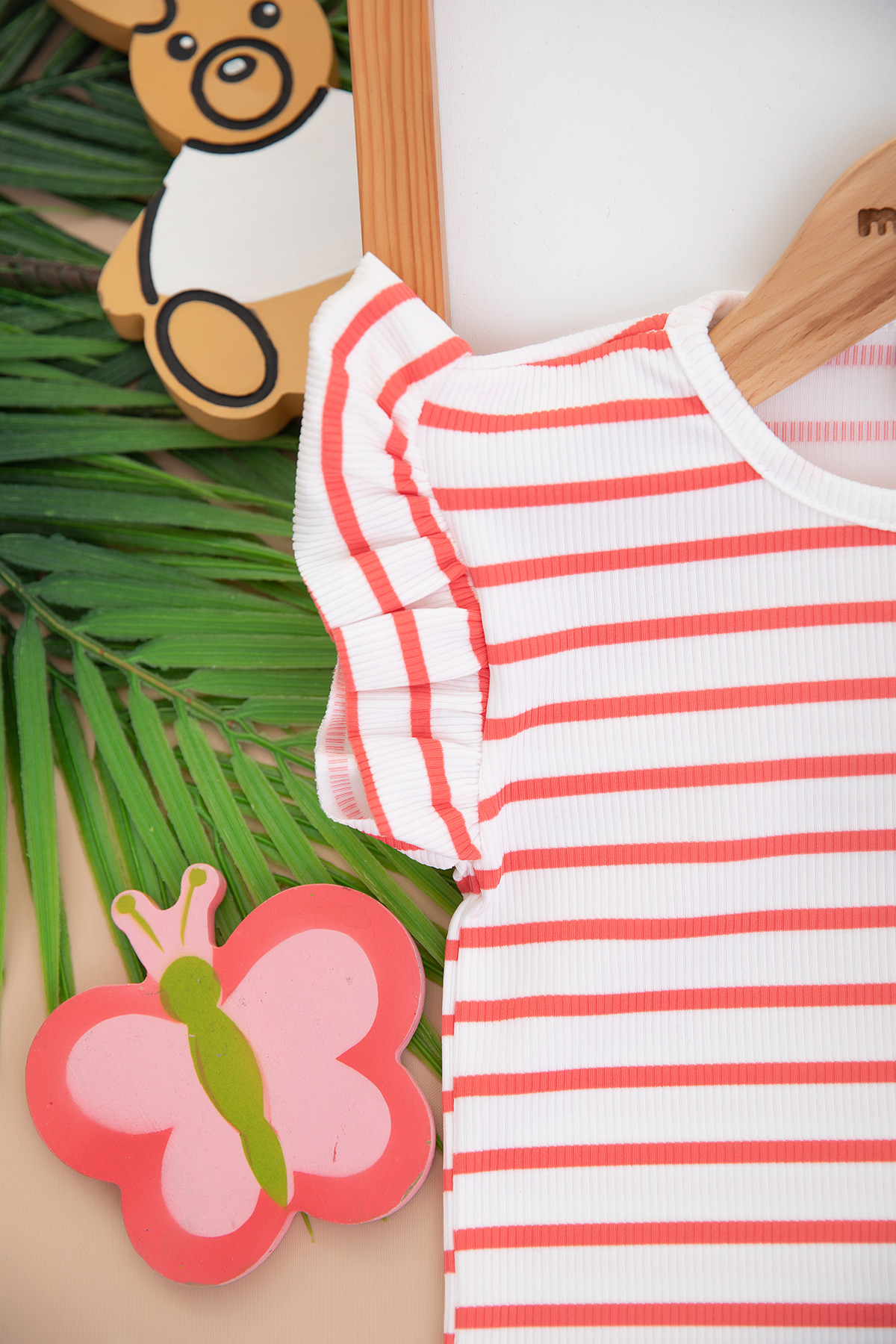 Kız Çocuk Fırfır Kollu Çizgili Body - 40222 (3-10 Yaş)