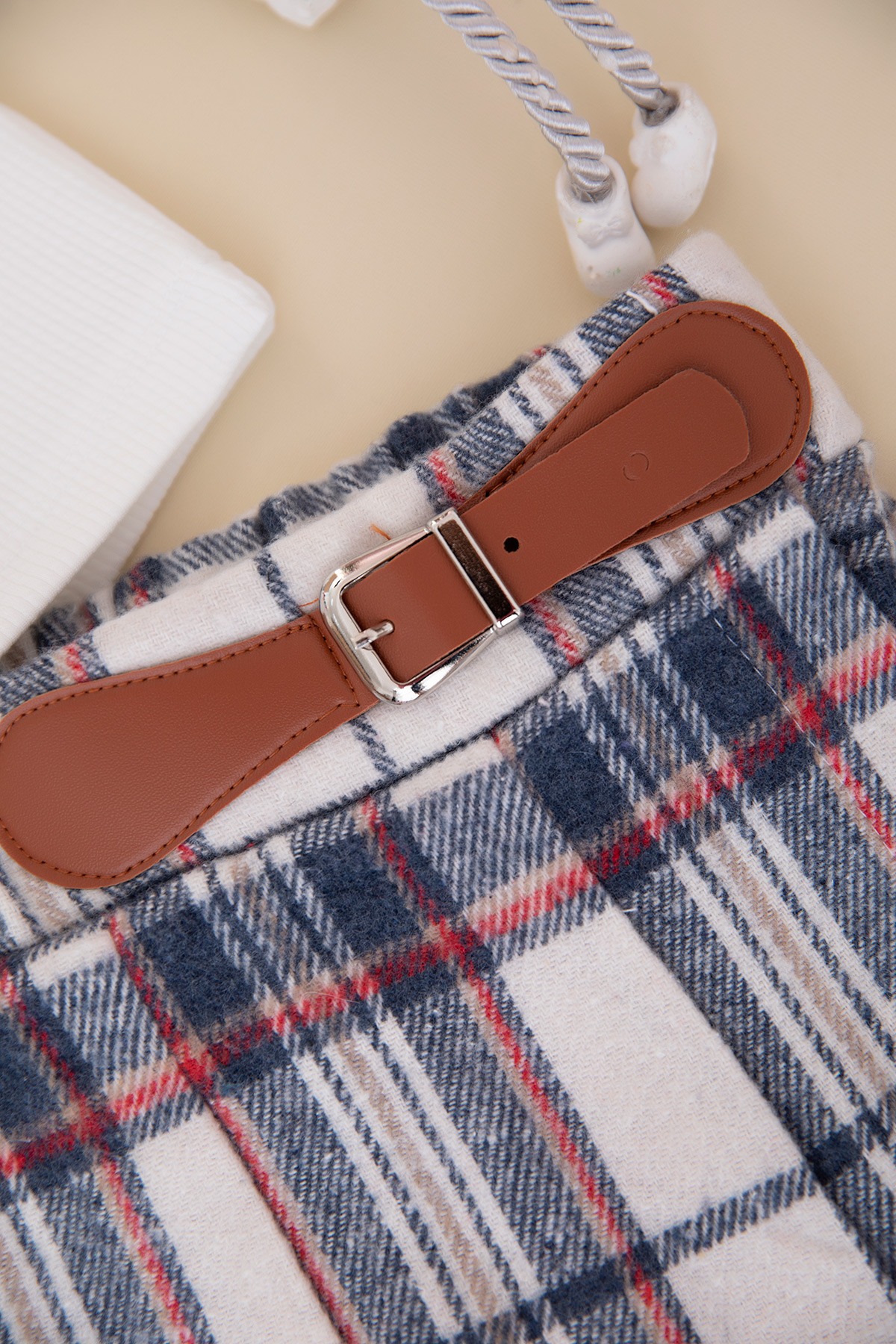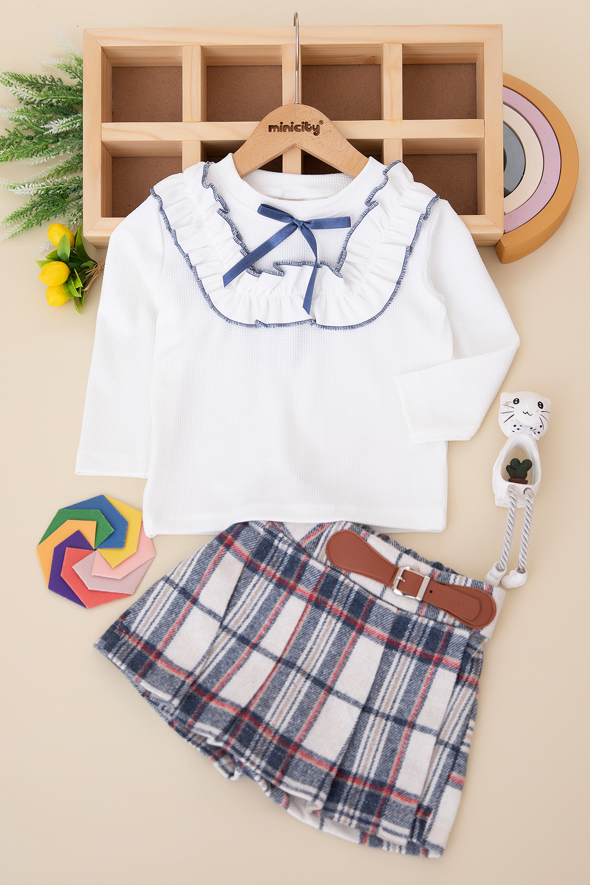 Kız Çocuk Fırfırlı Badi Ekose Şort Etek Takım - 10073 (2-6 Yaş)