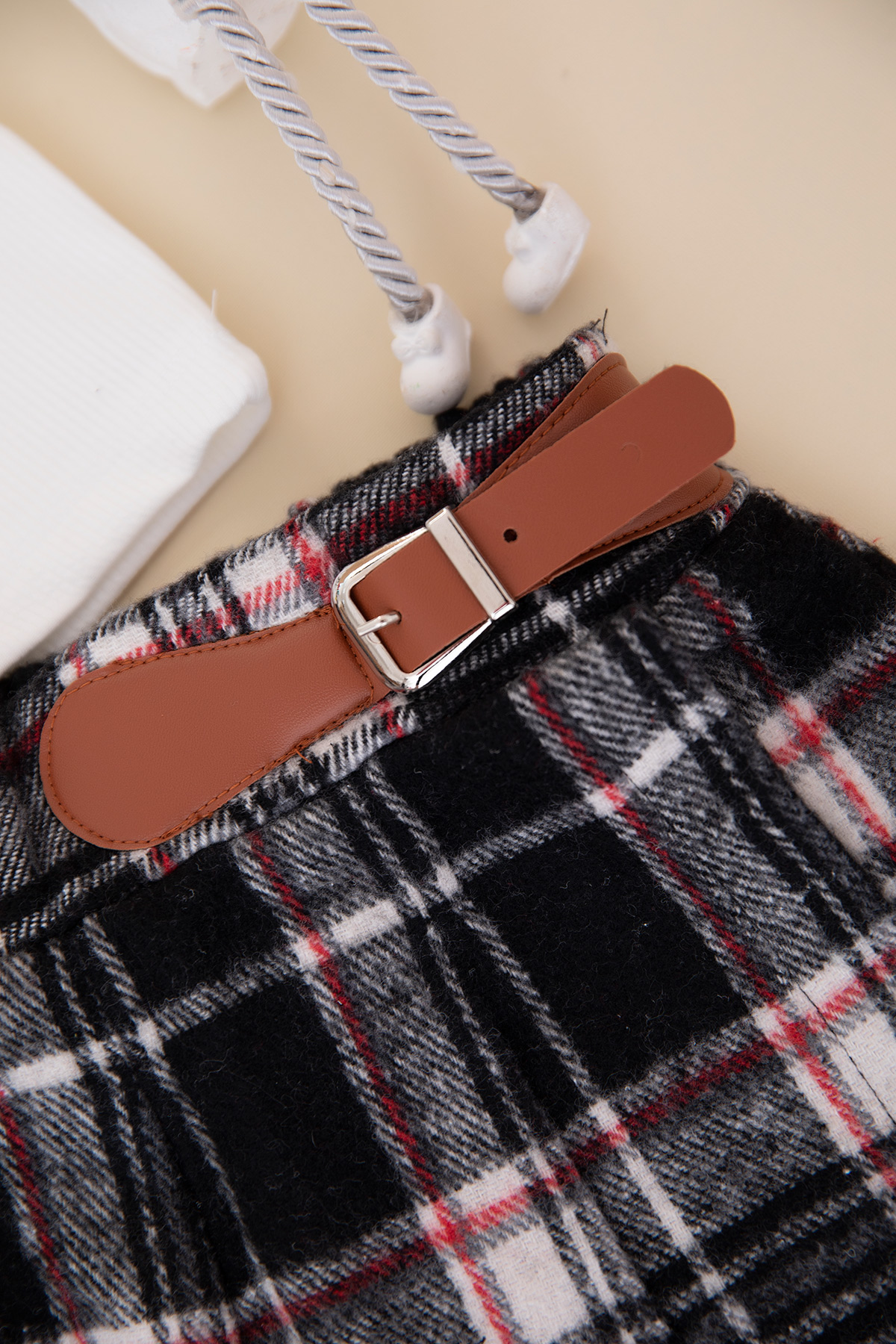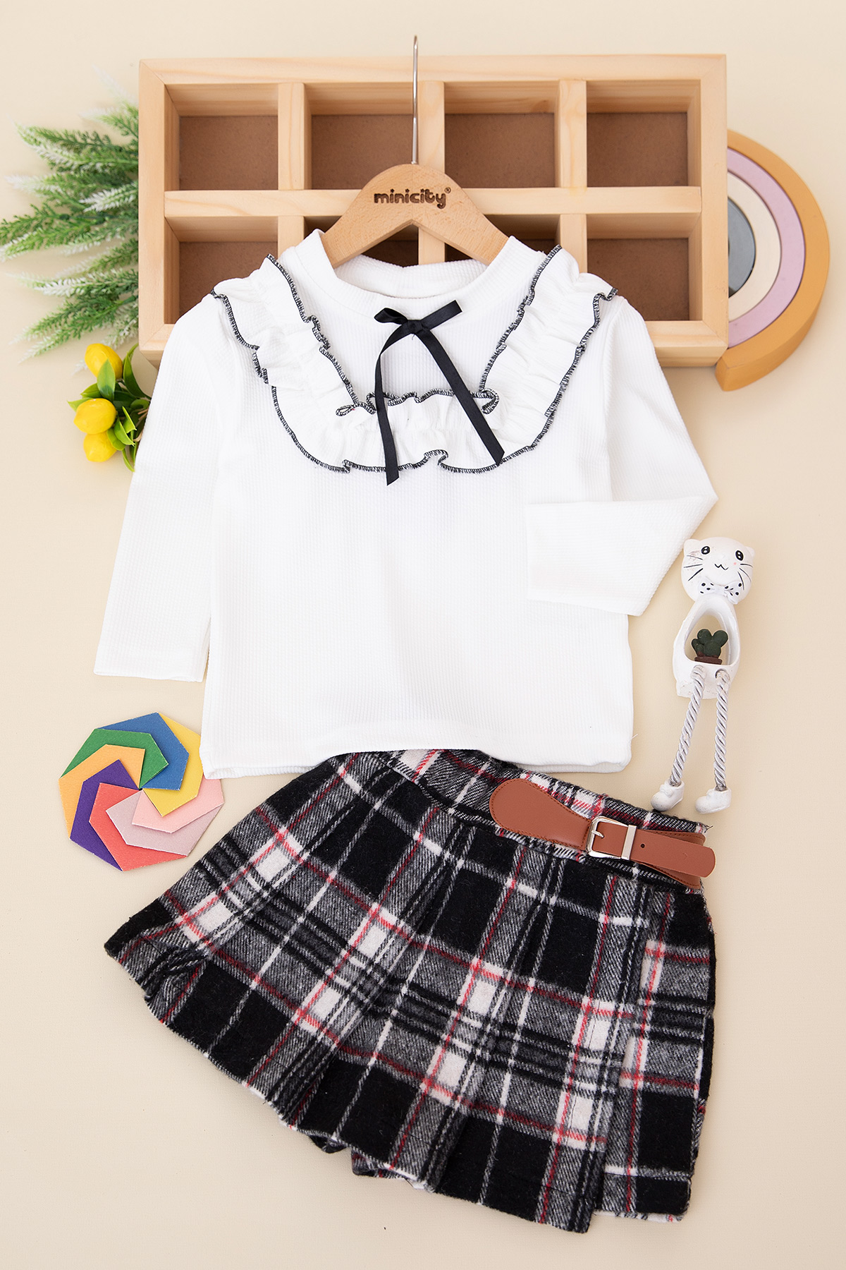 Kız Çocuk Fırfırlı Badi Ekose Şort Etek Takım - 10073 (2-6 Yaş)