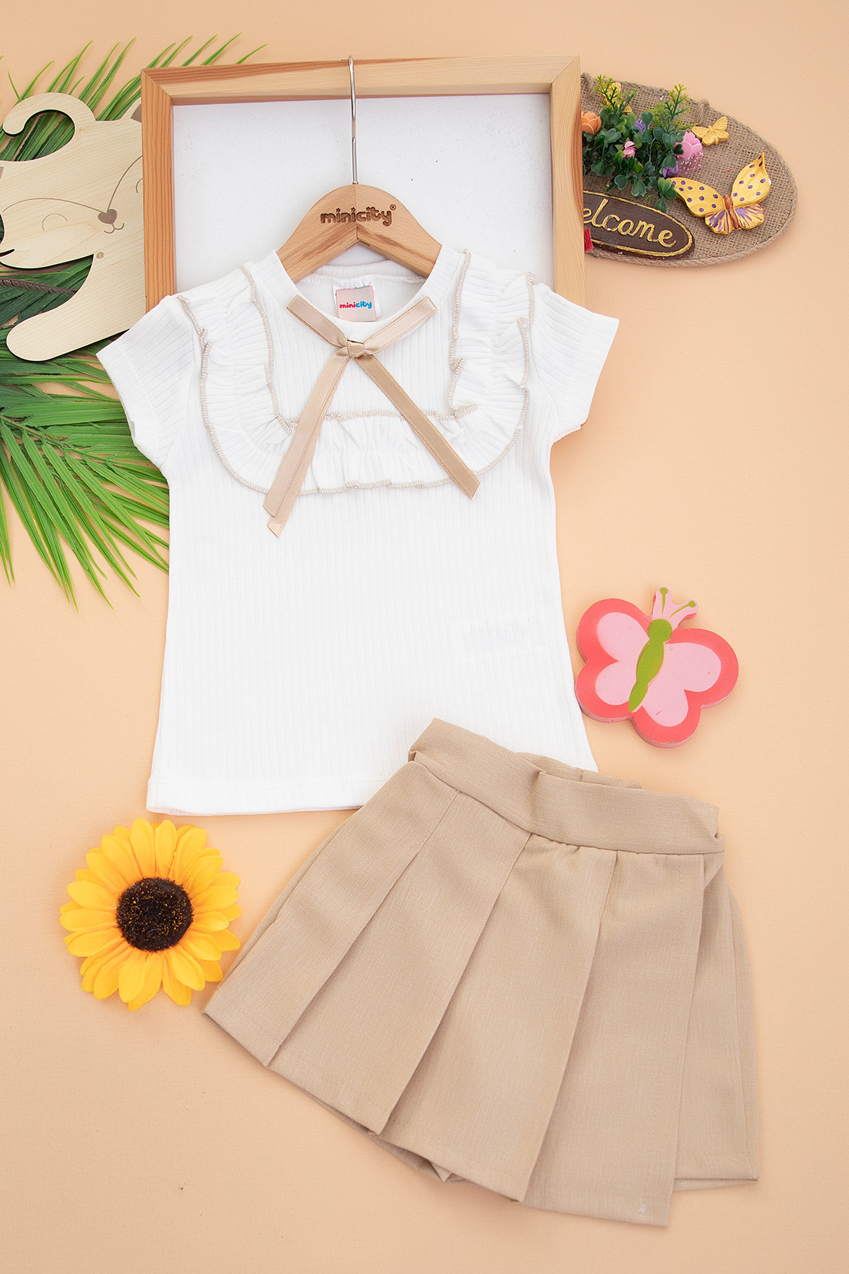 Kız Çocuk Fırfırlı Badi Şort Etek Takım - 218 (2-5 Yaş)