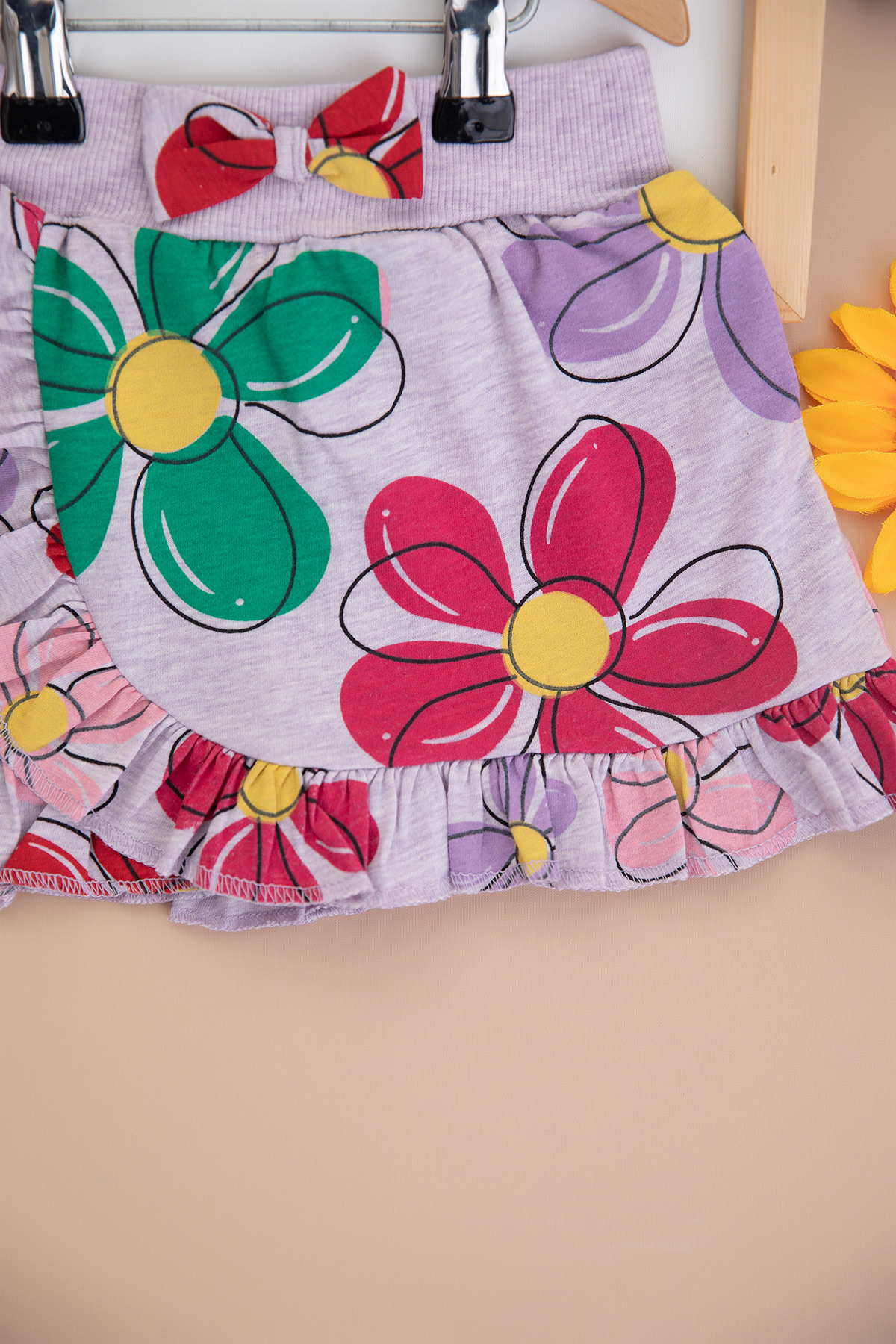 Kız Çocuk Fırfırlı Baskılı Şort Etek (4-9 Yaş)