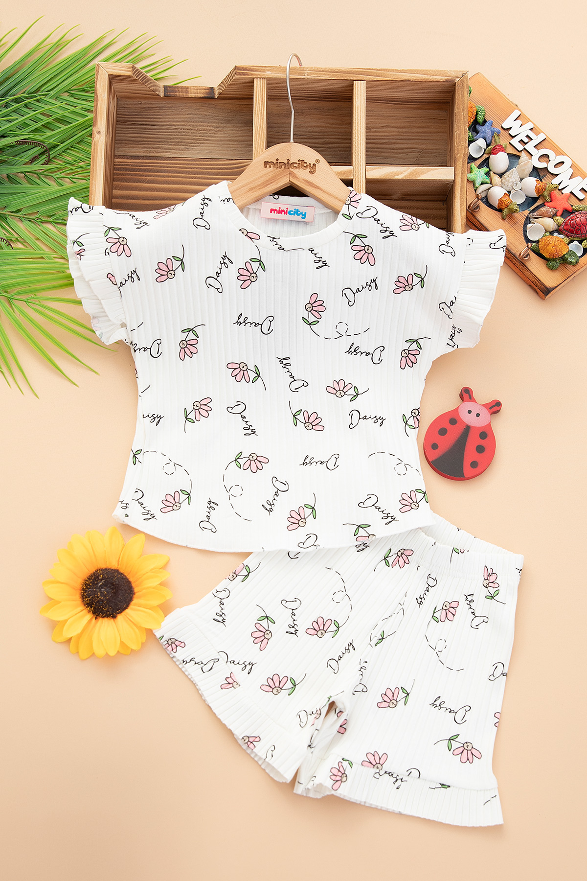 Kız Çocuk Fırfırlı Baskılı Şortlu Takım - 25311 (1-4 Yaş)