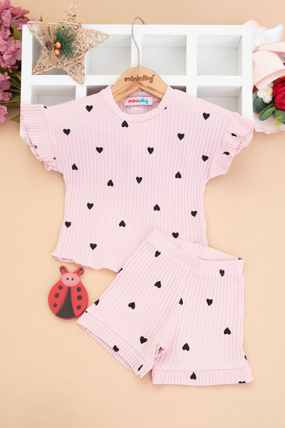 Kız Çocuk Fırfırlı Baskılı Şortlu Takım - 26310 (1-3 Yaş)