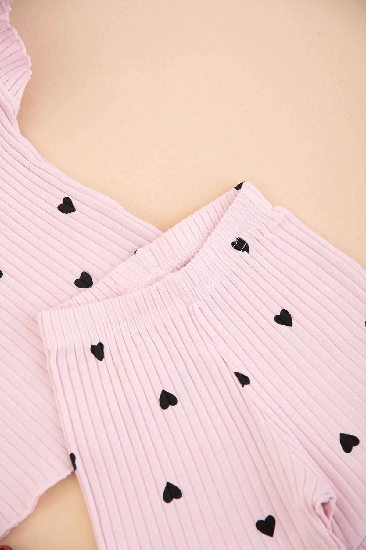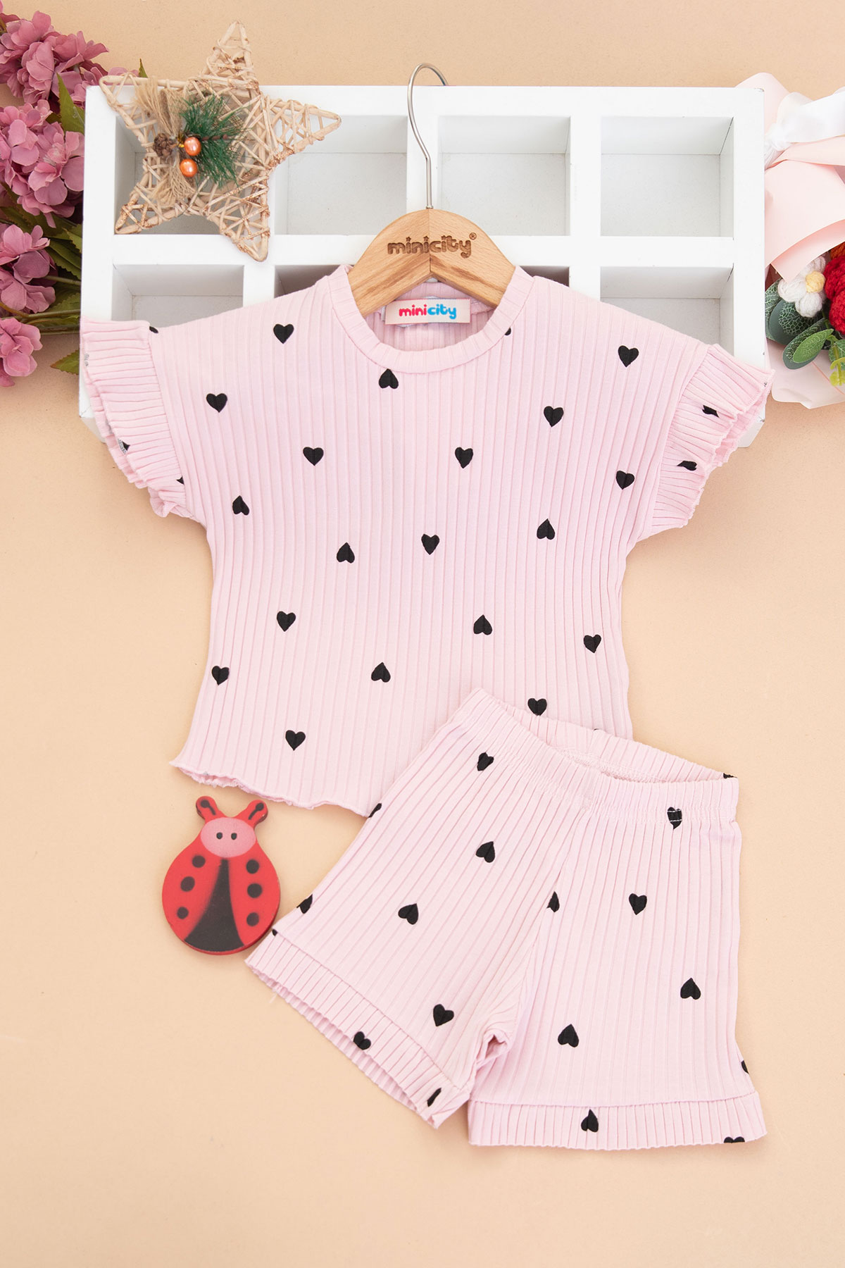 Kız Çocuk Fırfırlı Baskılı Şortlu Takım - 26510 (5-8 Yaş)