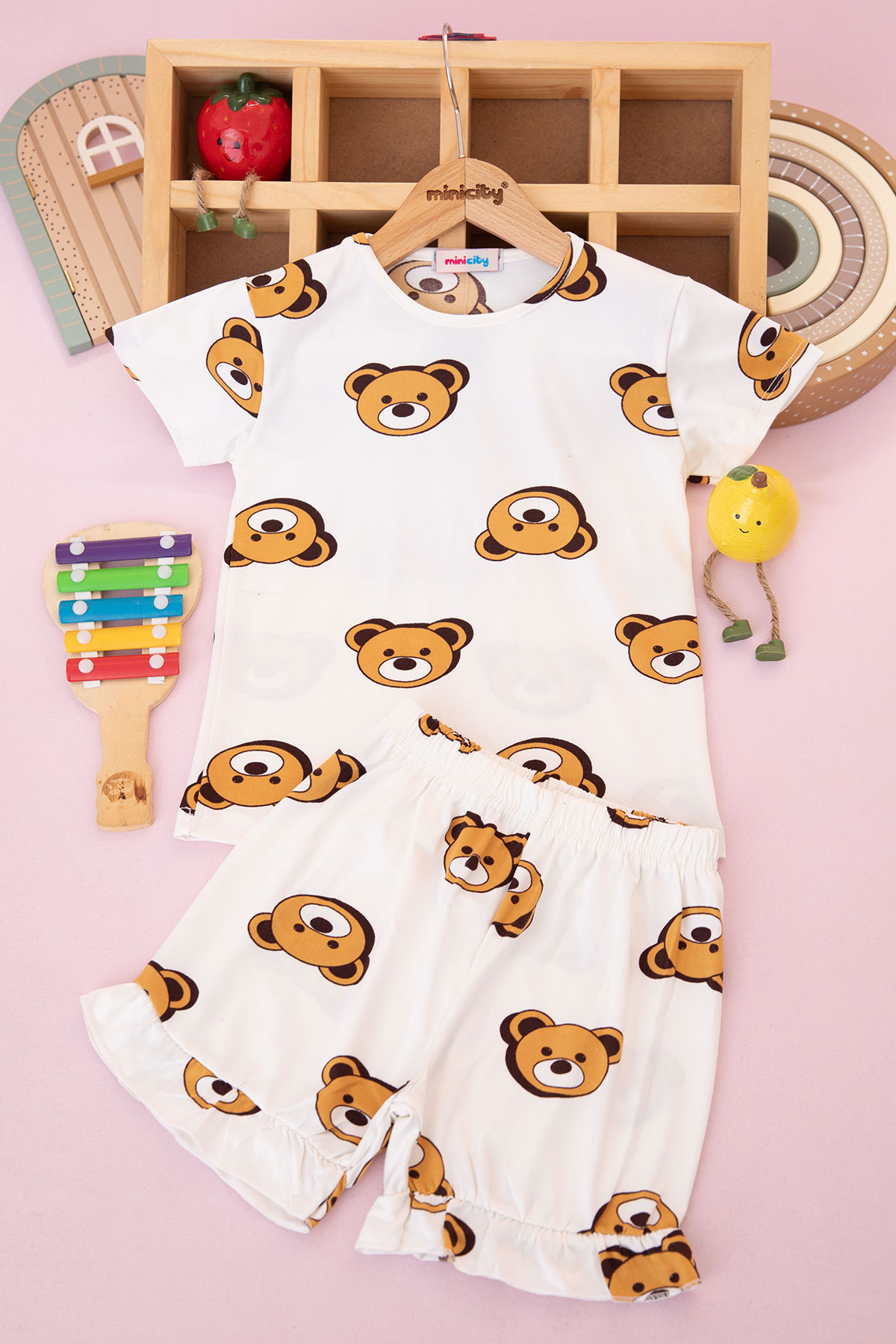 Kız Çocuk Fırfırlı Baskılı Şortlu Takım - 5157 (3-10 Yaş)