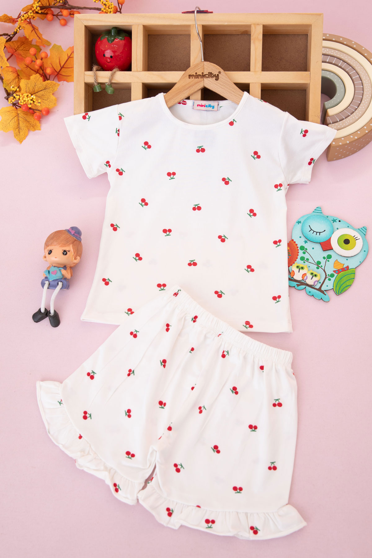 Kız Çocuk Fırfırlı Baskılı Şortlu Takım - 5157 (3-10 Yaş)