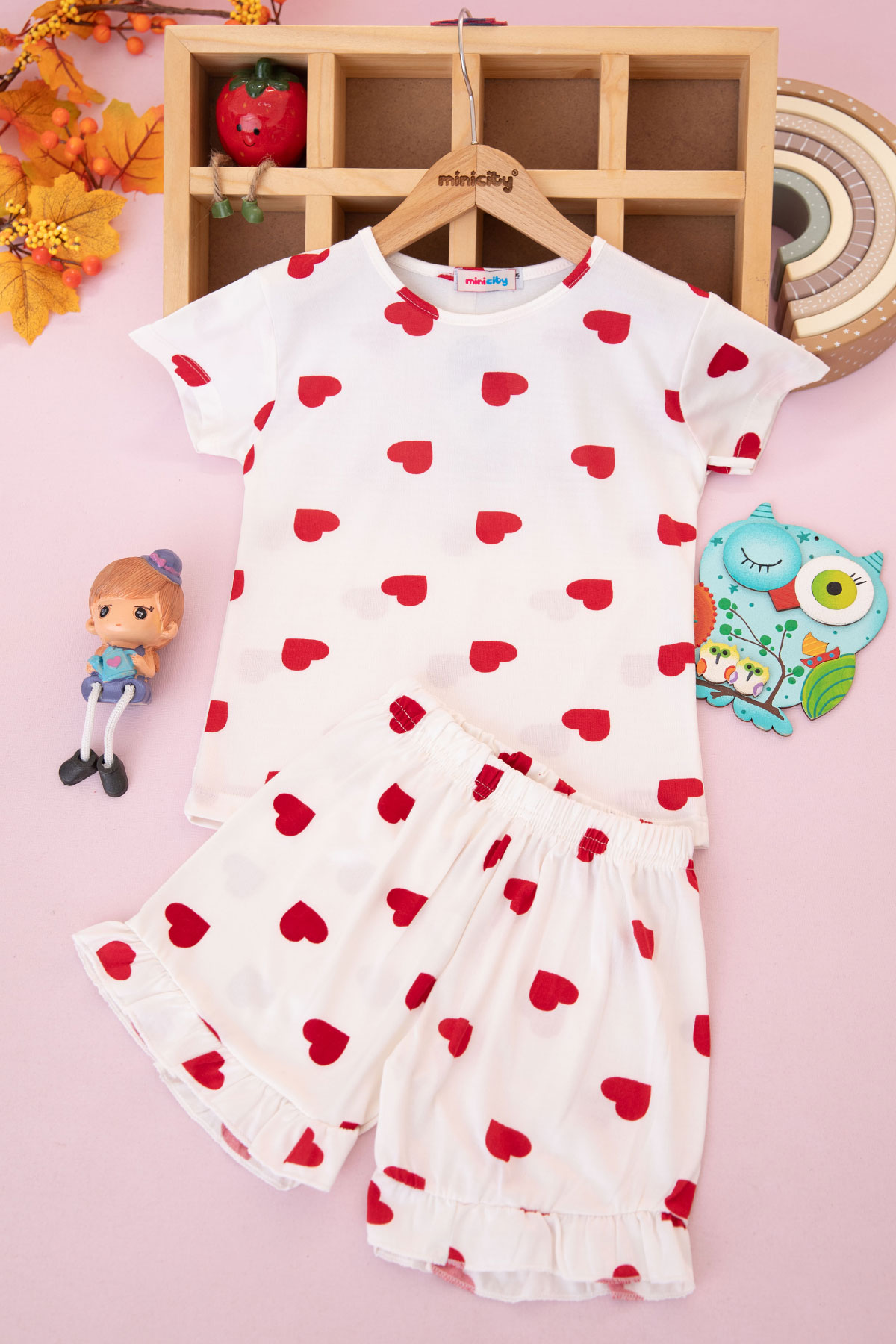 Kız Çocuk Fırfırlı Baskılı Şortlu Takım - 5157 (3-10 Yaş)