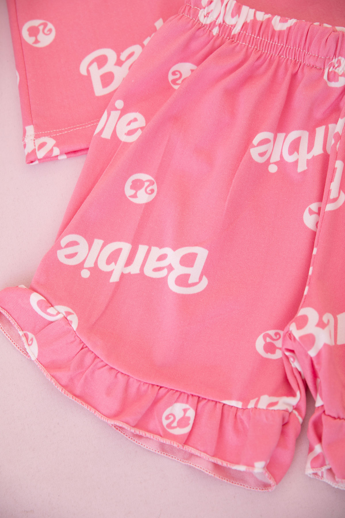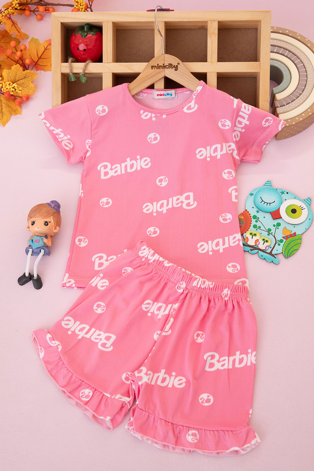 Kız Çocuk Fırfırlı Baskılı Şortlu Takım - 5157 (3-10 Yaş)