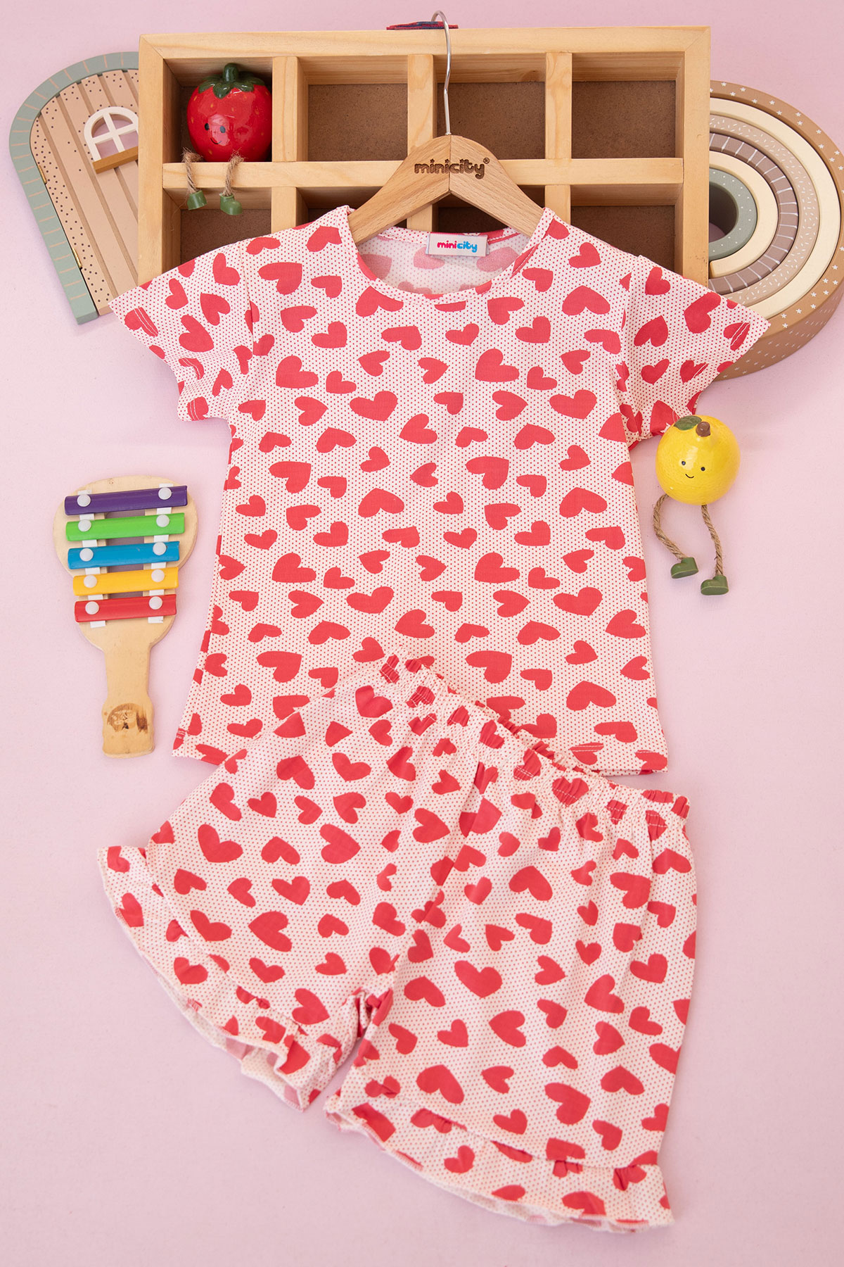Kız Çocuk Fırfırlı Baskılı Şortlu Takım - 5157 (3-10 Yaş)