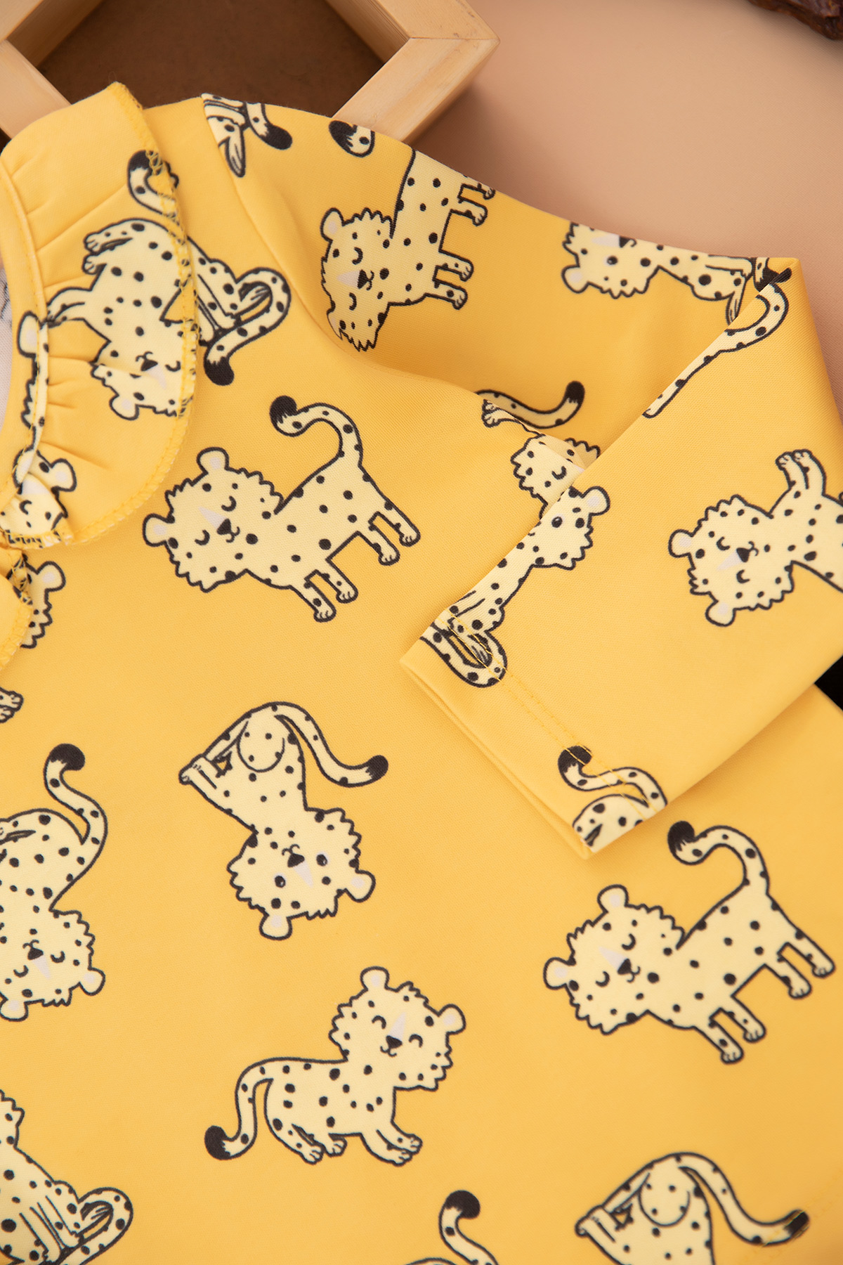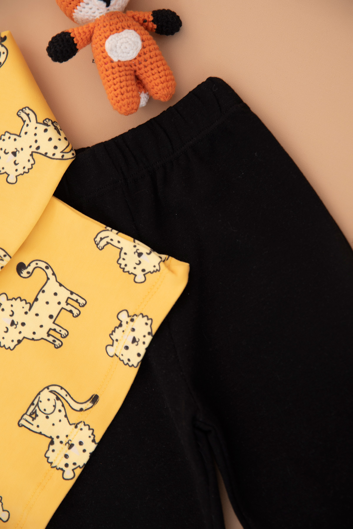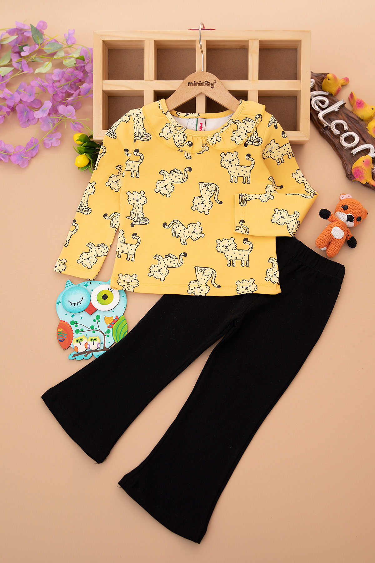 Kız Çocuk Fırfırlı Baskılı Taytlı Takım - Hs-01 (2-7 Yaş)