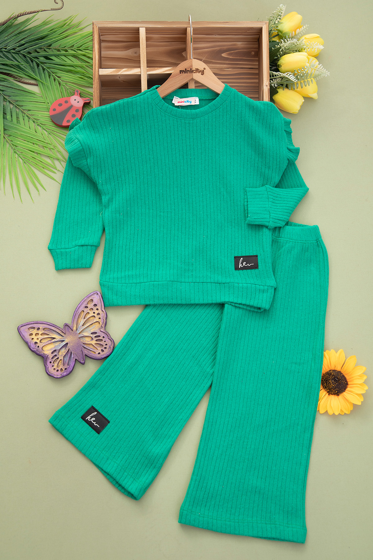 Kız Çocuk Fırfırlı Bol Paça Takım - 8009 (3-12 Yaş)