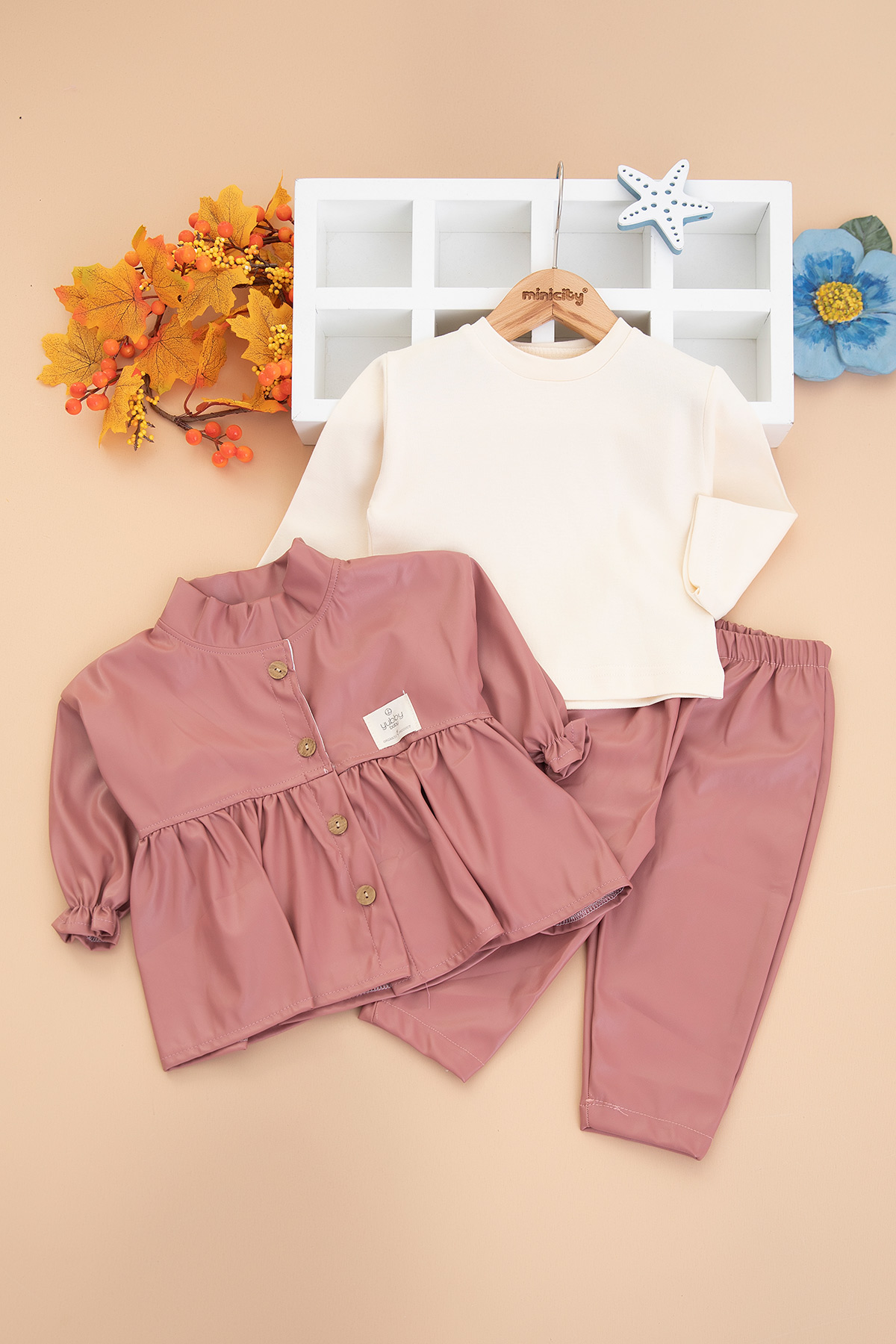 Kız Çocuk Fırfırlı Deri Montlu Takım - 1761 (1-3 Yaş)