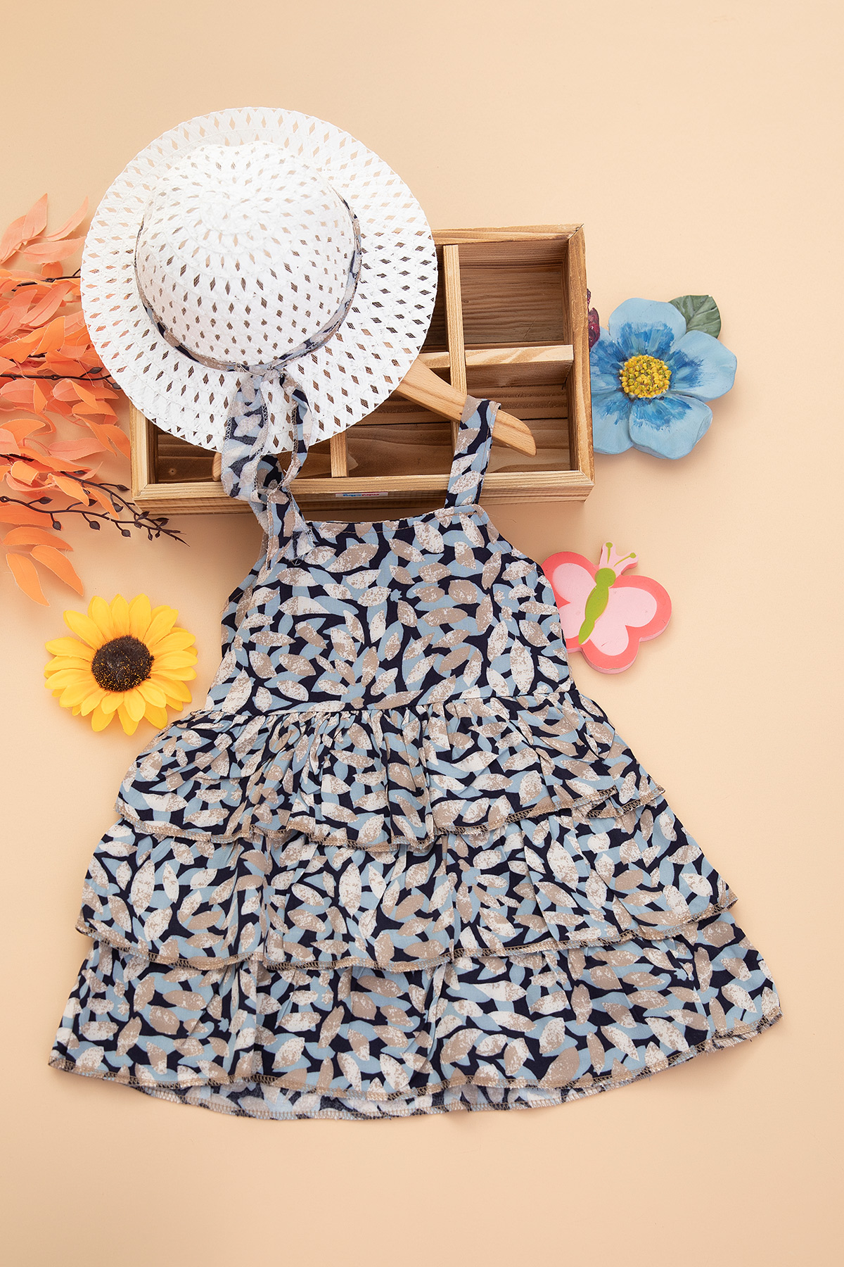 Kız Çocuk Fırfırlı Dokuma Elbise - B-0004 (3-10 Yaş)