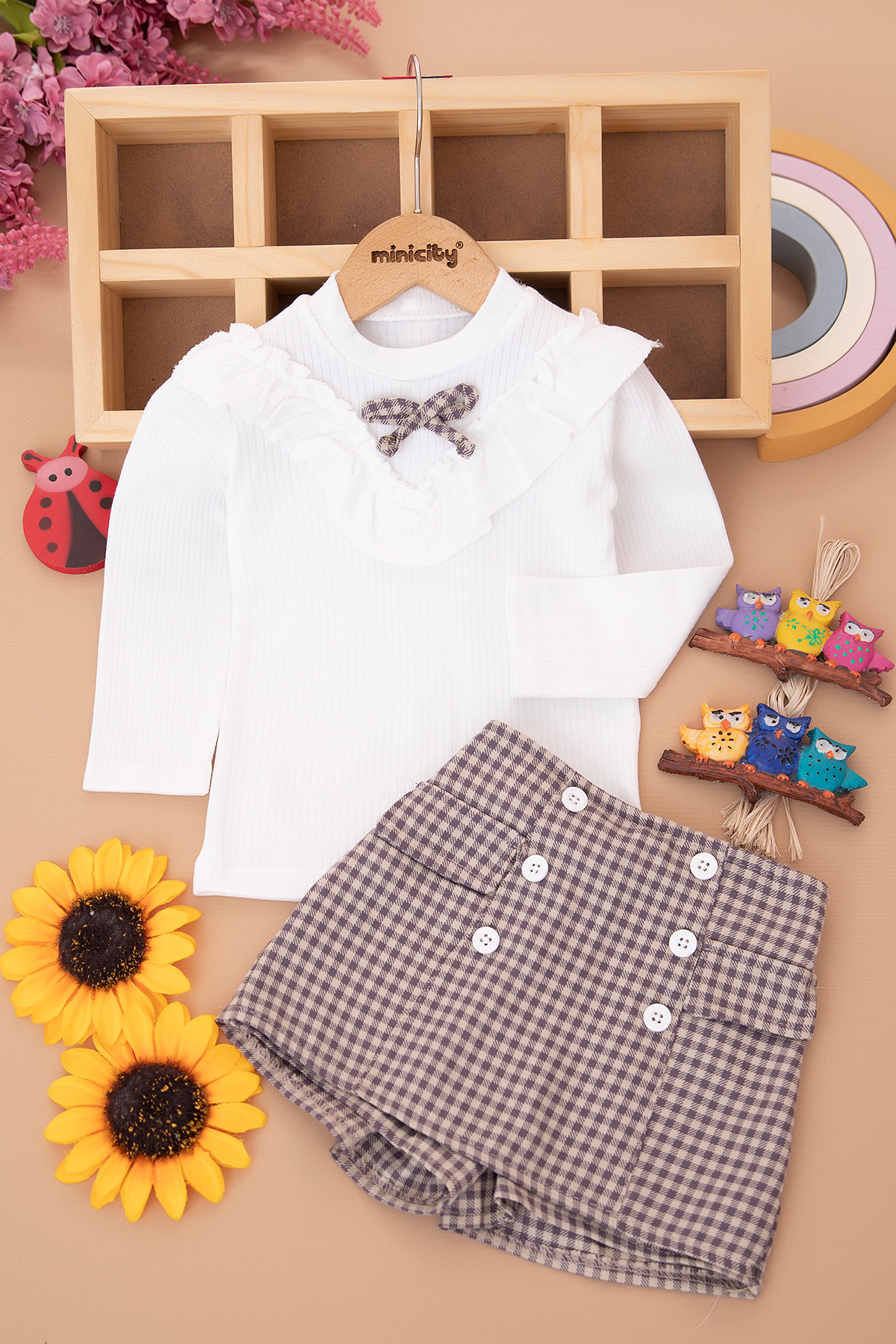 Kız Çocuk Fırfırlı Ekose Etekli Takım - 2031 (2-5 Yaş)