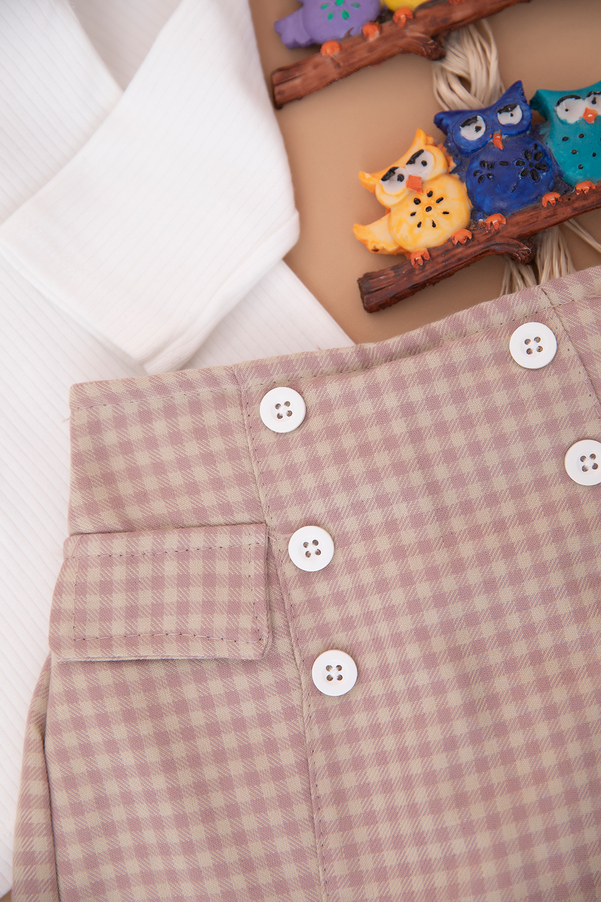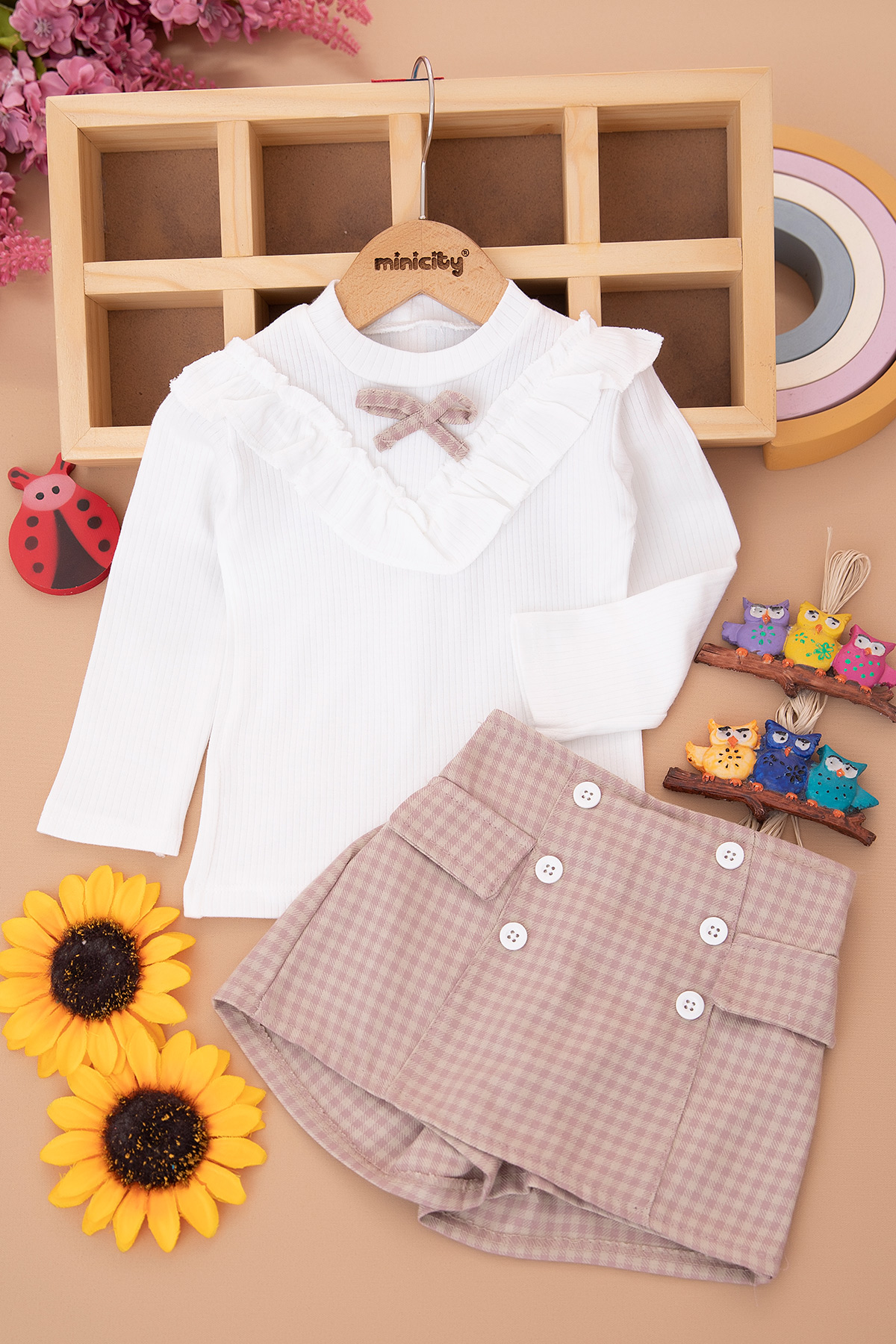 Kız Çocuk Fırfırlı Ekose Etekli Takım - 2042 (6-9 Yaş)