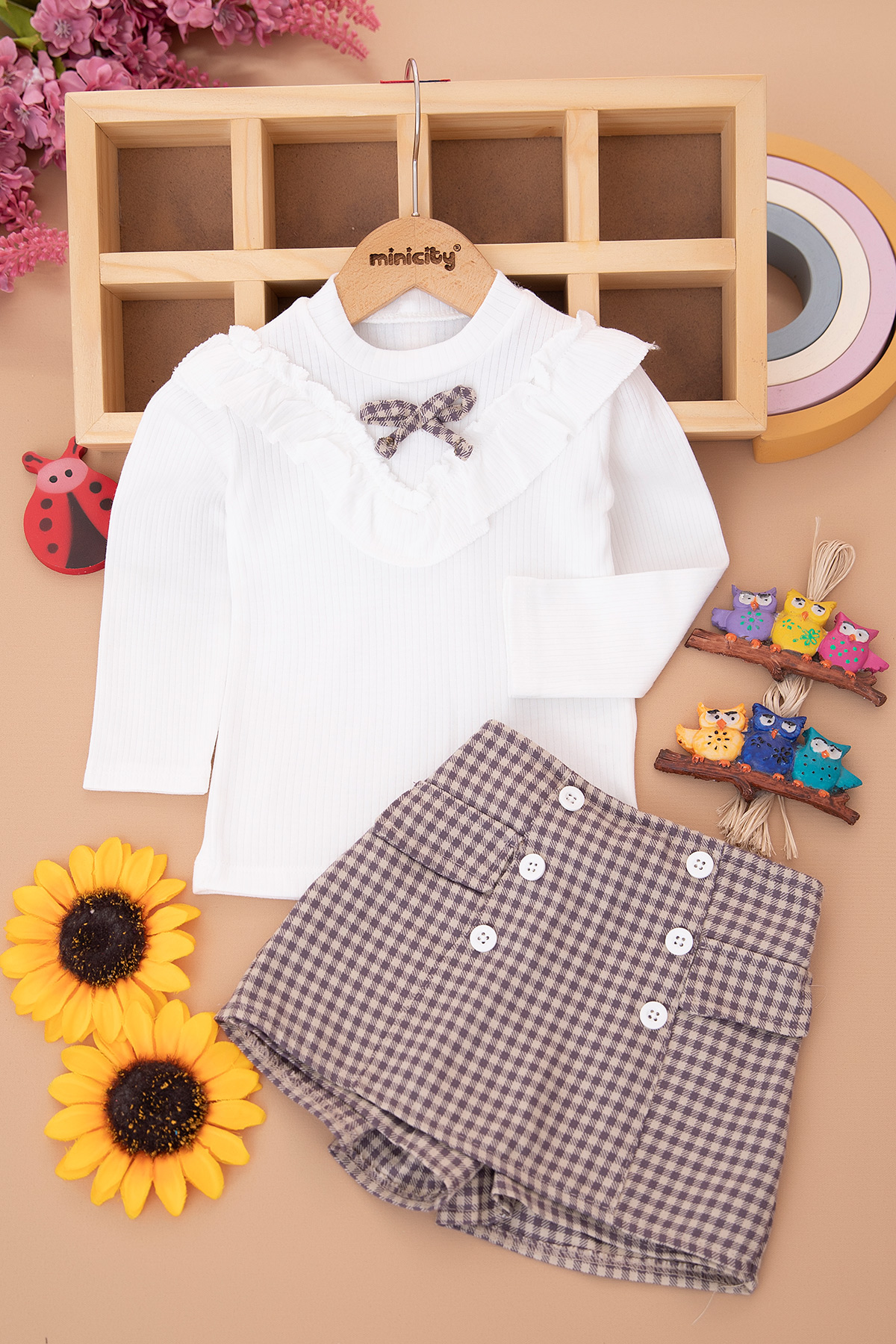 Kız Çocuk Fırfırlı Ekose Etekli Takım - 2042 (6-9 Yaş)