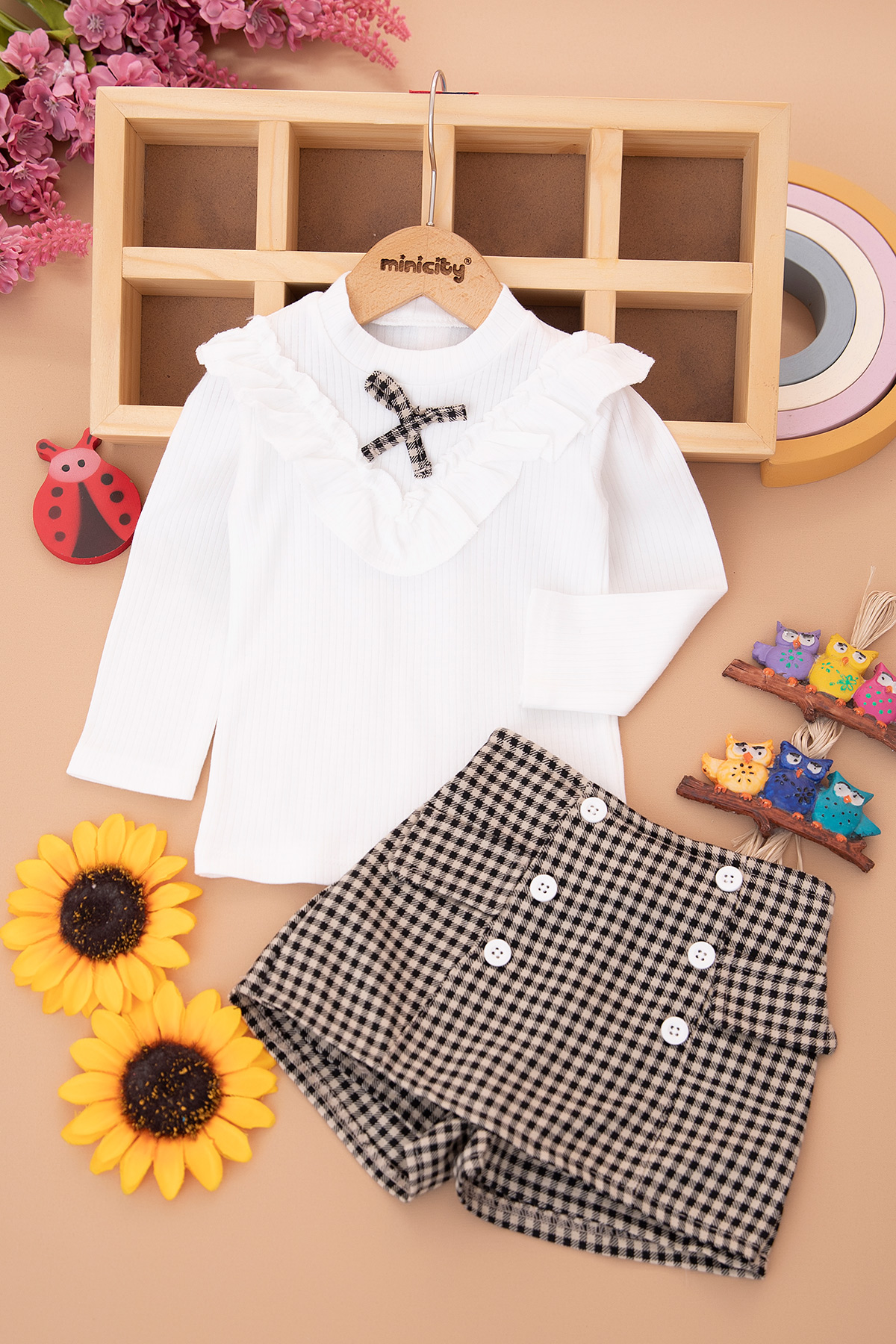 Kız Çocuk Fırfırlı Ekose Etekli Takım - 2042 (6-9 Yaş)