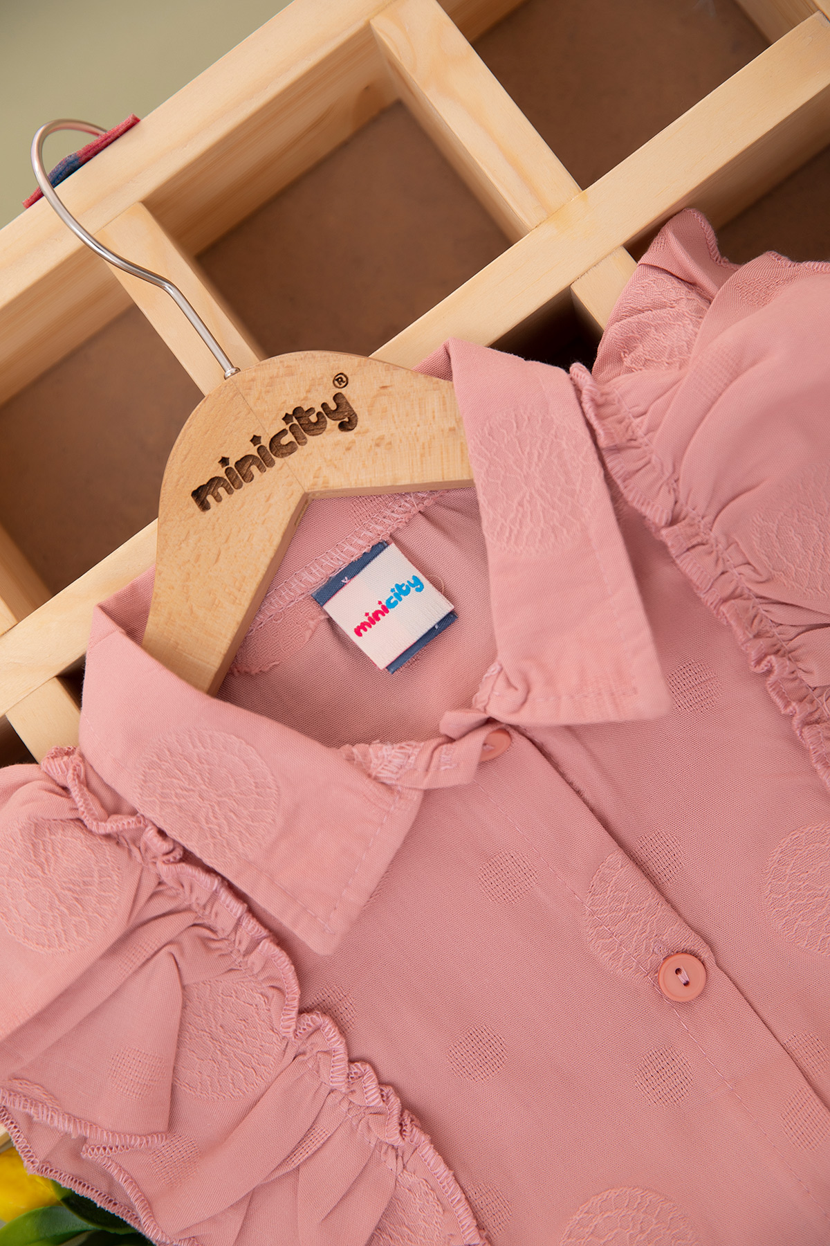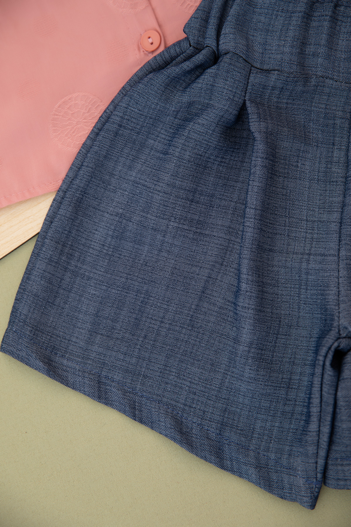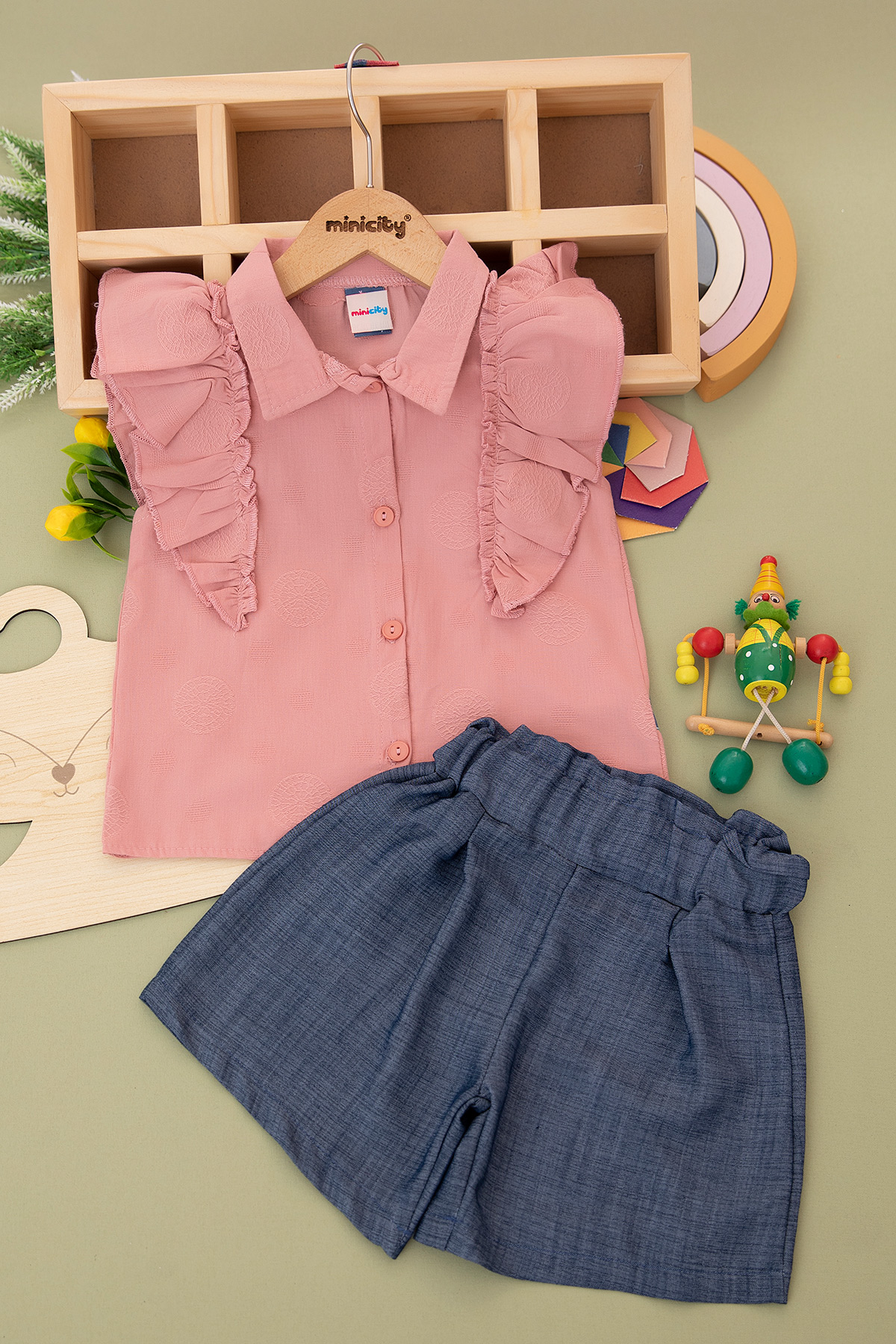 Kız Çocuk Fırfırlı Gömlek Jakar Şortlu Takım - 24313 (3-6 Yaş)