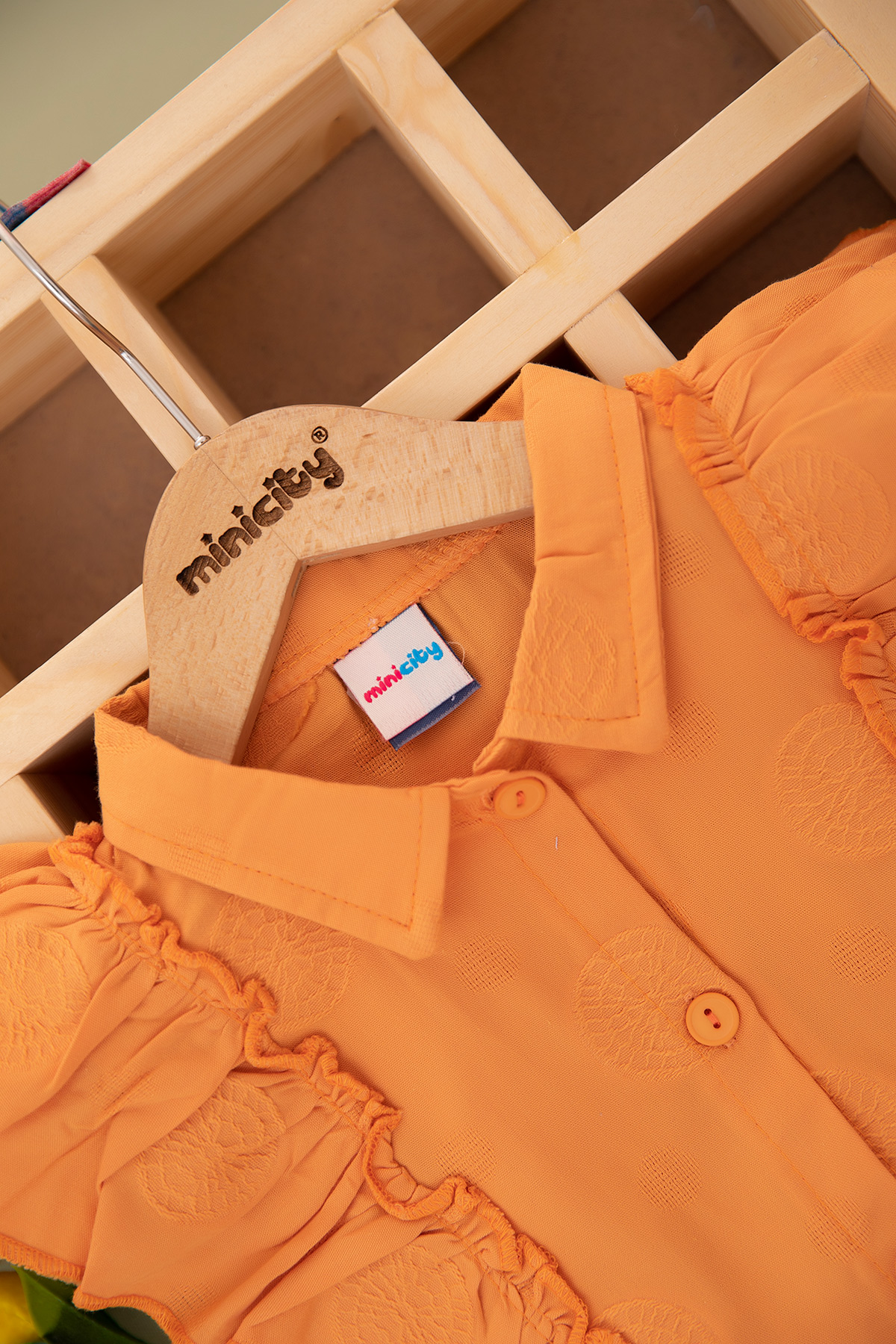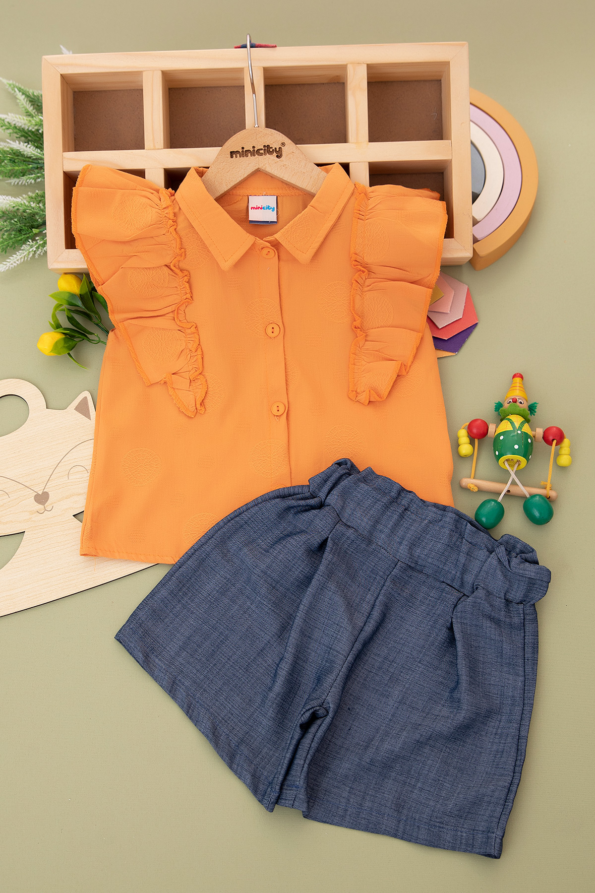Kız Çocuk Fırfırlı Gömlek Jakar Şortlu Takım - 24313 (3-6 Yaş)