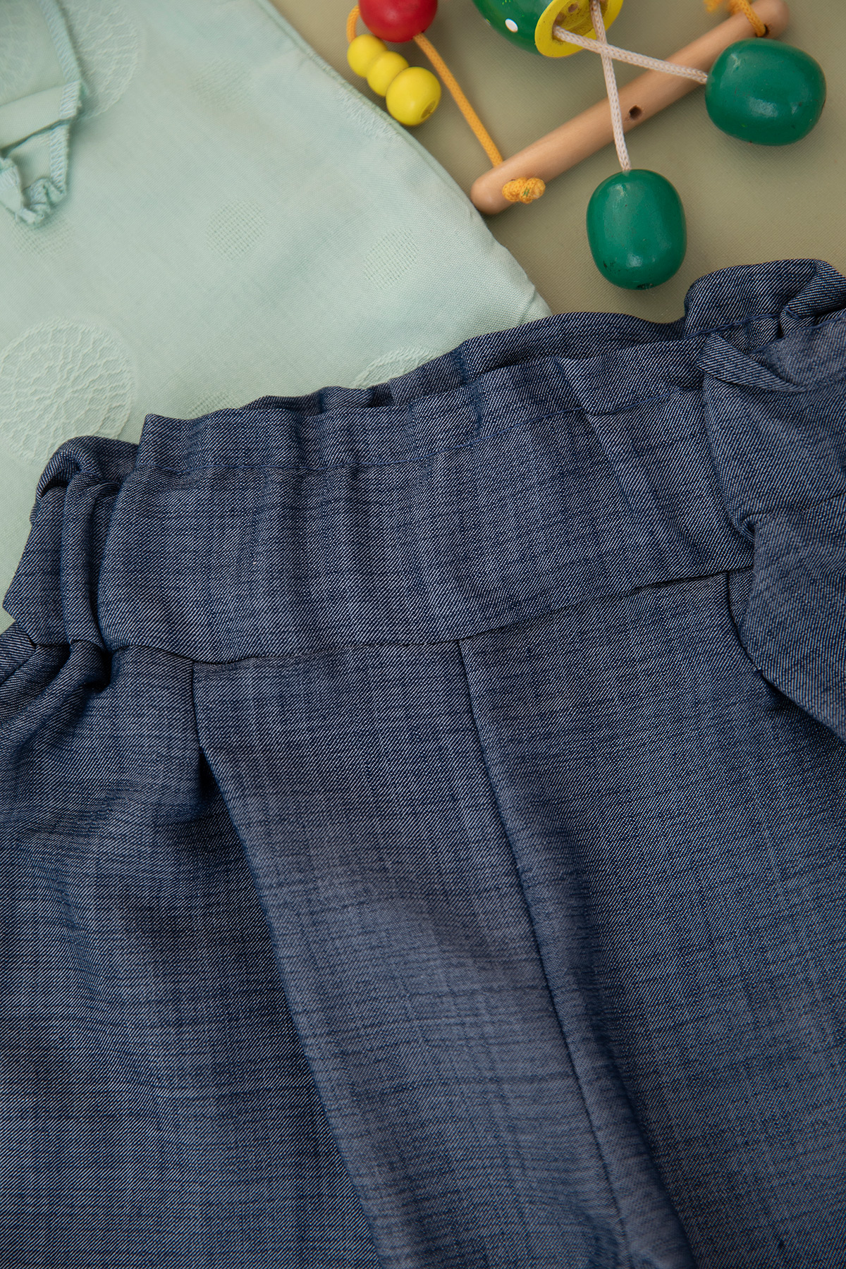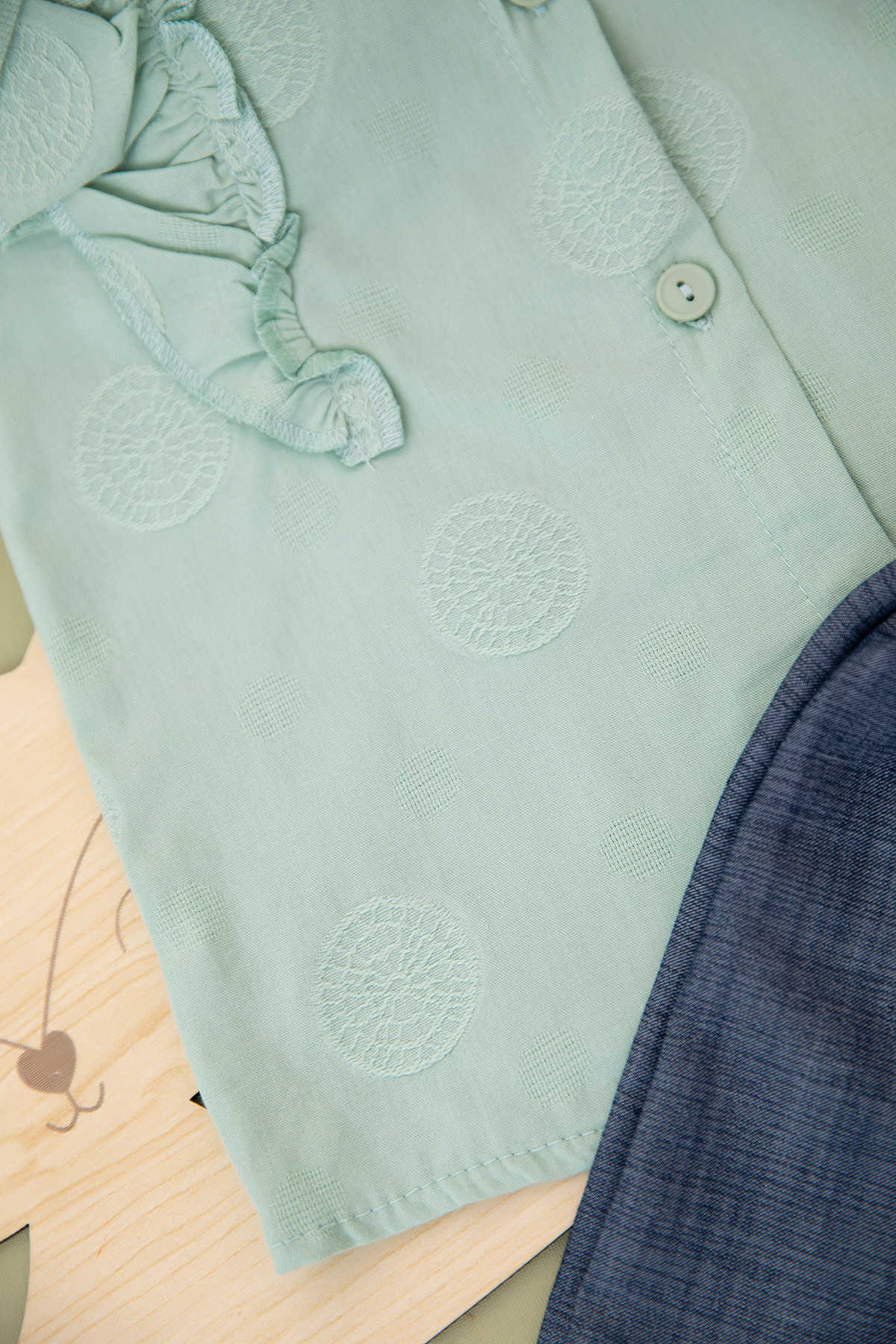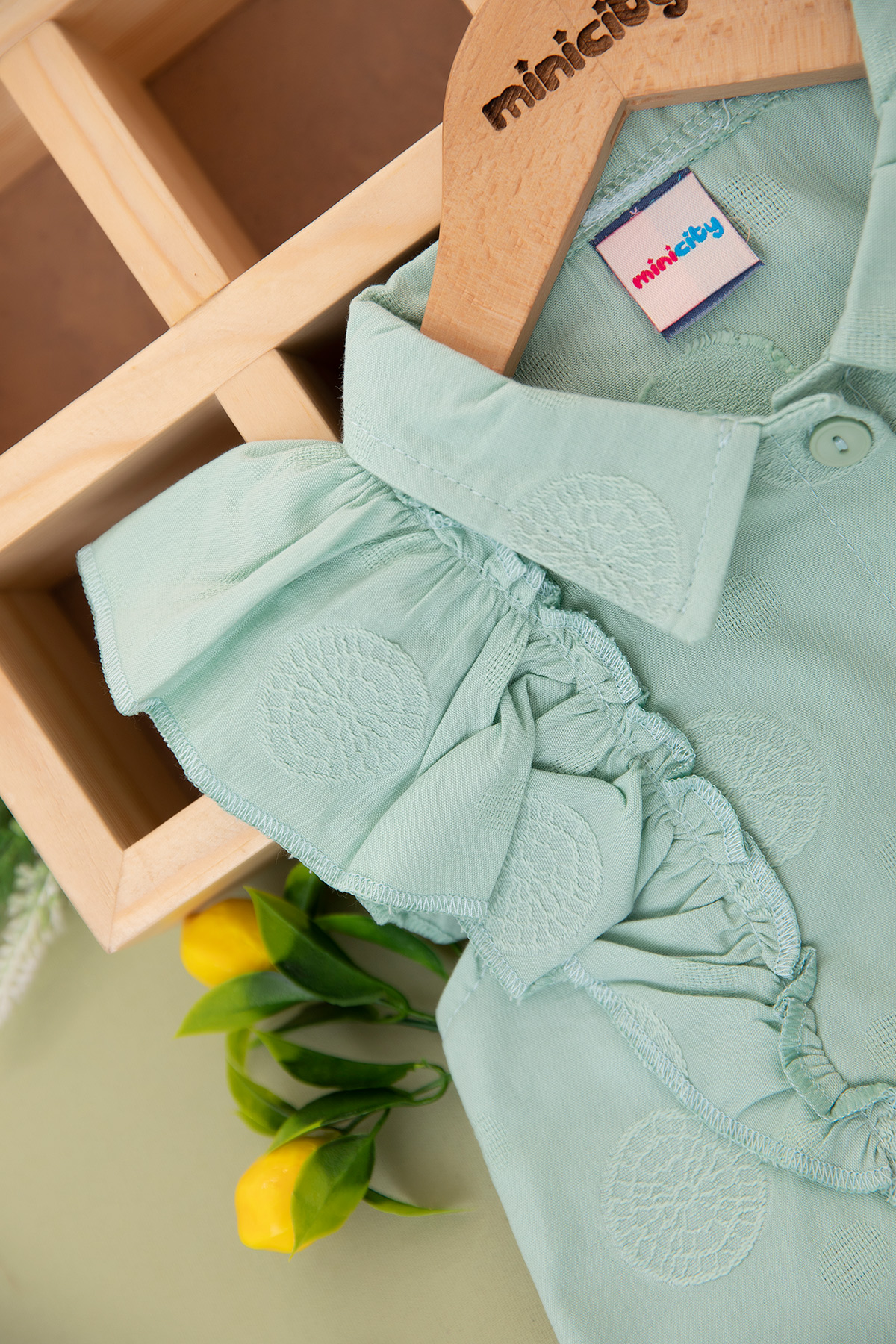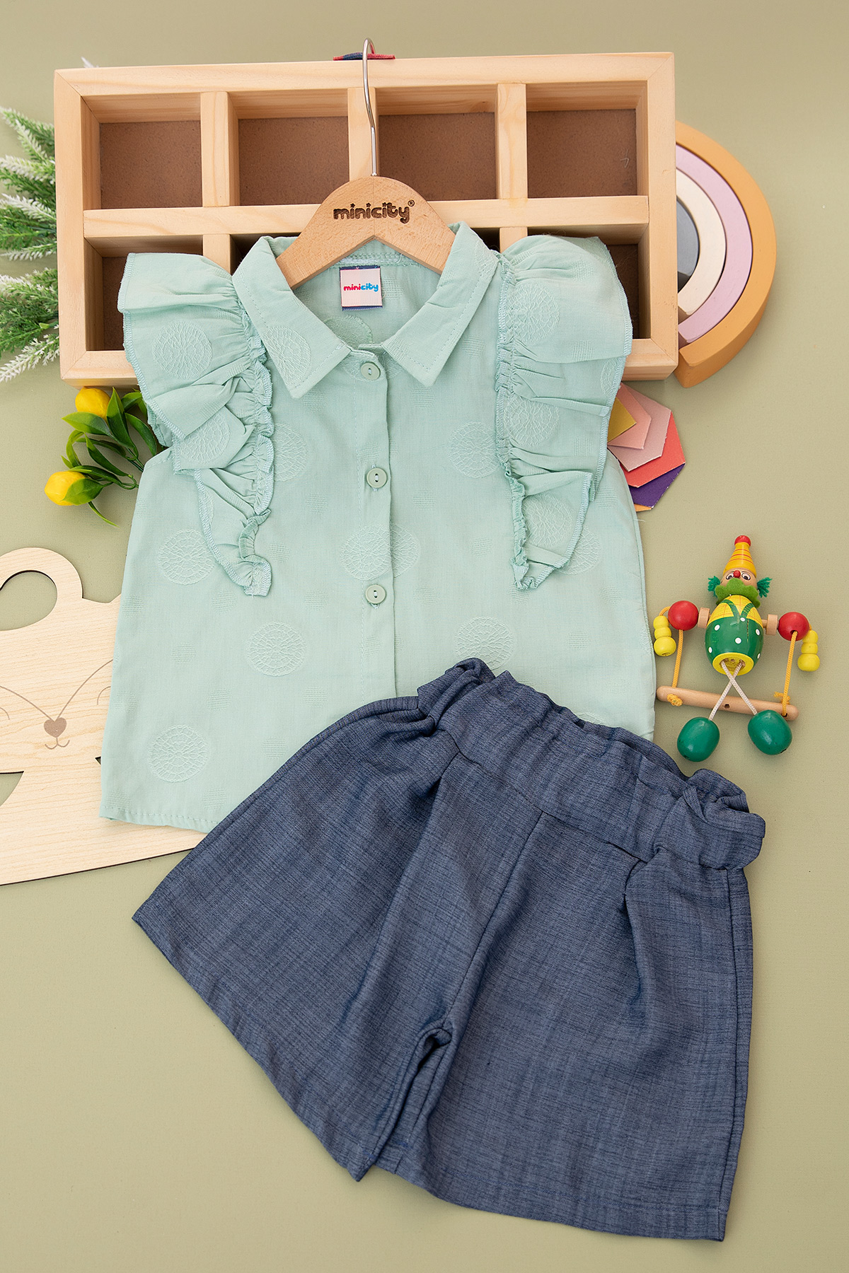 Kız Çocuk Fırfırlı Gömlek Jakar Şortlu Takım - 24317 (7-10 Yaş)
