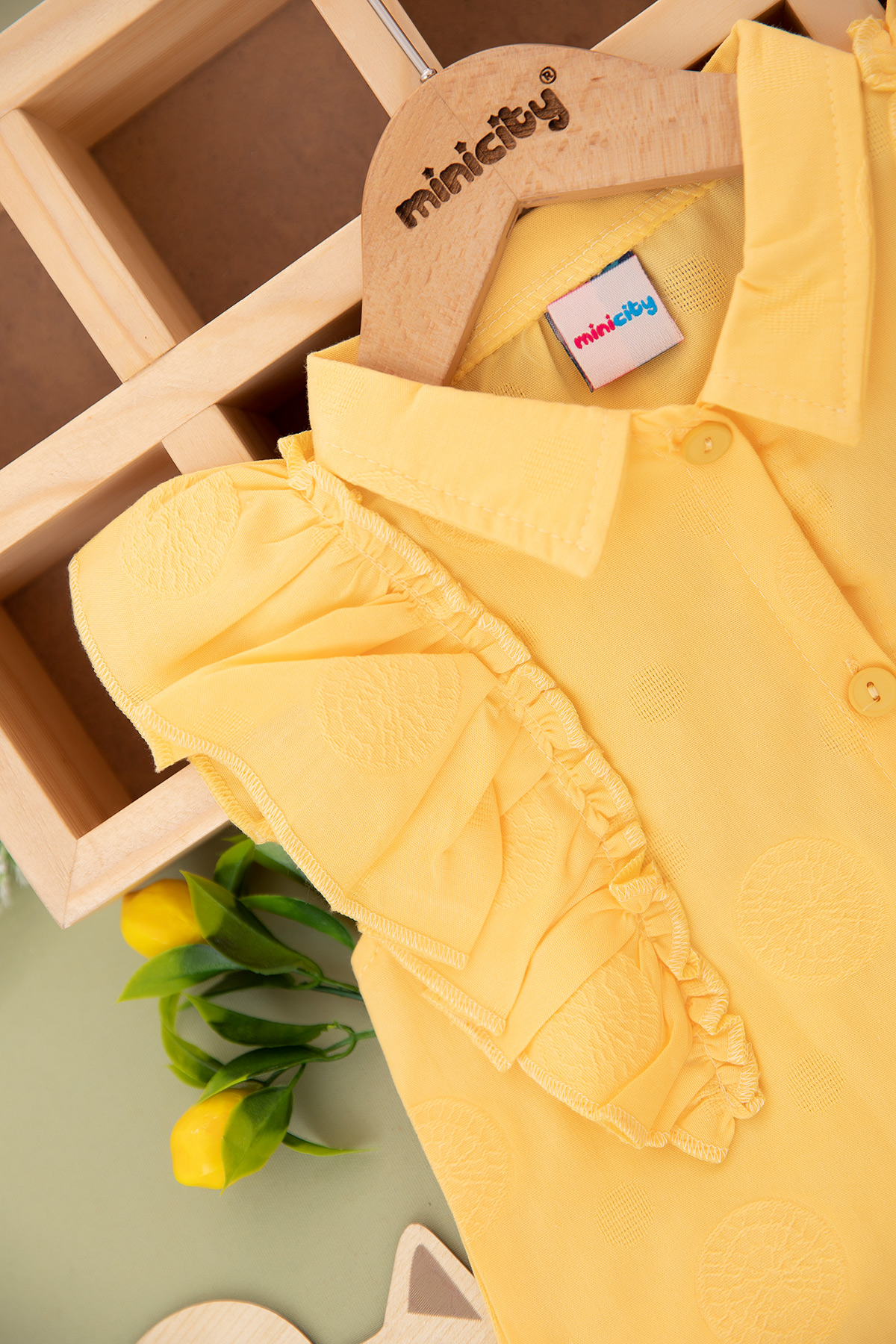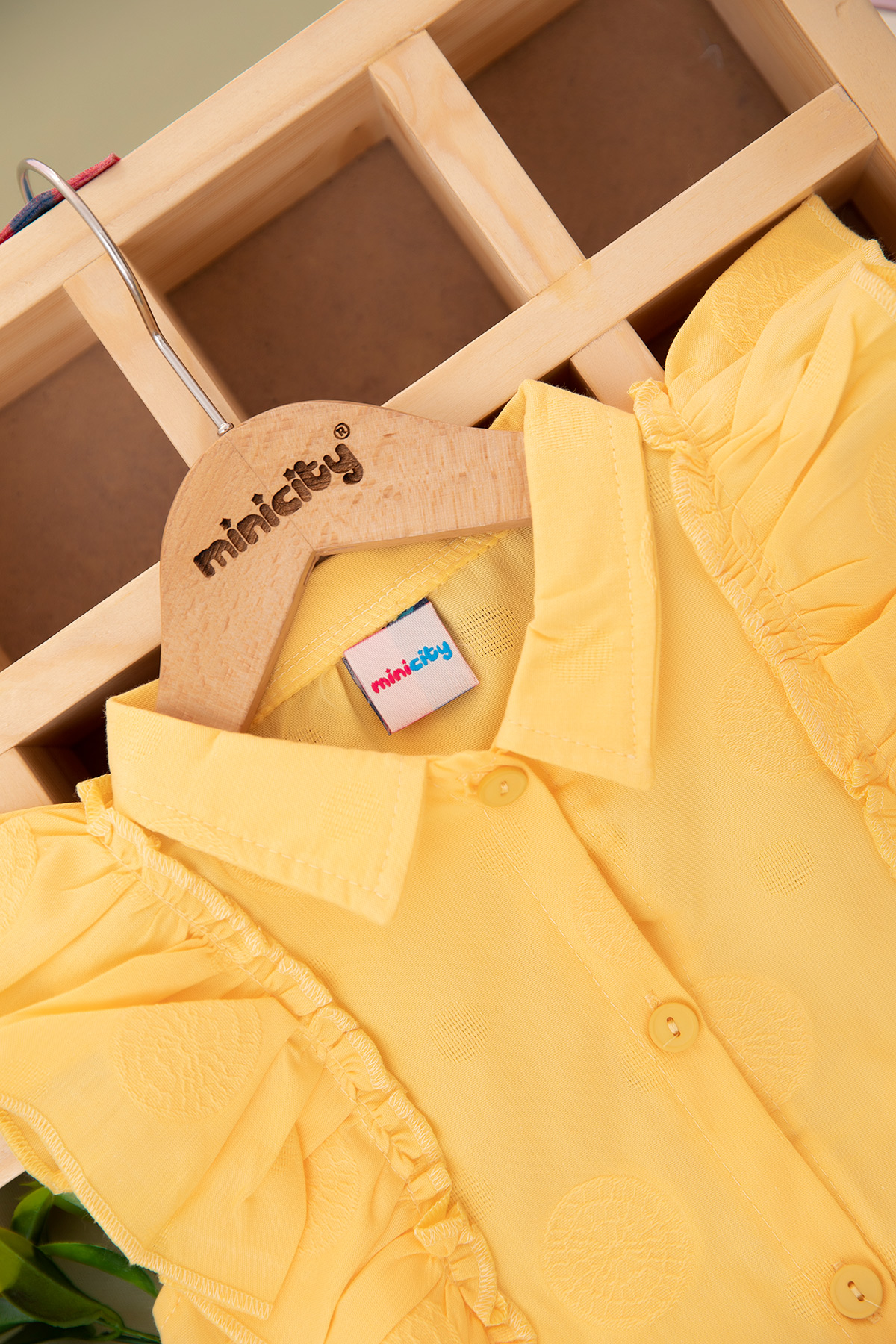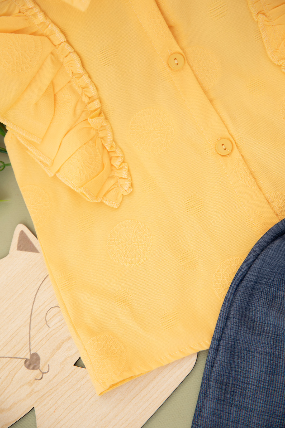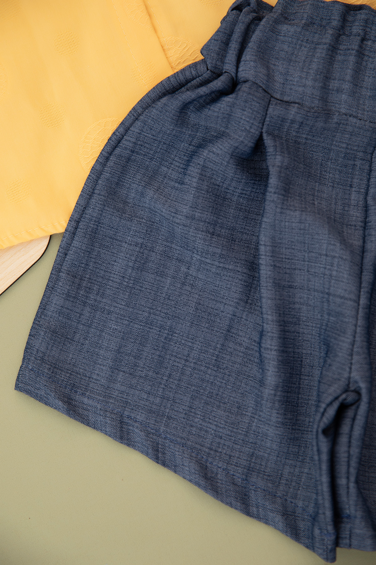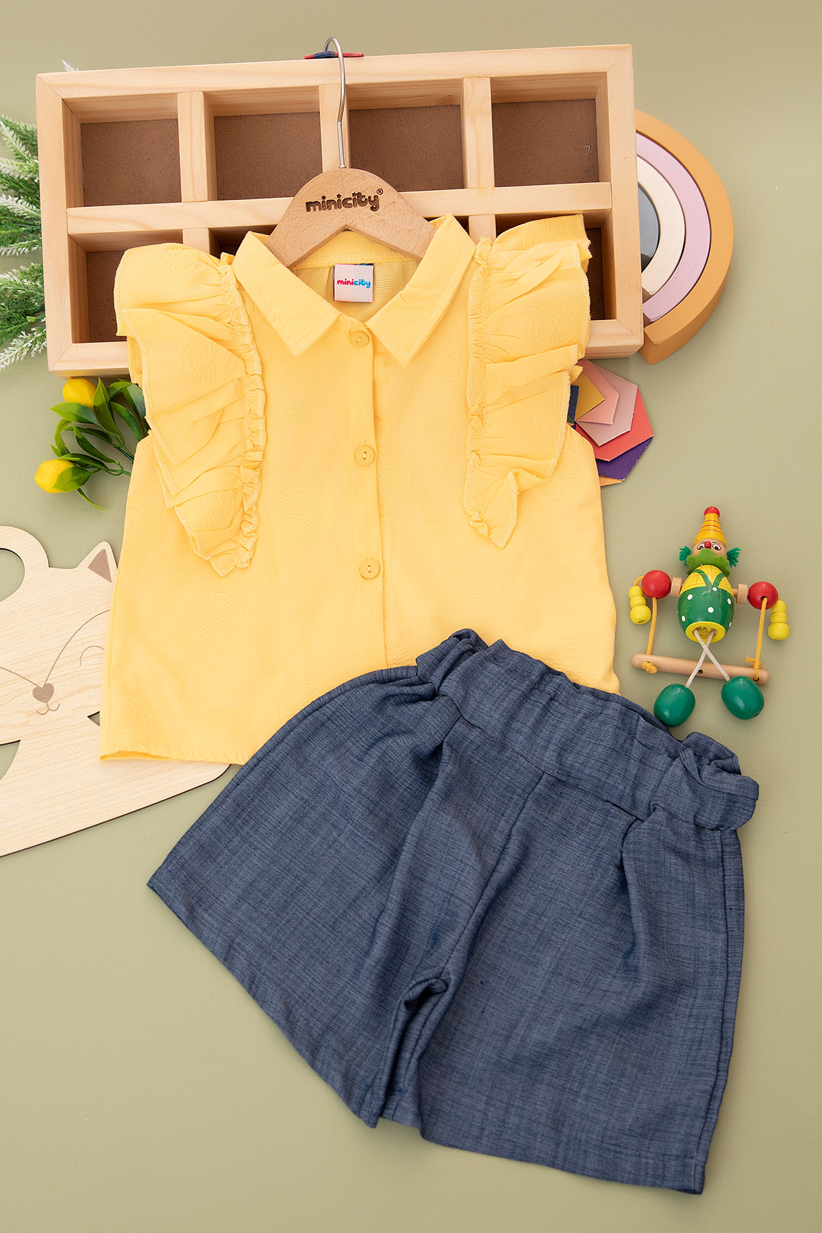 Kız Çocuk Fırfırlı Gömlek Jakar Şortlu Takım - 24317 (7-10 Yaş)