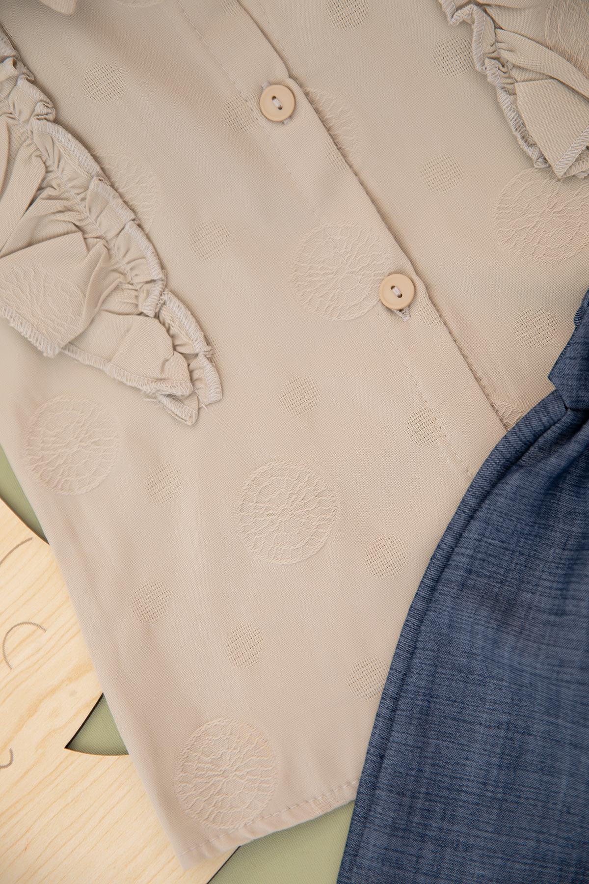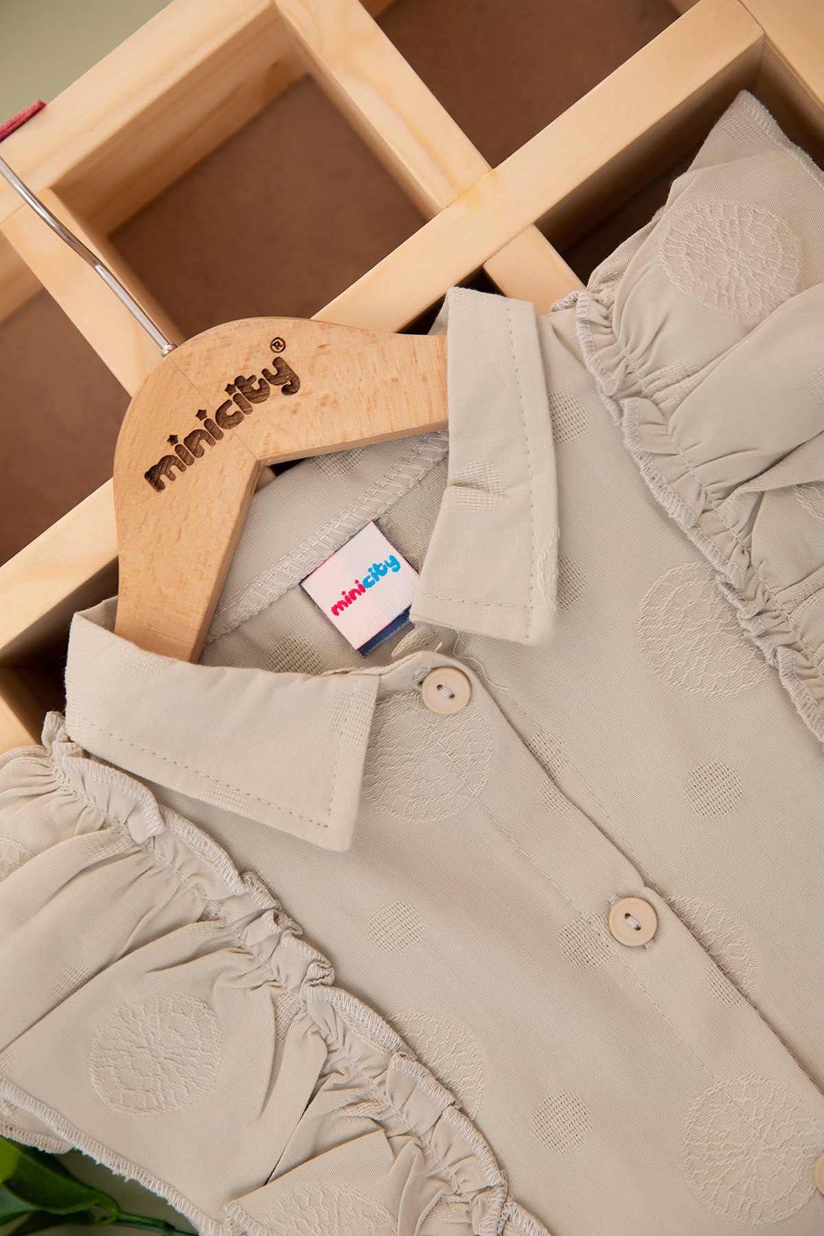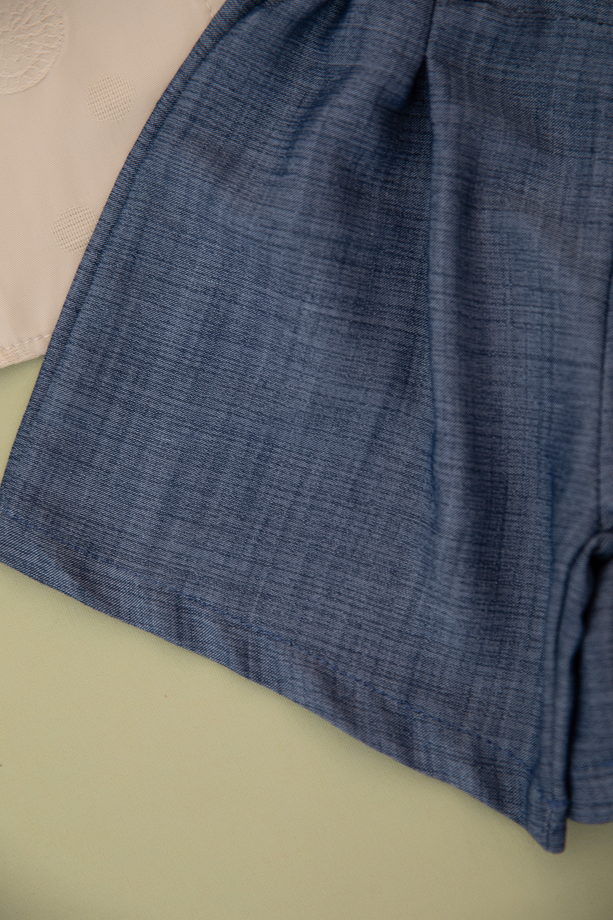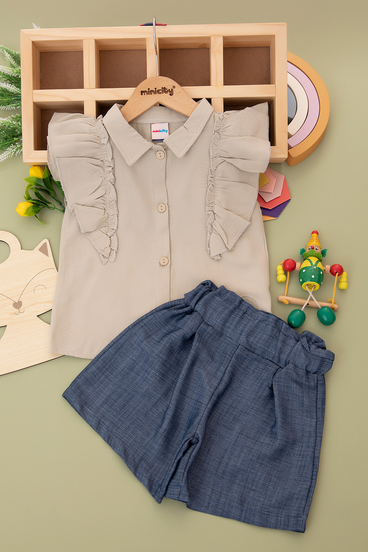 Kız Çocuk Fırfırlı Gömlek Jakar Şortlu Takım - 24317 (7-10 Yaş)