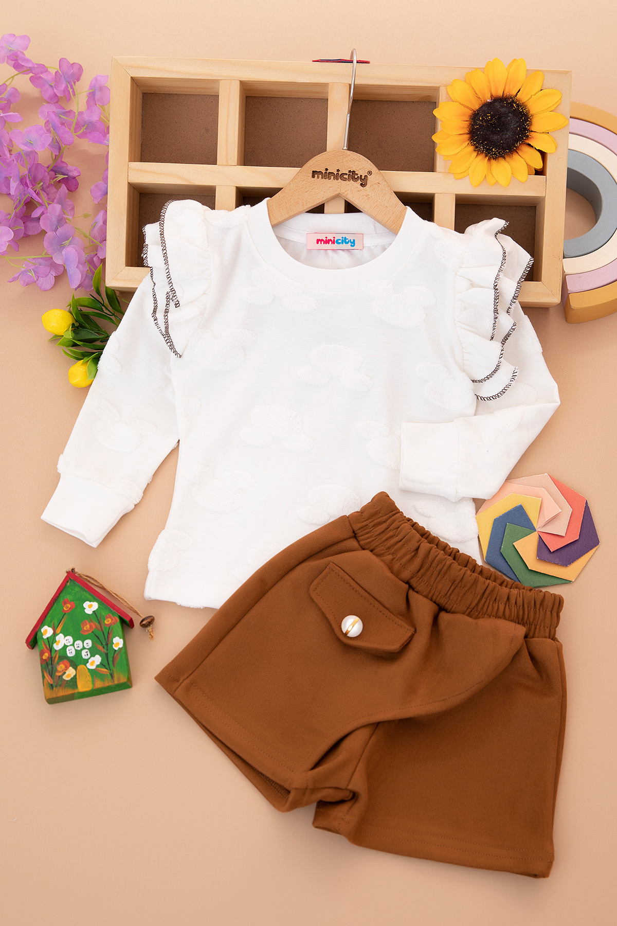 Kız Çocuk Fırfırlı Kadife Şort Etek Takım - 1007 (3-6 Yaş)