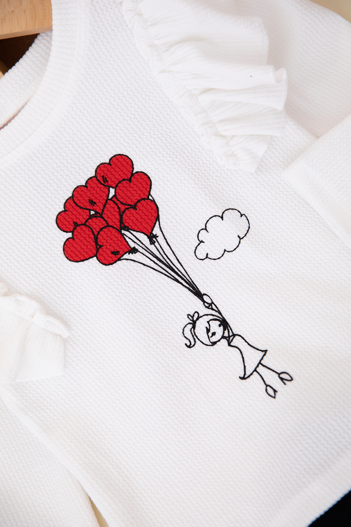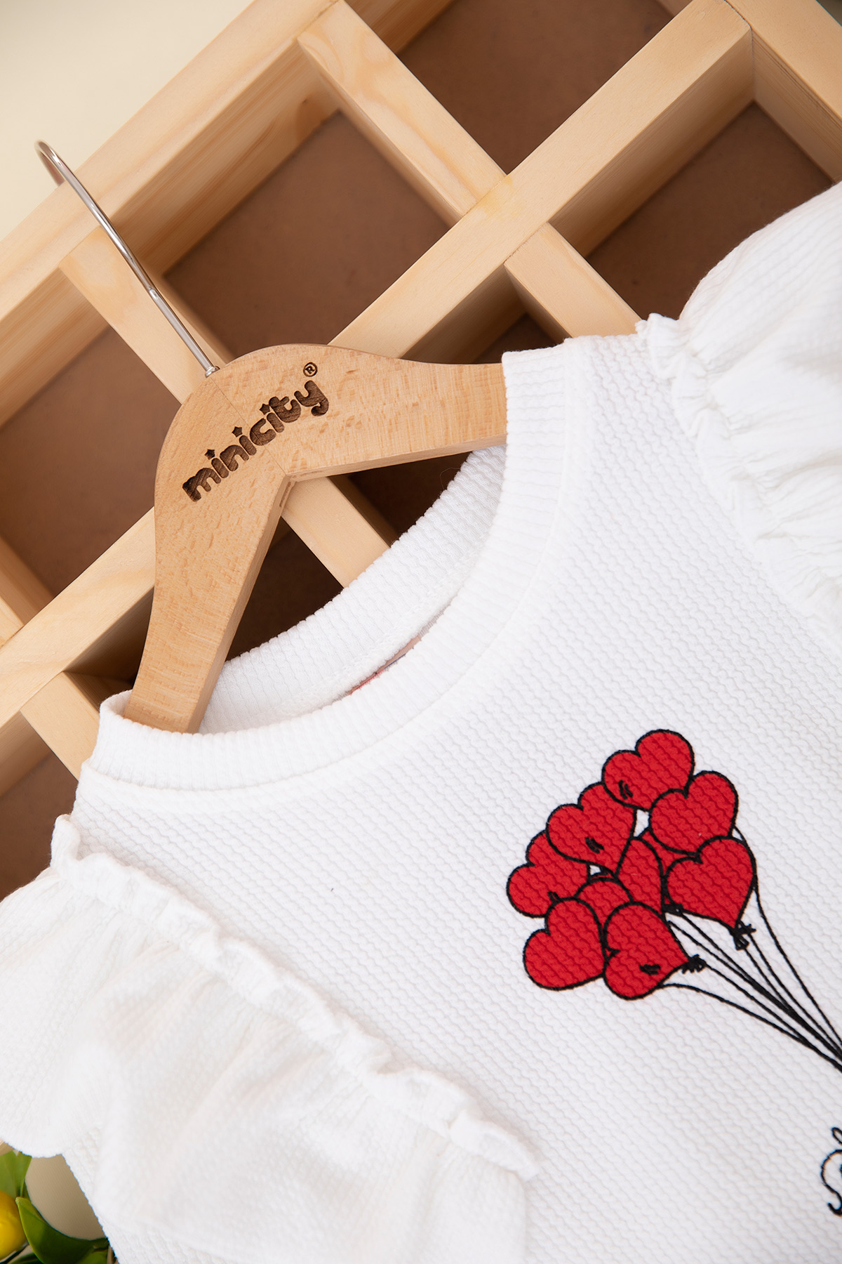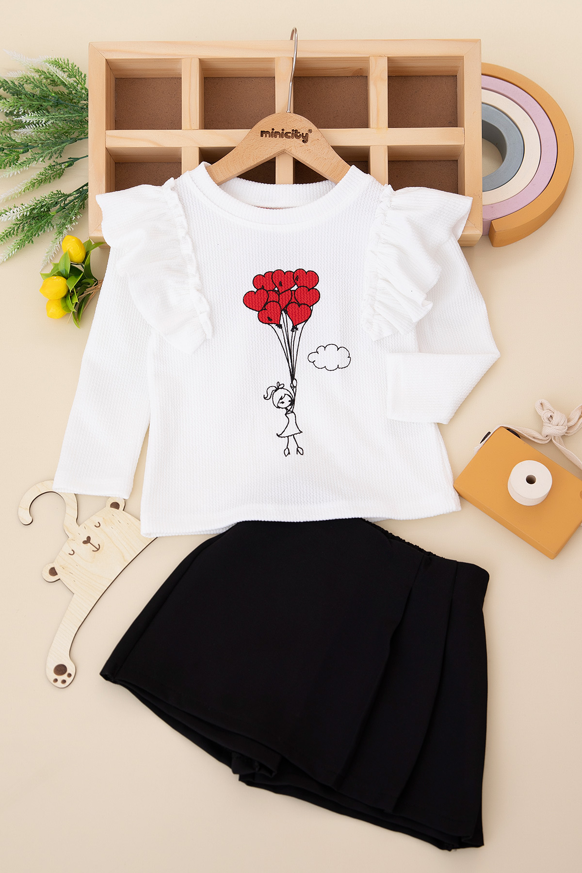 Kız Çocuk Fırfırlı Kalp Baskılı Takım - 10058 (3-7 Yaş)