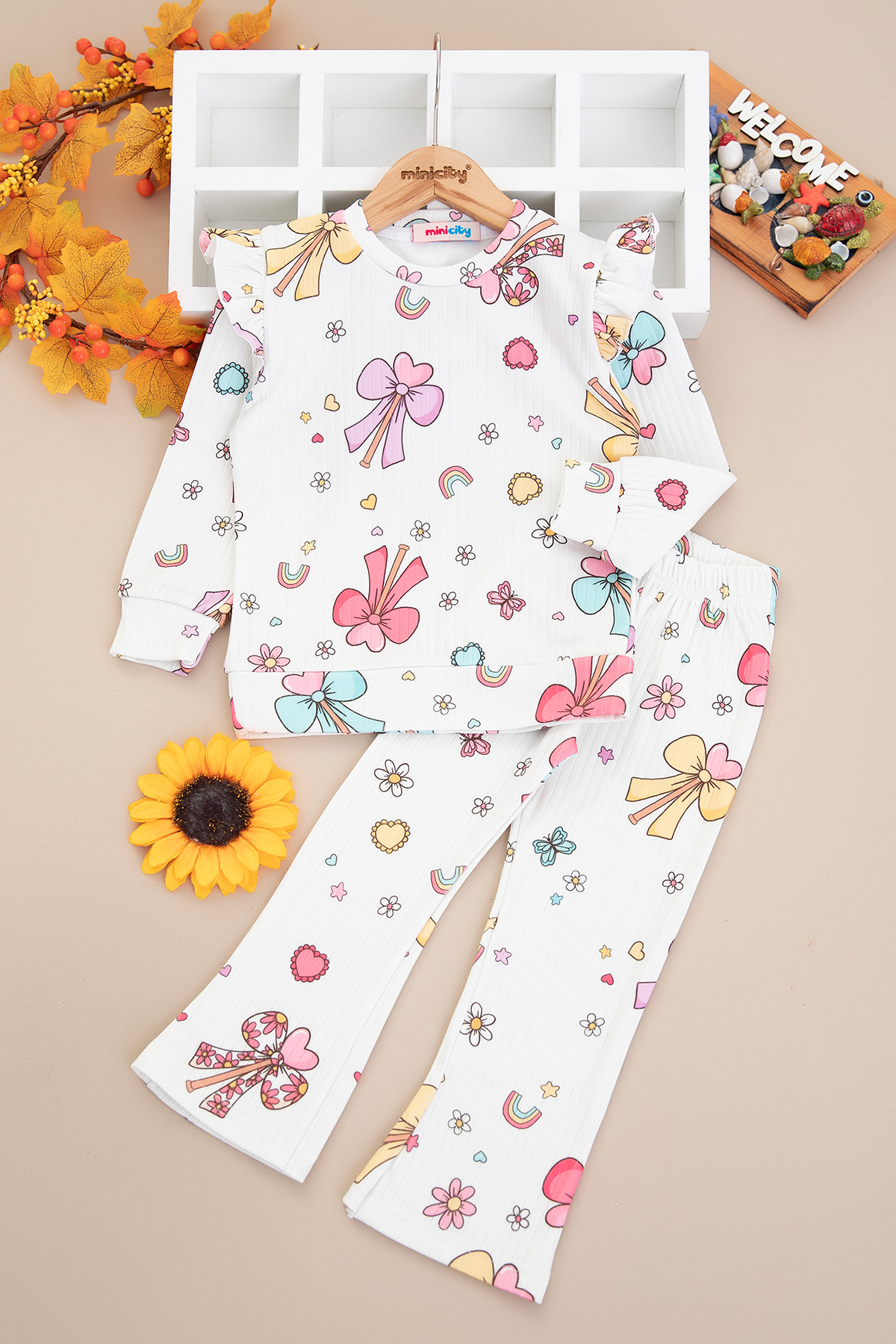 Kız Çocuk Fırfırlı Karakter Baskılı Şardonlu Takım (3-10 Yaş)