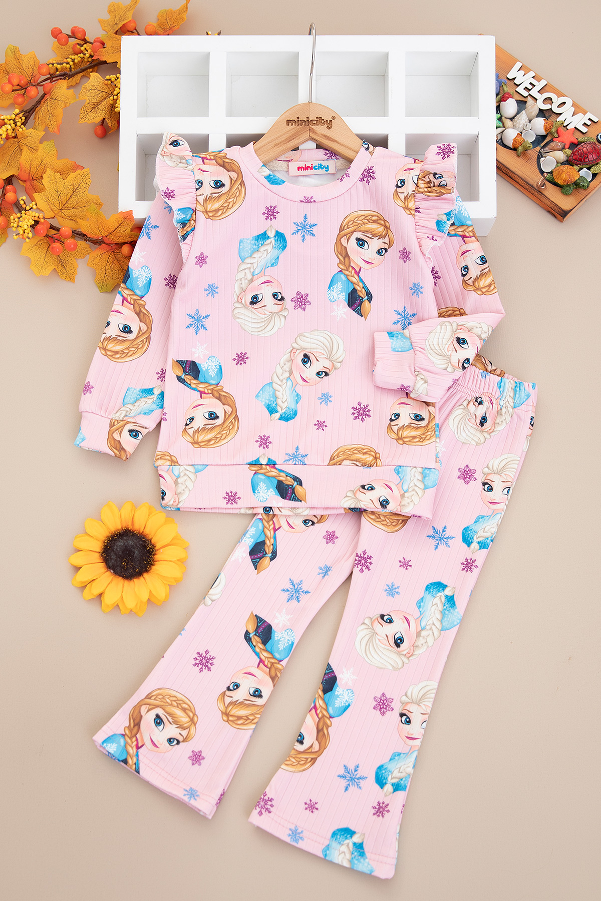 Kız Çocuk Fırfırlı Karakter Baskılı Şardonlu Takım (3-10 Yaş)
