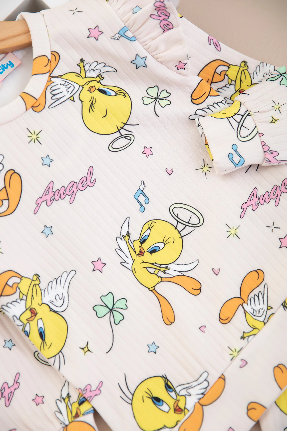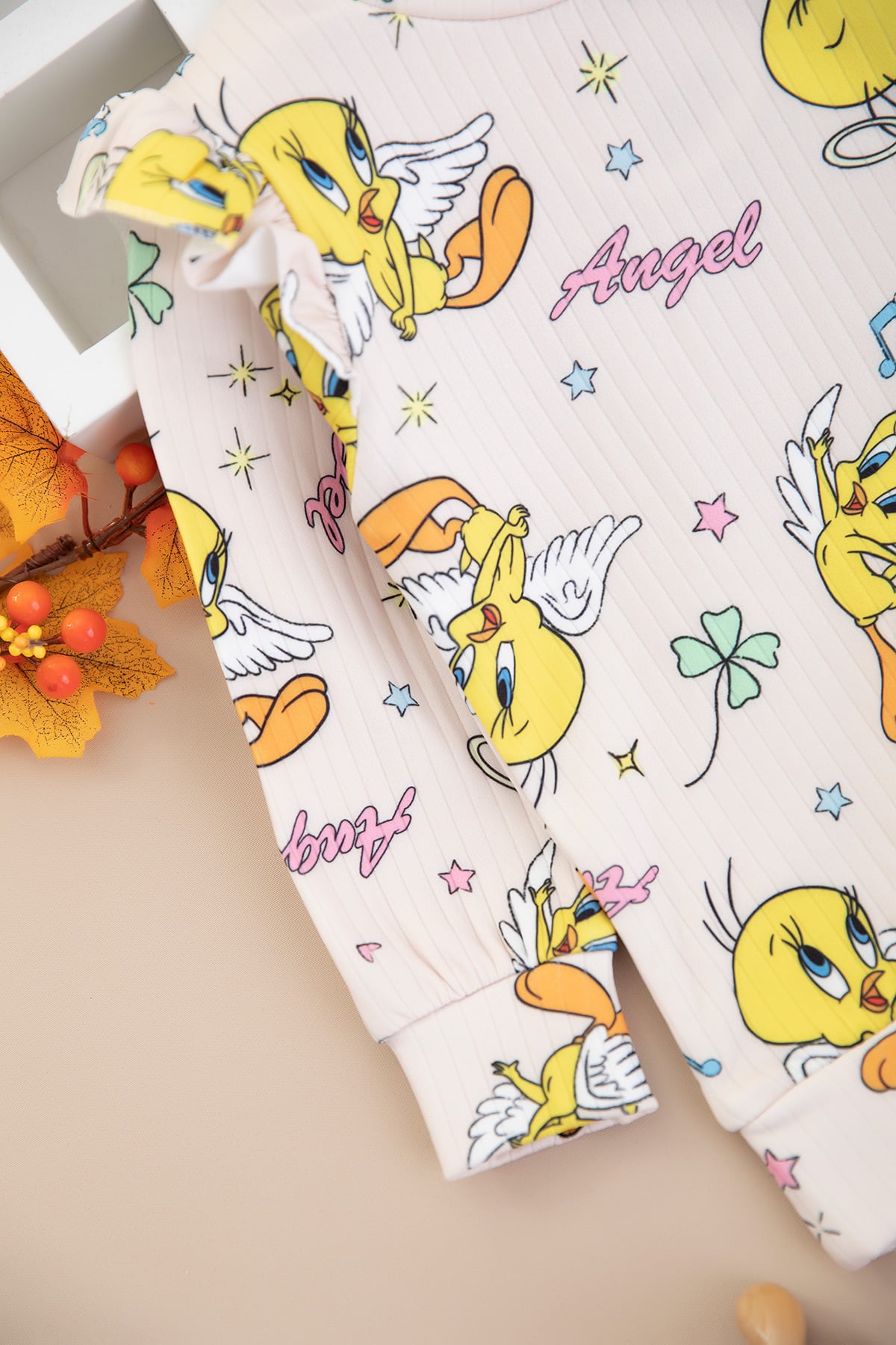 Kız Çocuk Fırfırlı Karakter Baskılı Şardonlu Takım (3-10 Yaş)
