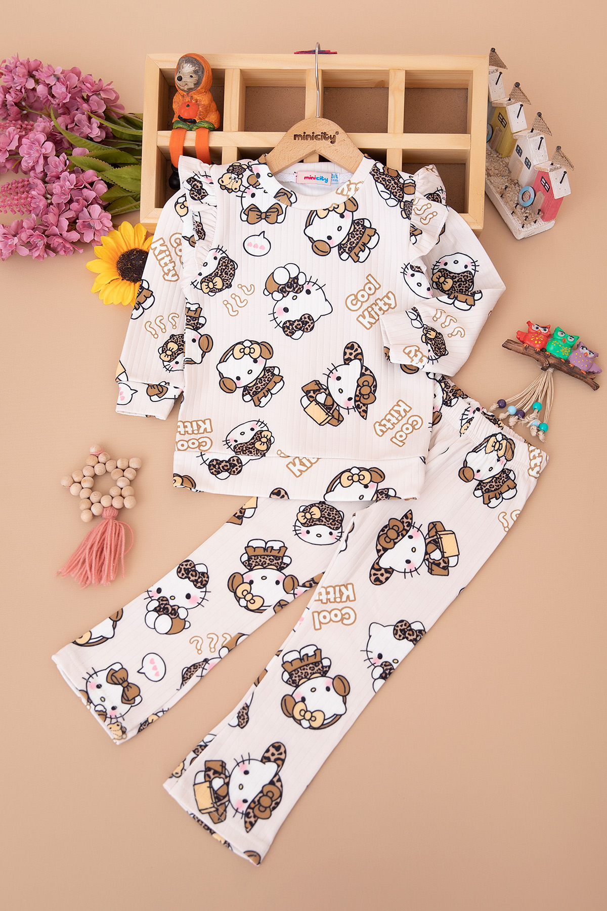 Kız Çocuk Fırfırlı Karakter Baskılı Şardonlu Takım (3-10 Yaş)