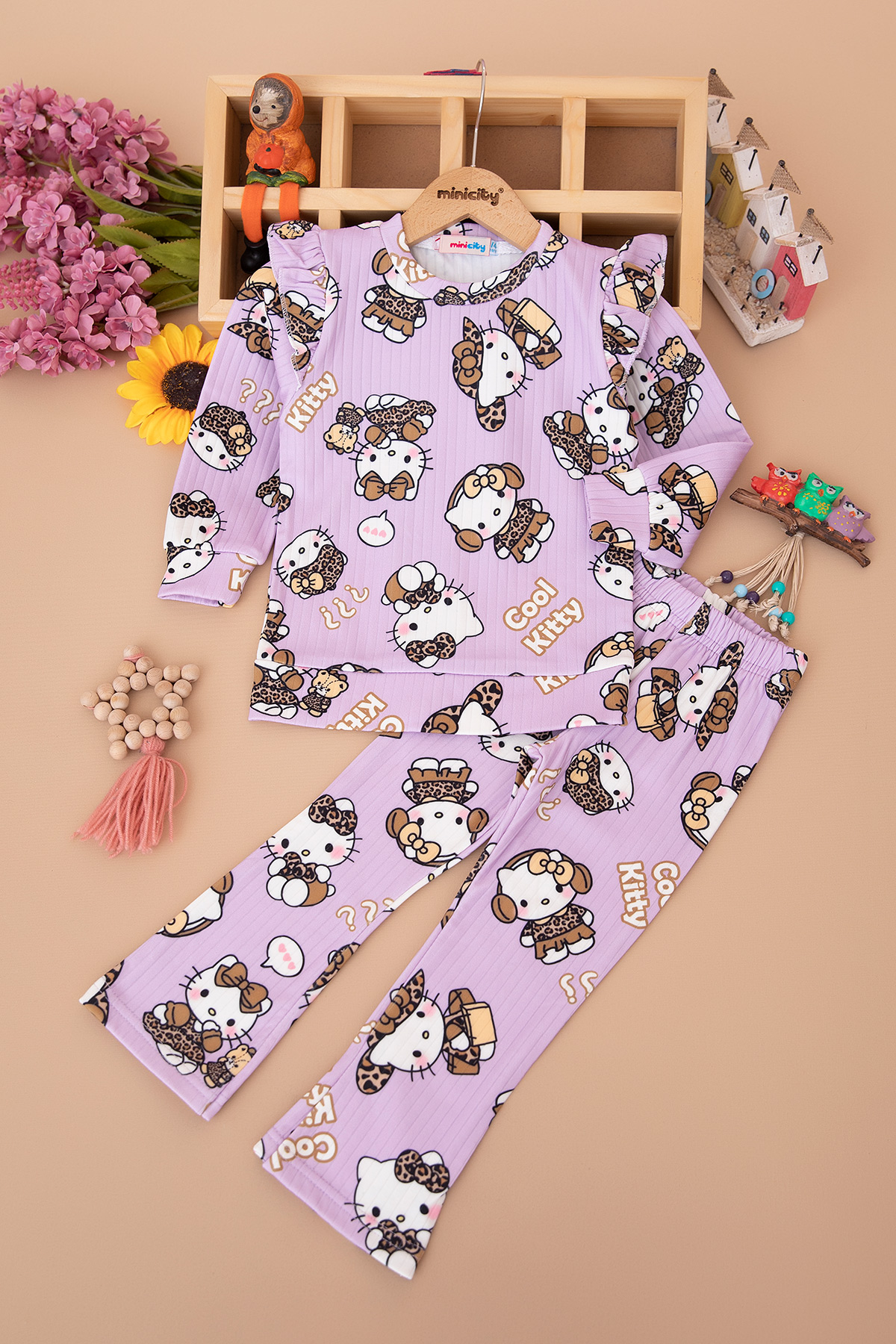 Kız Çocuk Fırfırlı Karakter Baskılı Şardonlu Takım (3-10 Yaş)