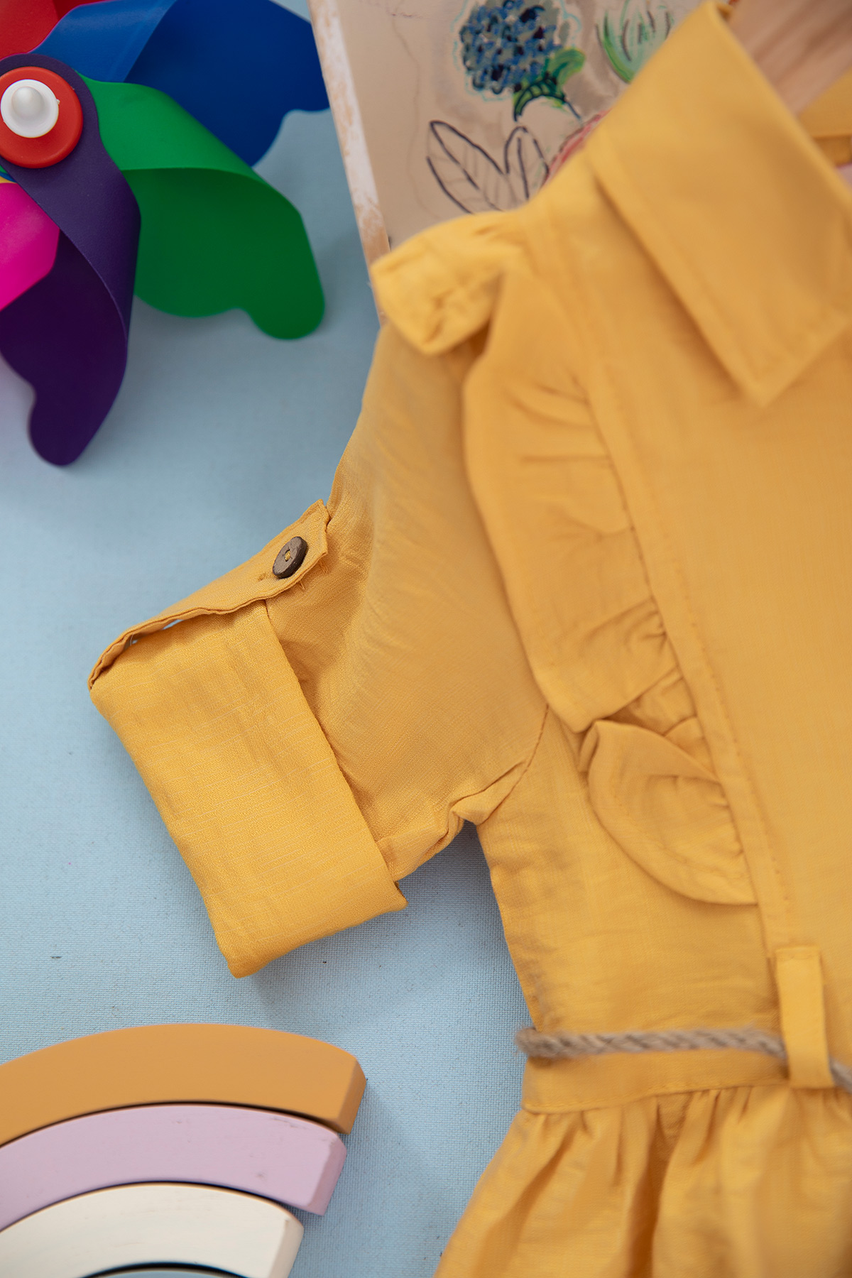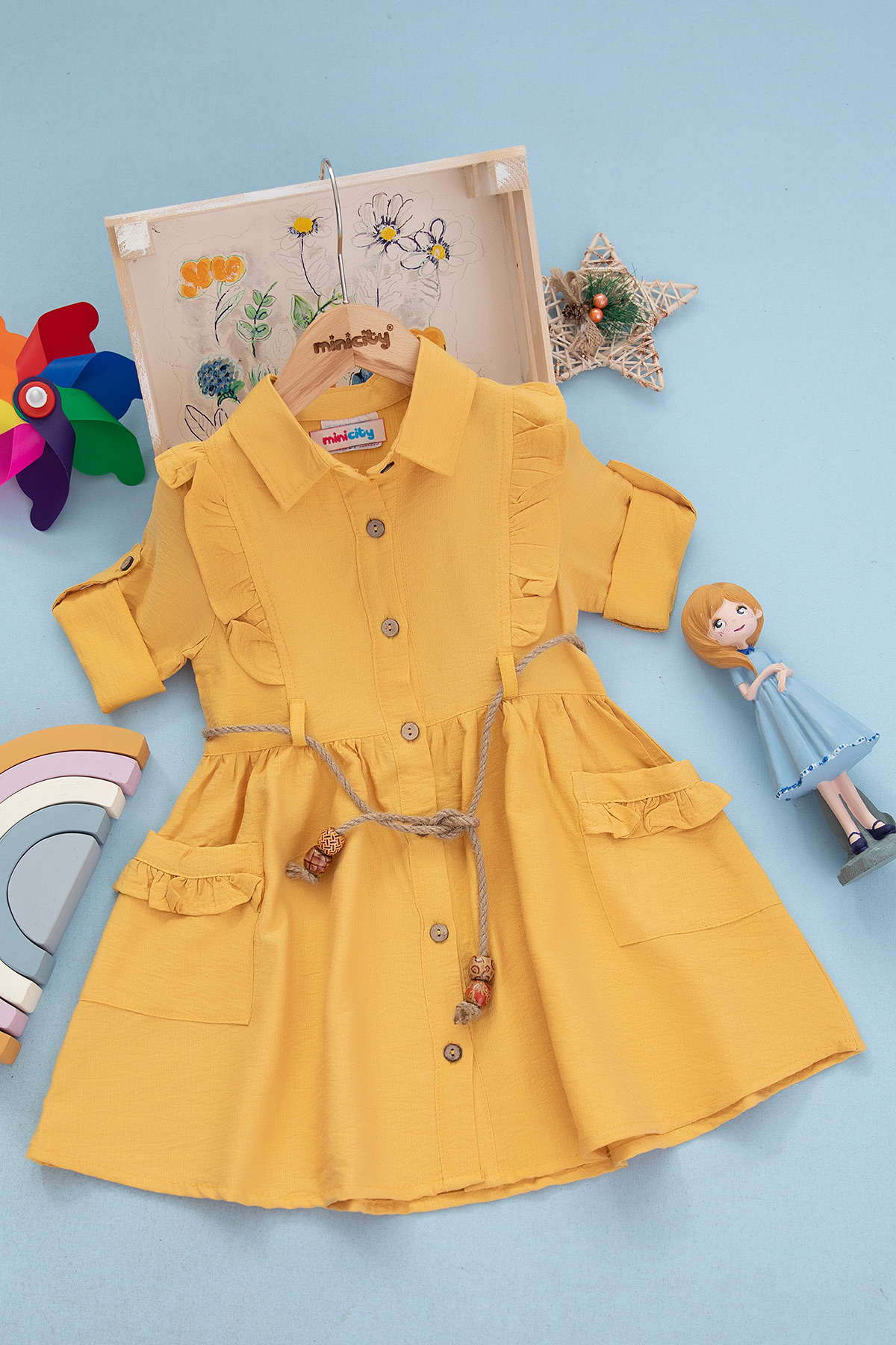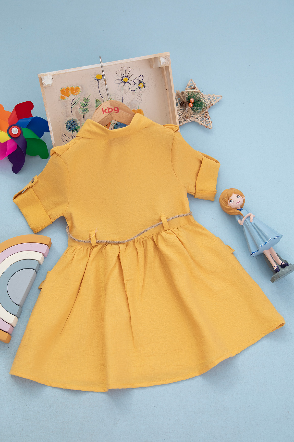 Kız Çocuk Fırfırlı Katlama Kol Elbise - 0467 (2-5 Yaş)