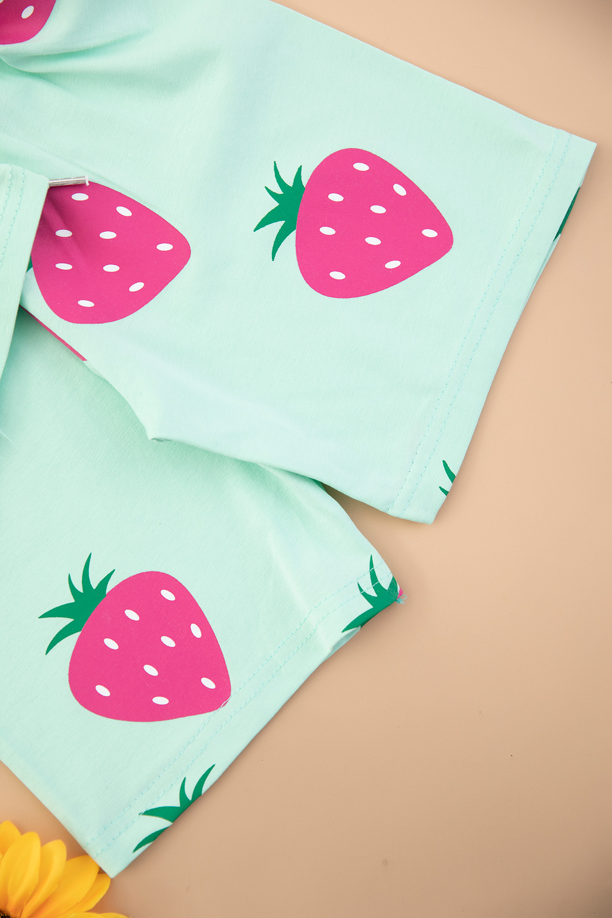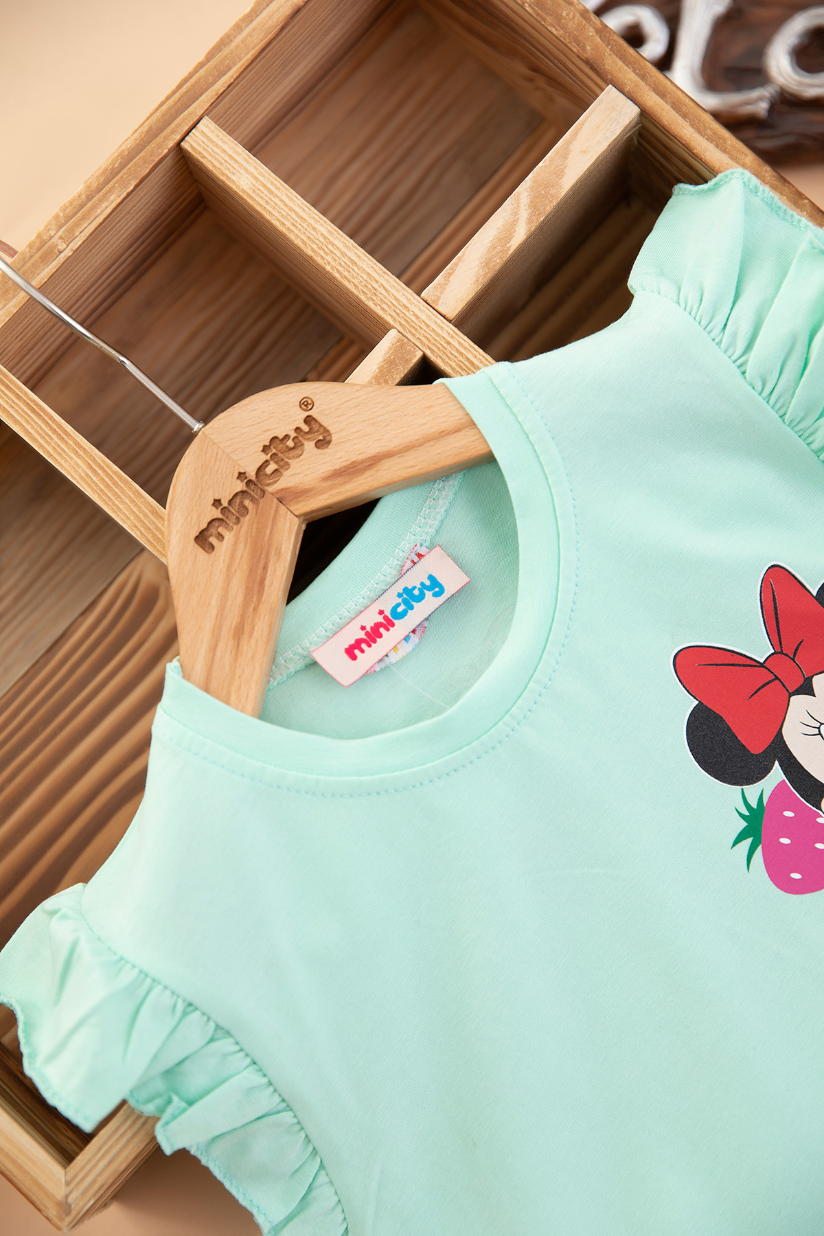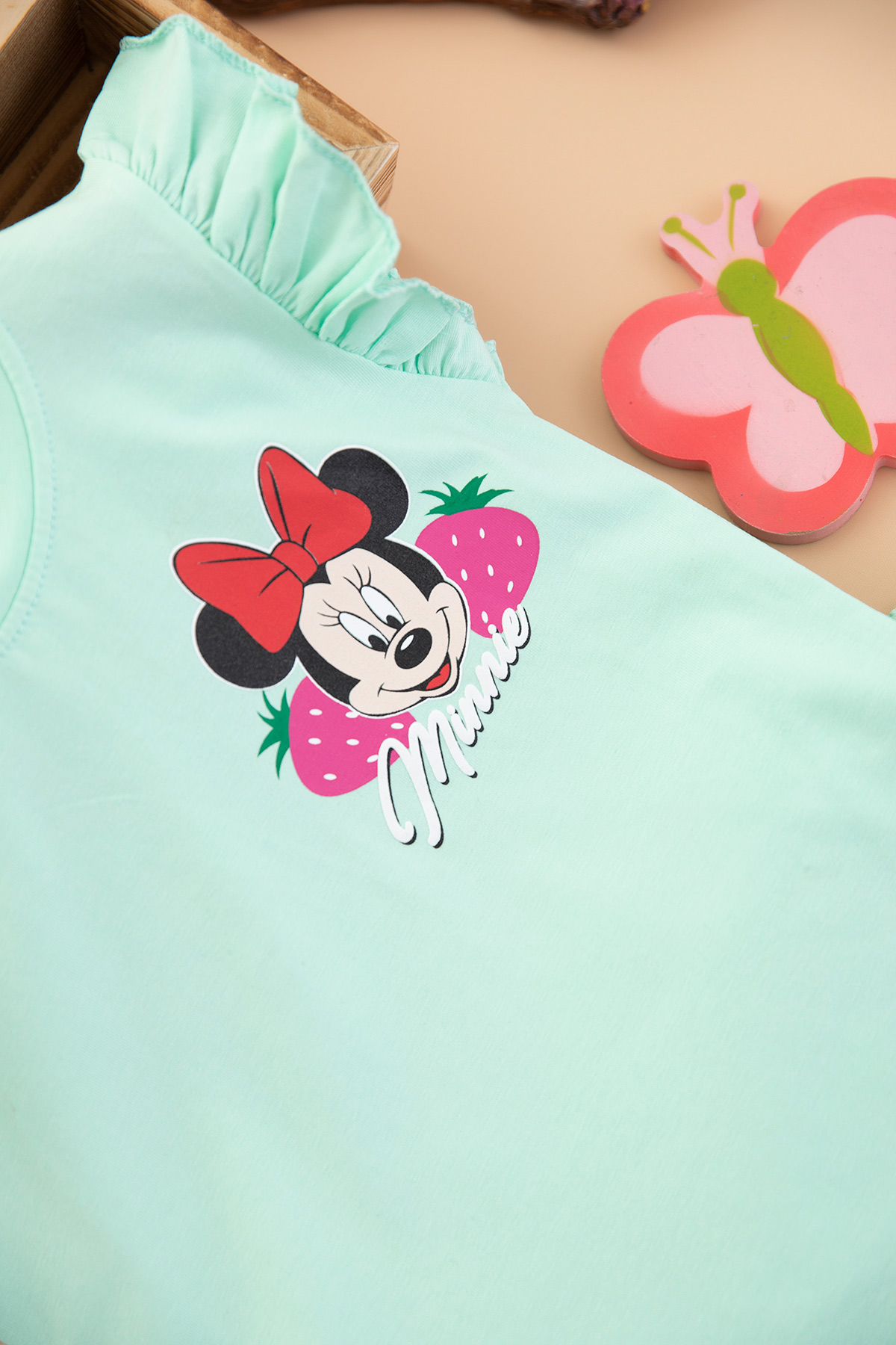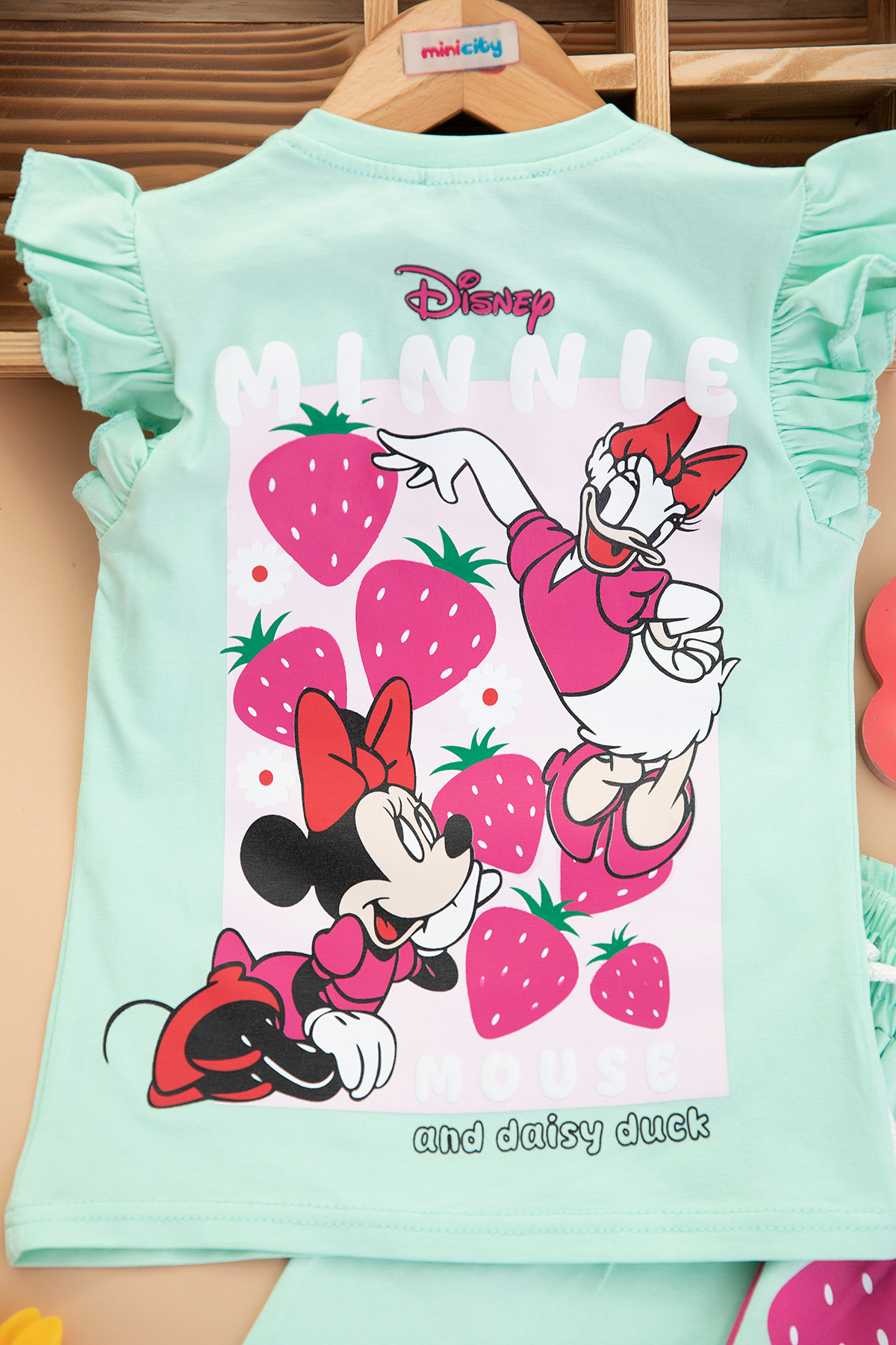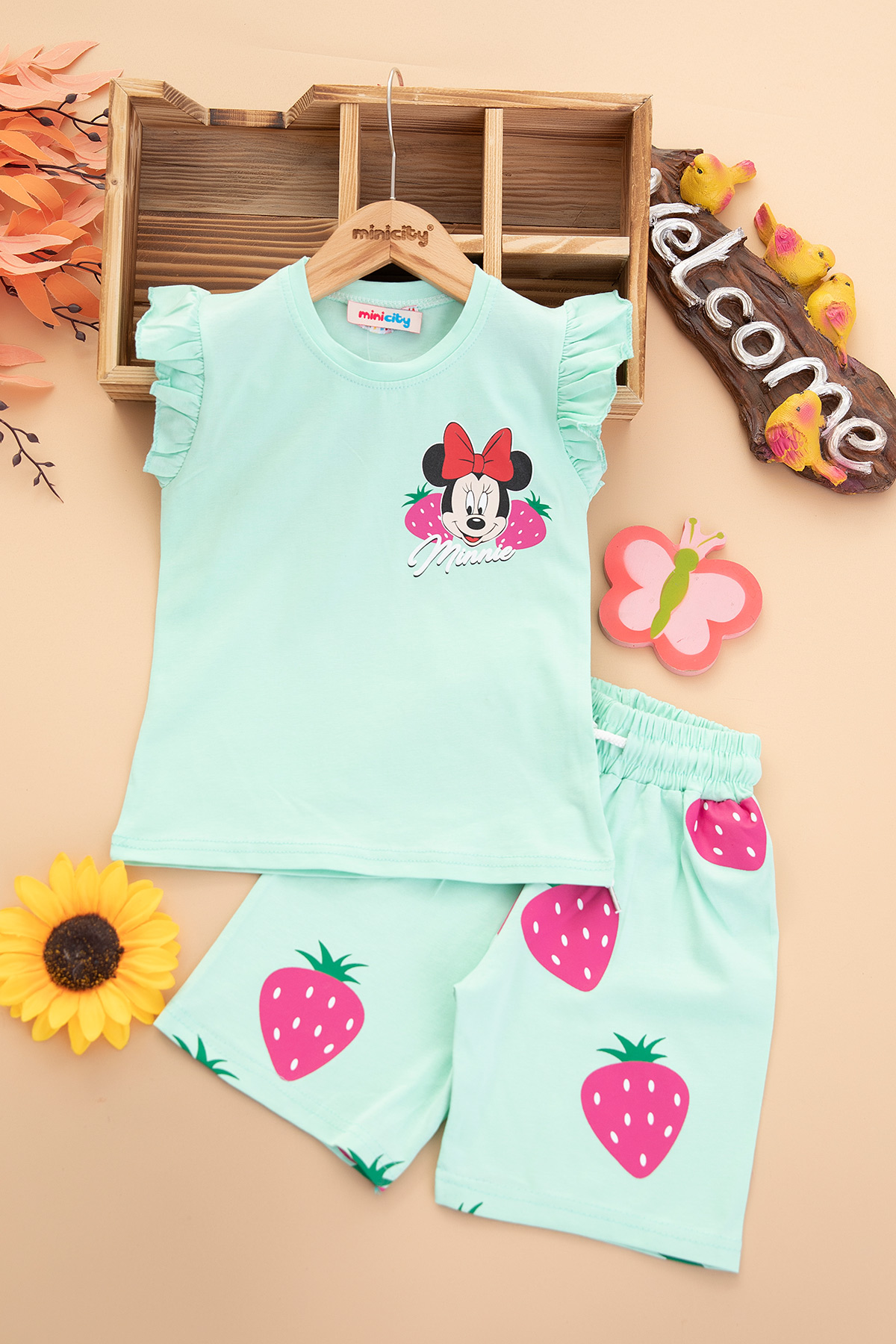 Kız Çocuk Fırfırlı Minnie Çilek Baskılı Şortlu Takım (3-10 Yaş)