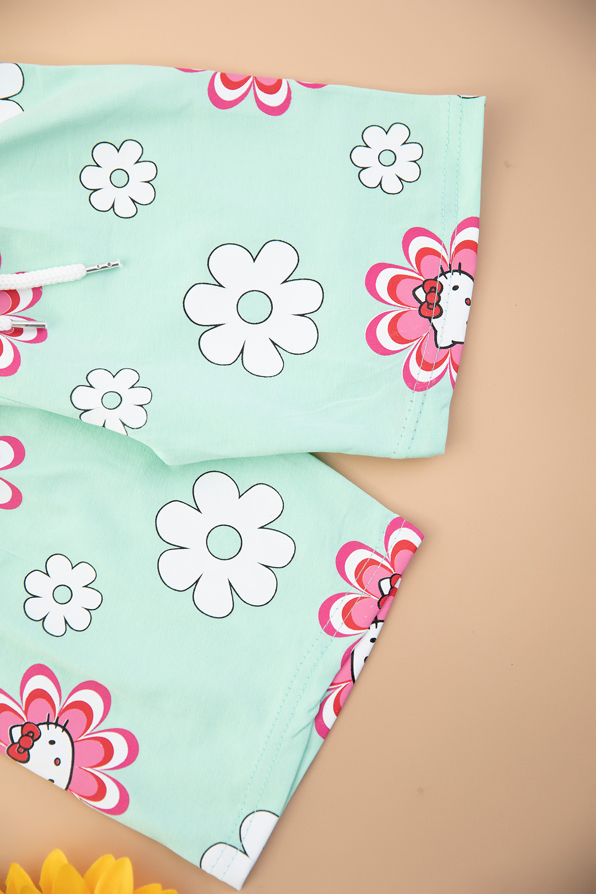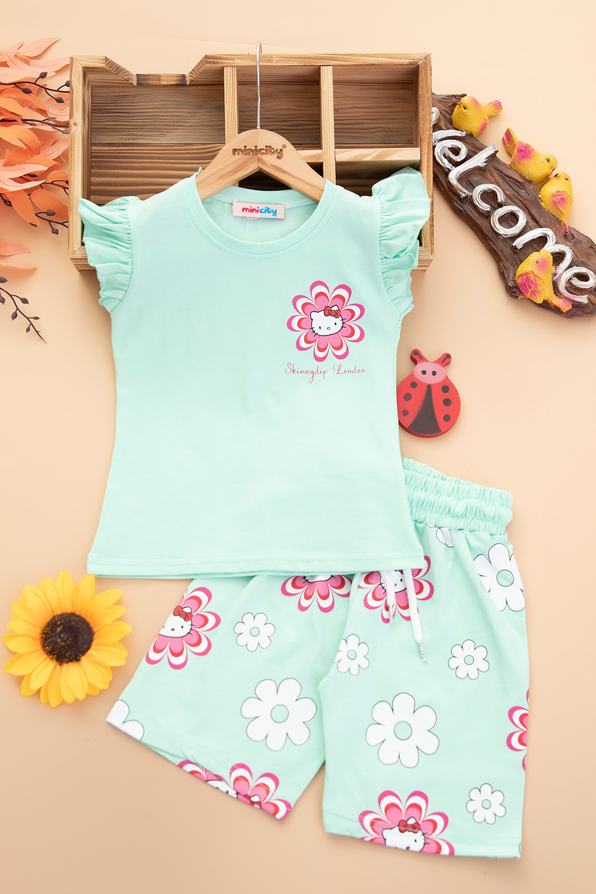 Kız Çocuk Fırfırlı Papatya Baskılı Şortlu Takım (3-10 Yaş)