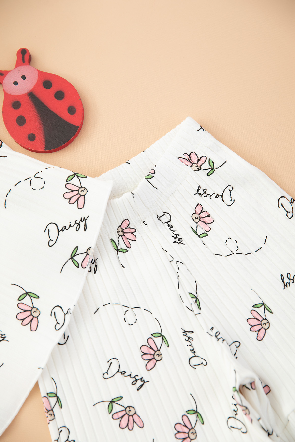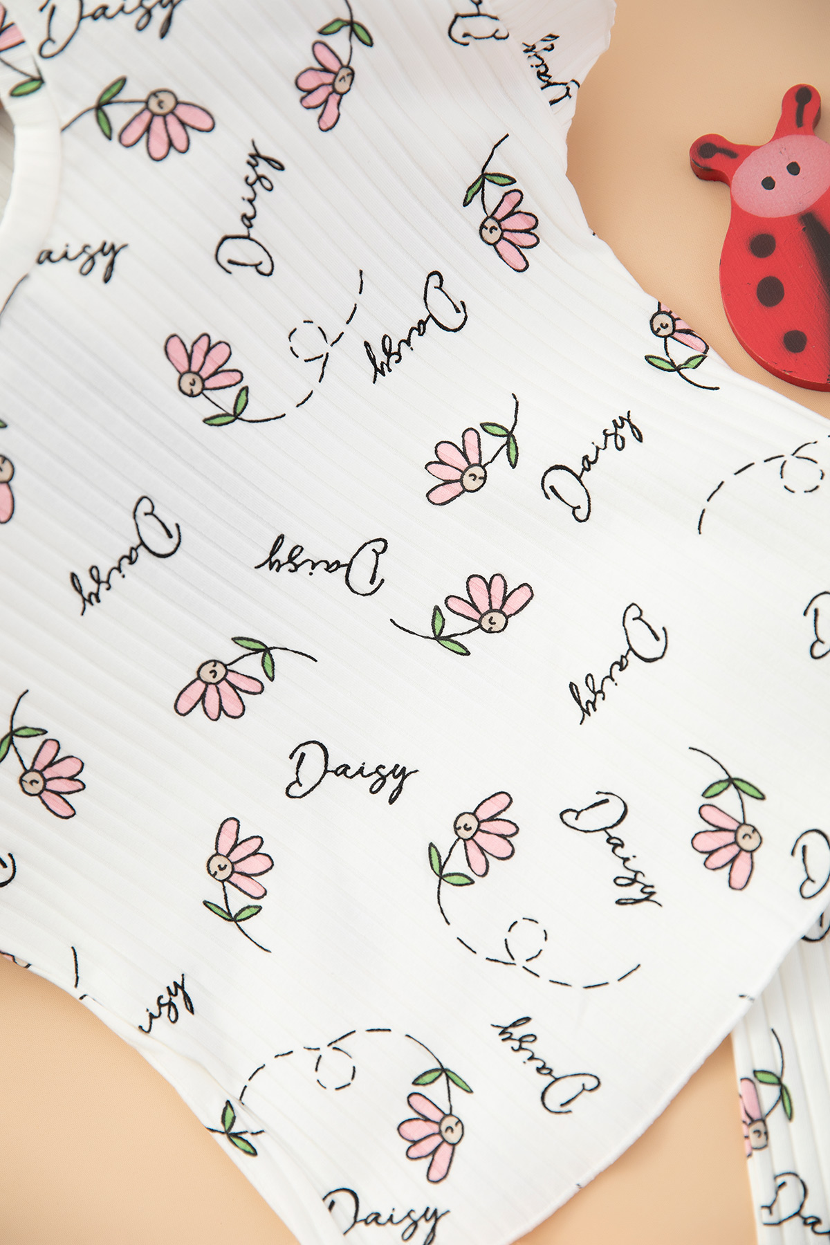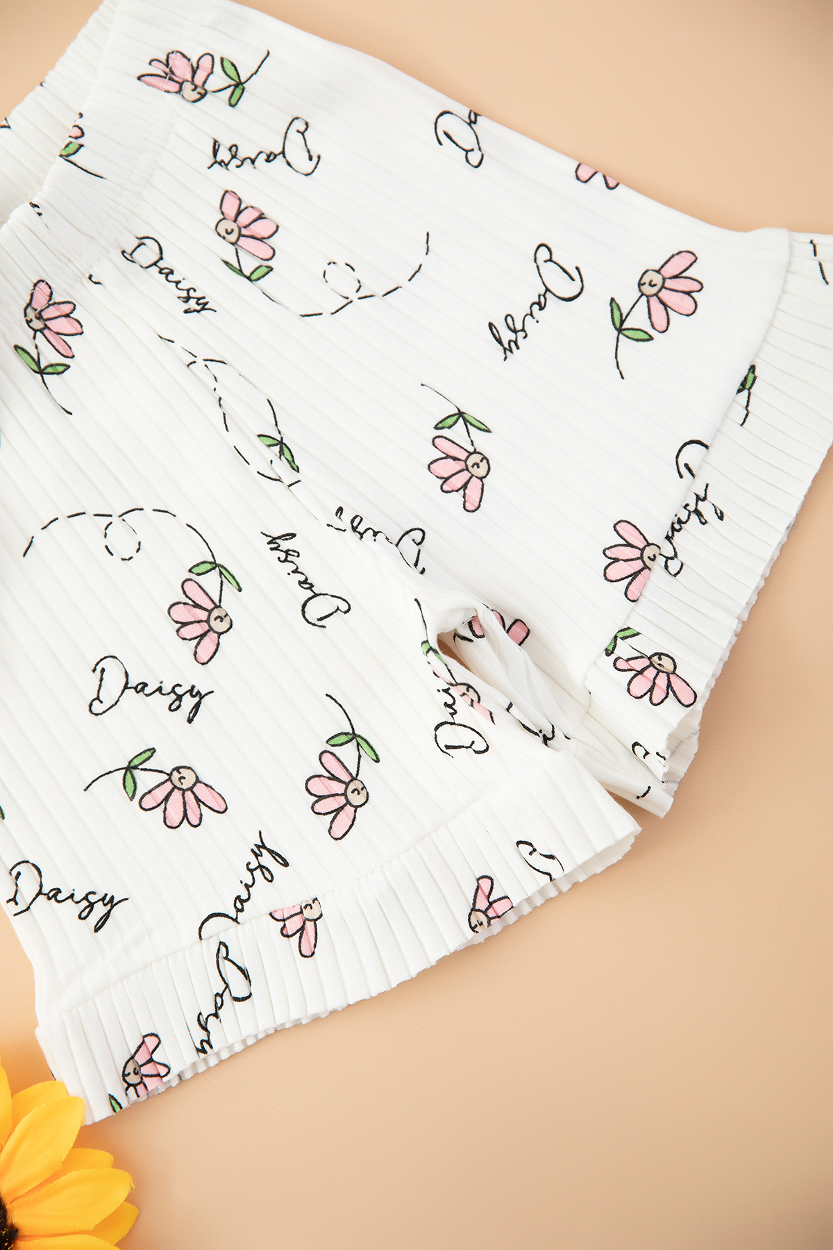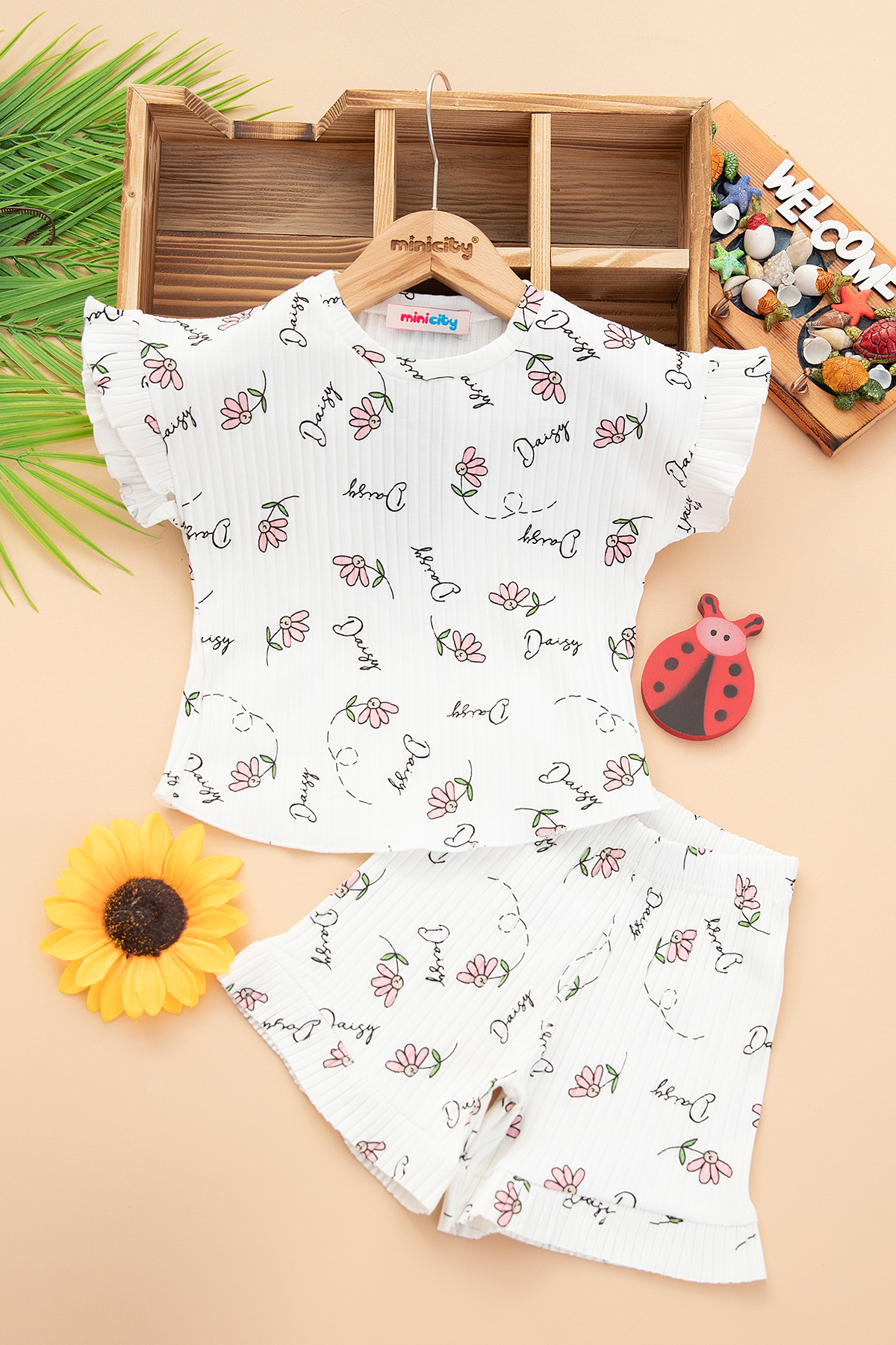 Kız Çocuk Fırfırlı Raporlu Baskılı Şortlu Takım - 25512 (5-8 Yaş)