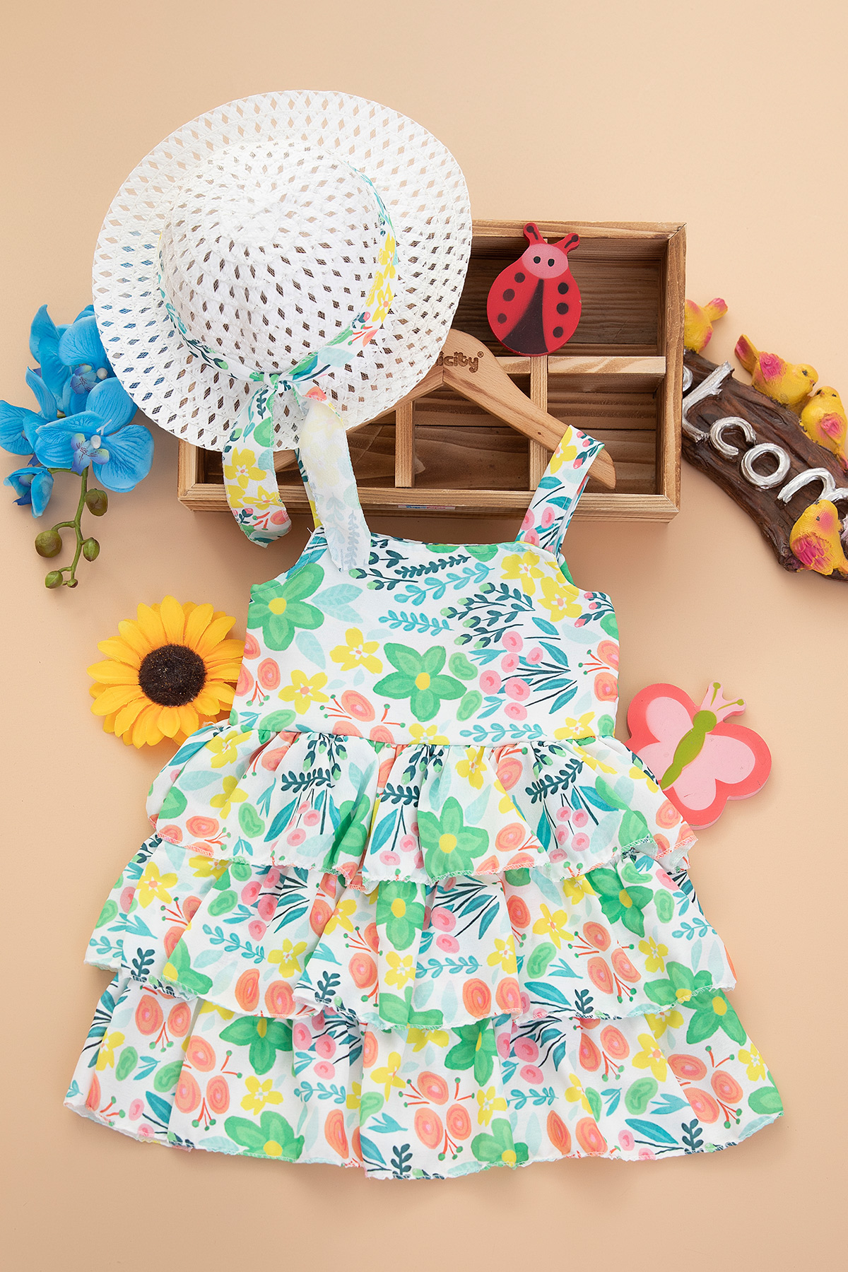 Kız Çocuk Fırfırlı Şapkalı Elbise - B0002 (3-10 Yaş)