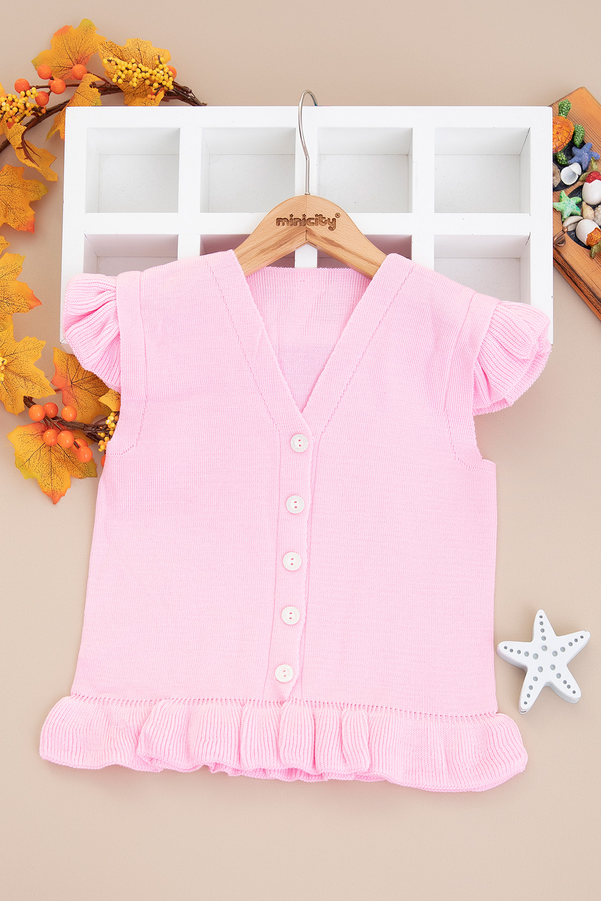 Kız Çocuk Fırfırlı Triko Yelek - 2094 (5-8 Yaş)