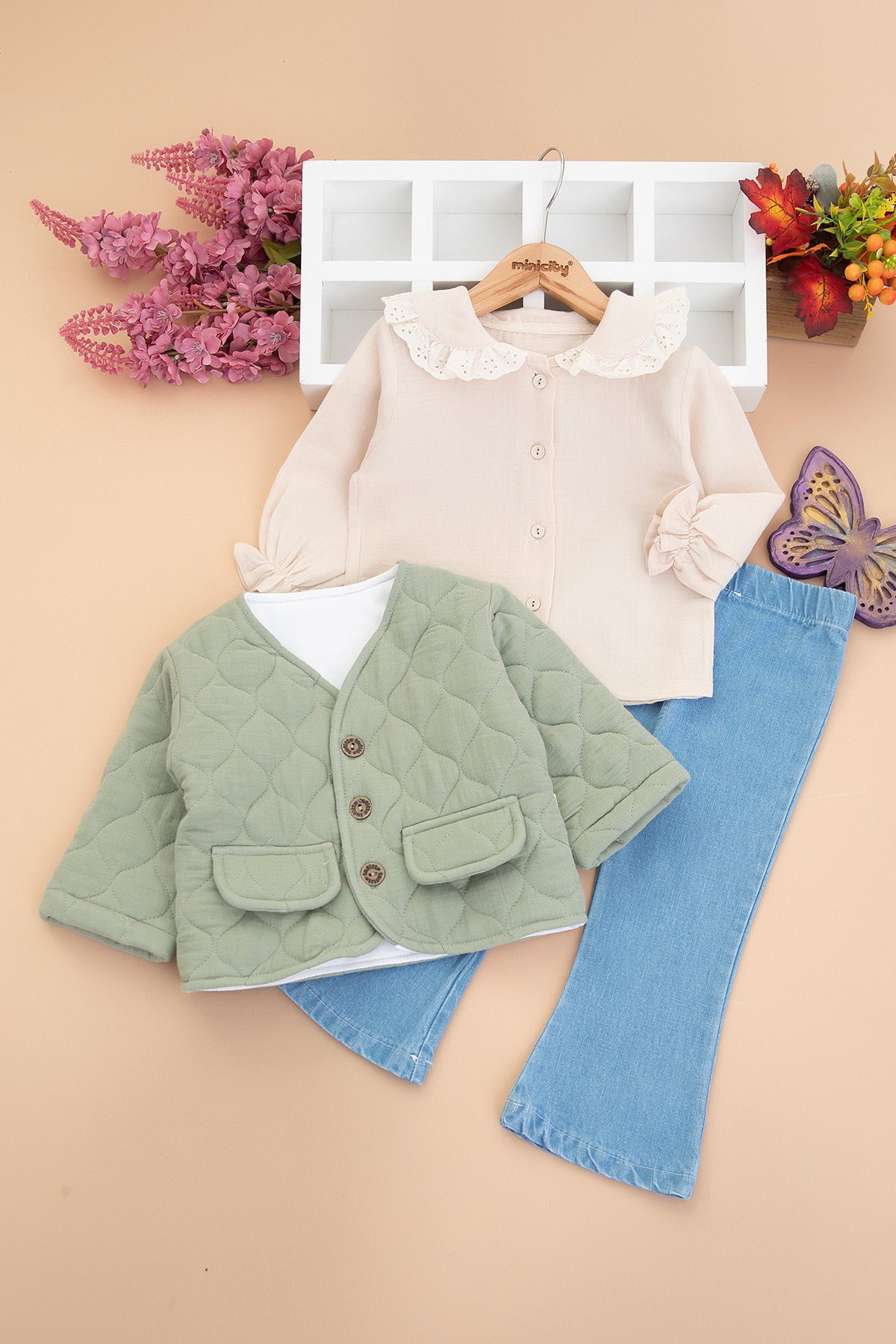 Kız Çocuk Fırfırlı Yaka Montlu Takım - 1759 (1-3 Yaş)
