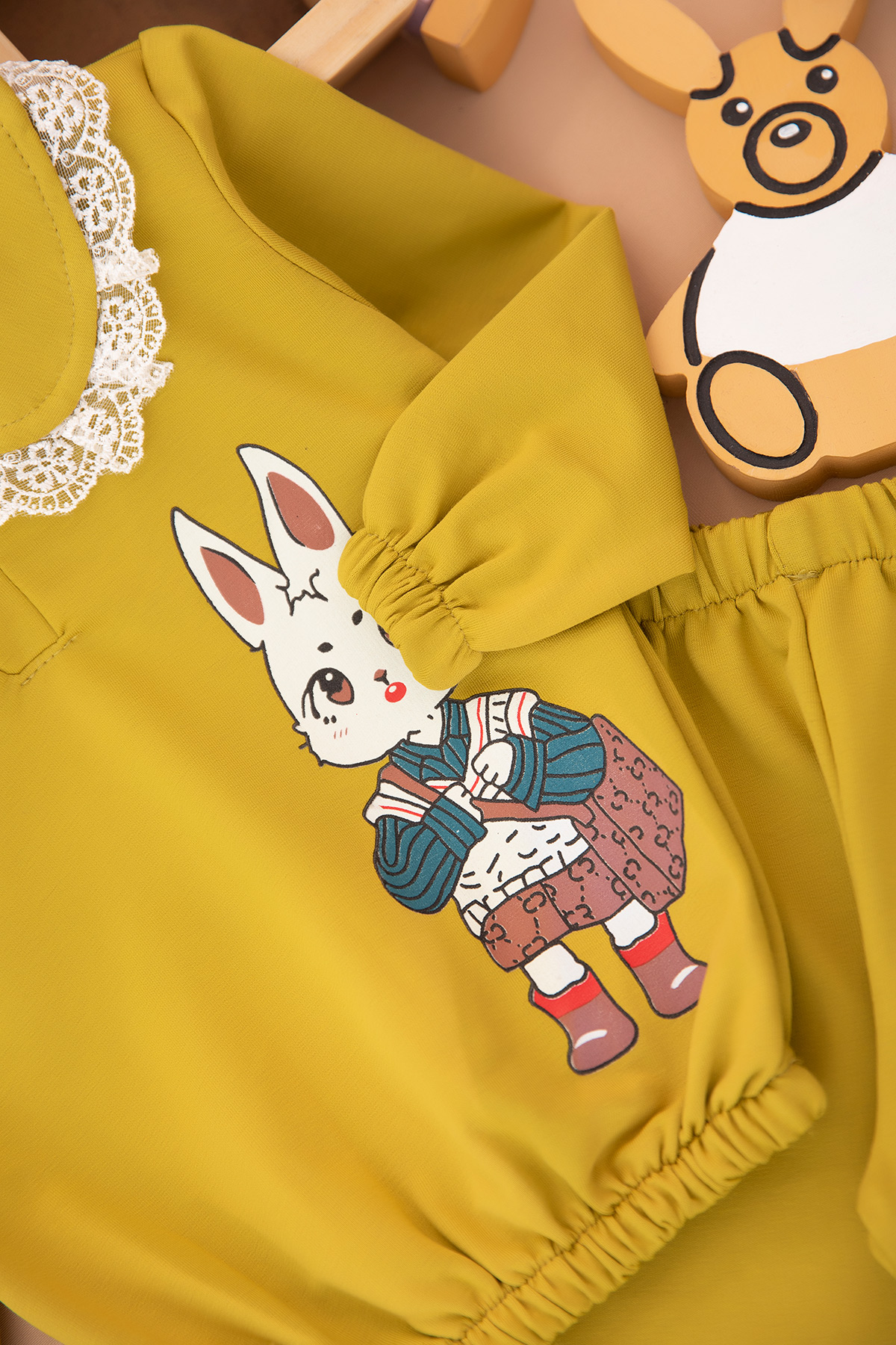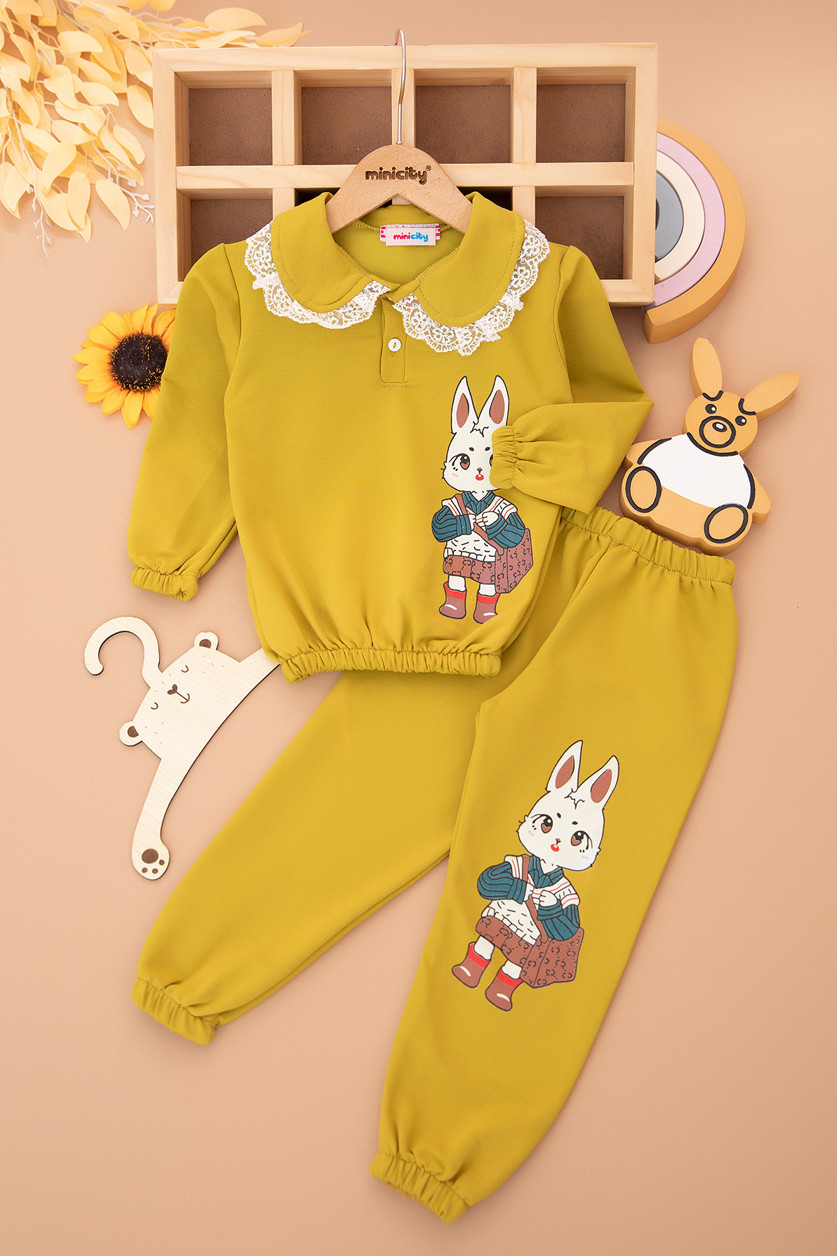 Kız Çocuk Fisto Yakalı Tavşan Baskılı Takım (3-6 Yaş)